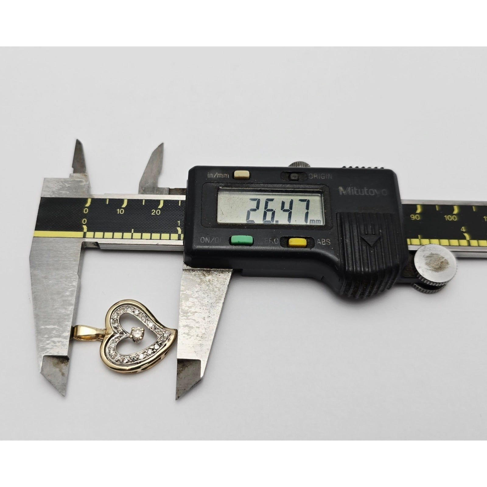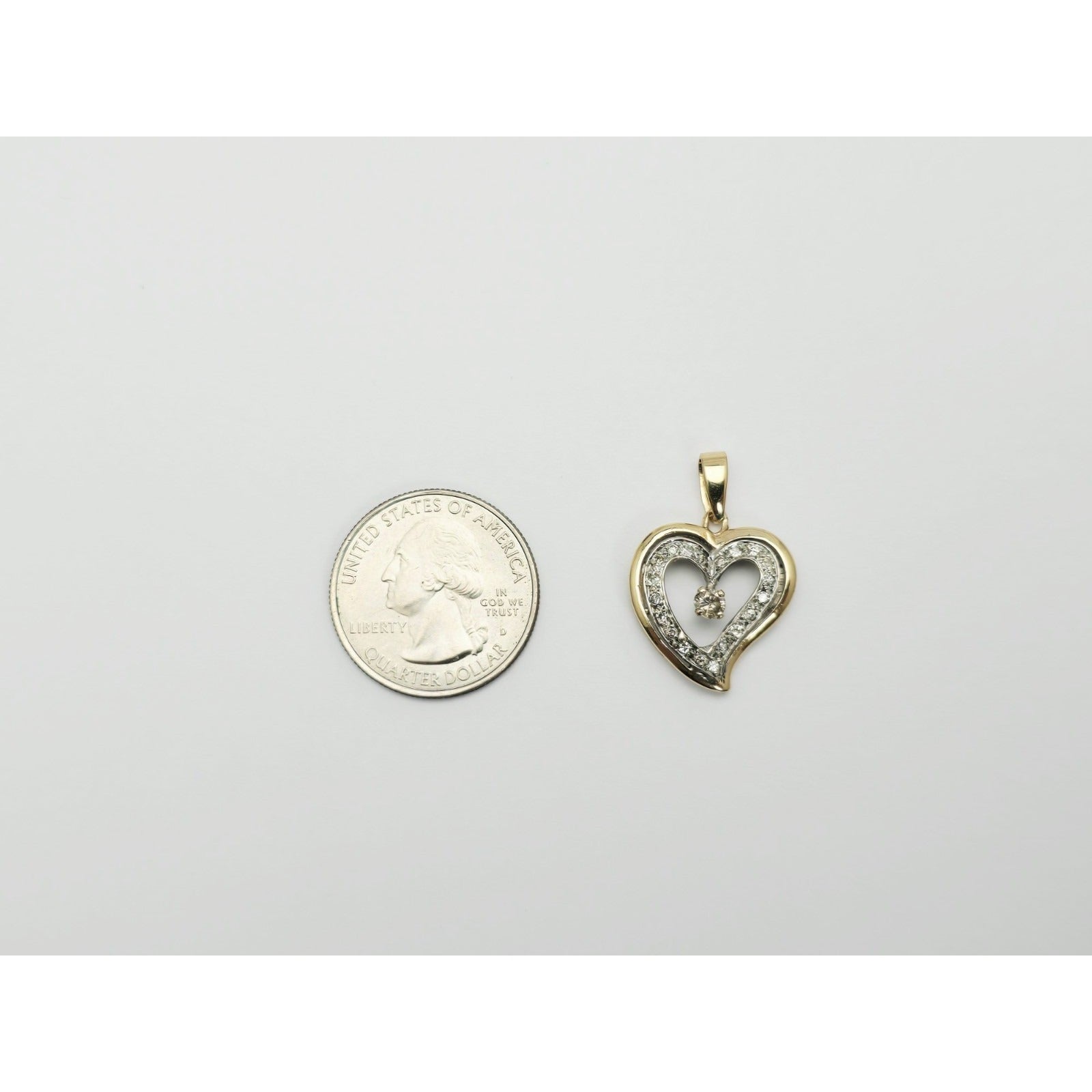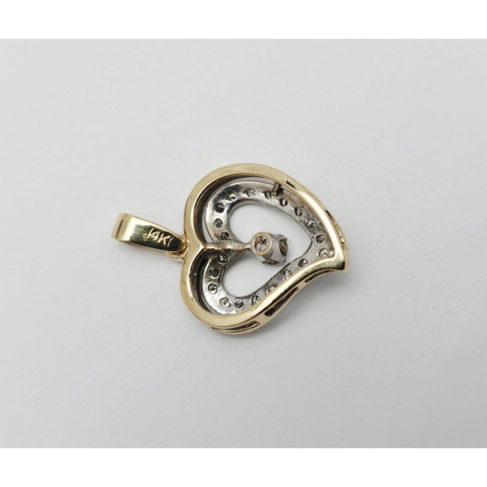 14K Two Tone Gold Double Open Heart Diamond Charm Pendant