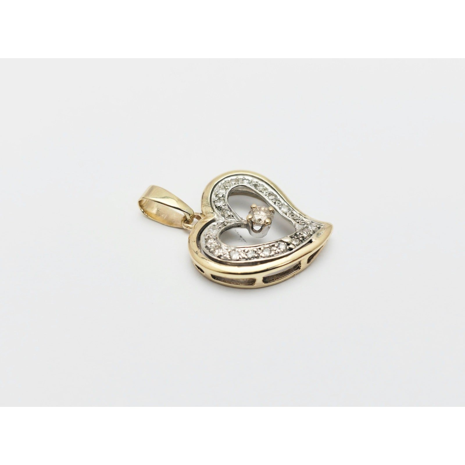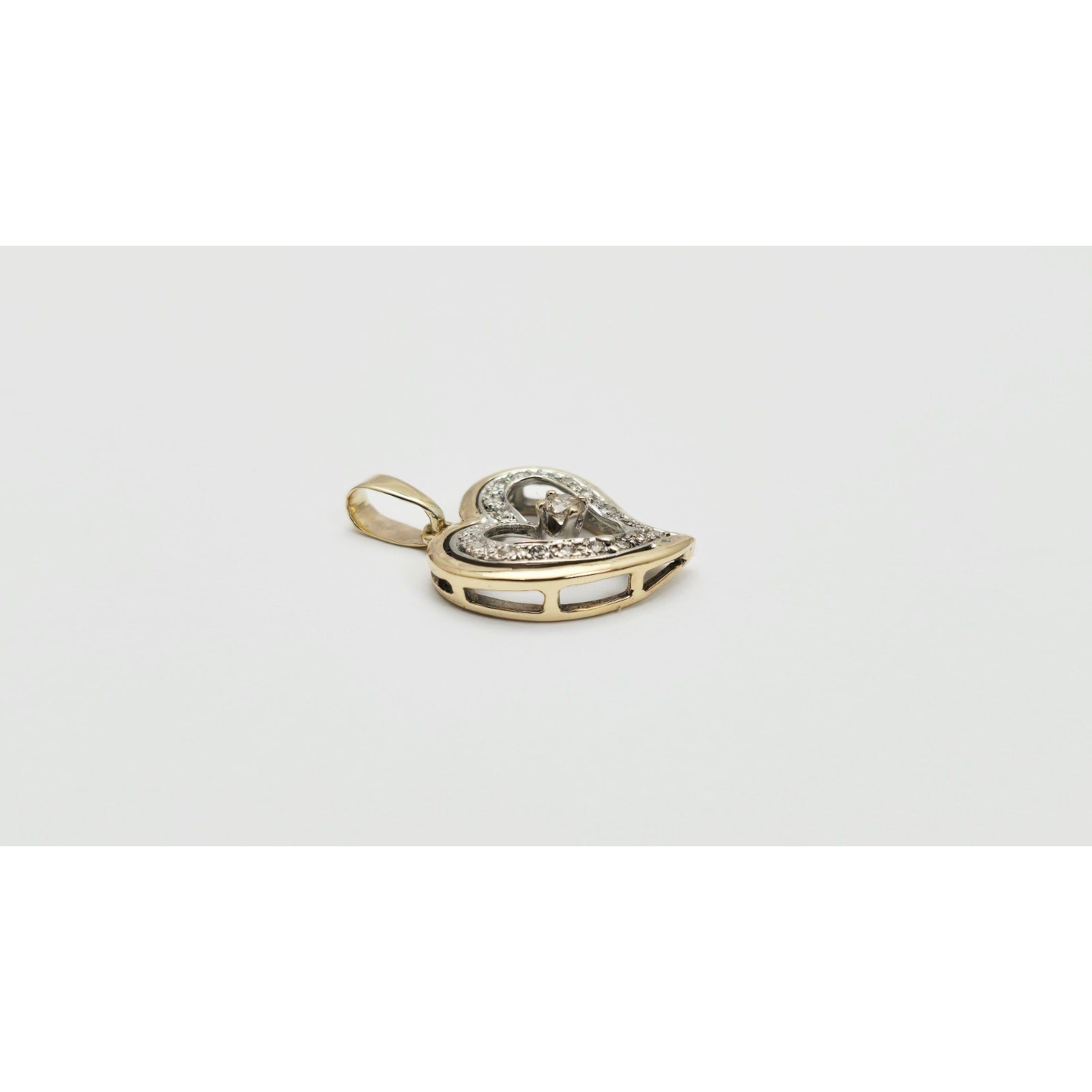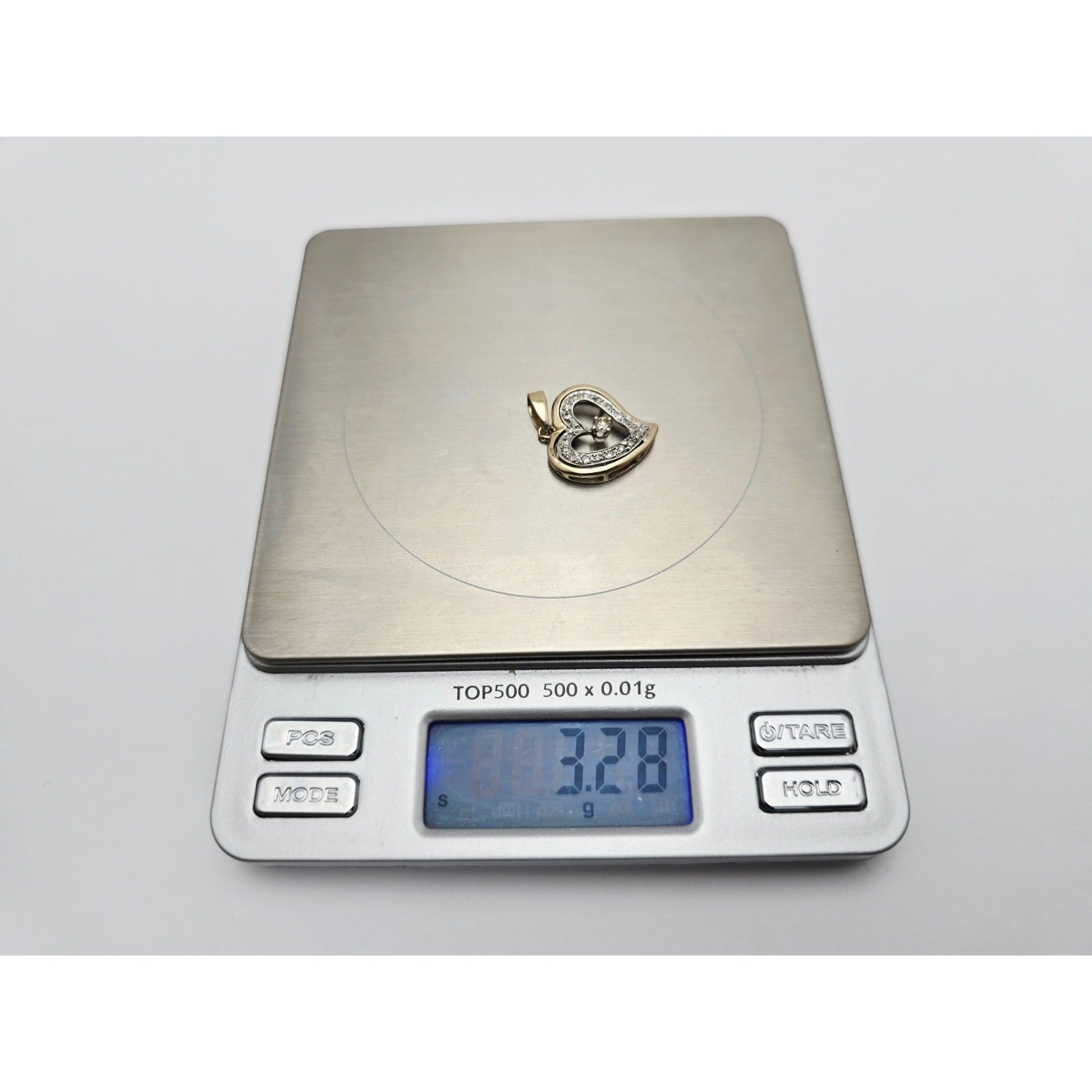 14K Two Tone Gold Double Open Heart Diamond Charm Pendant
