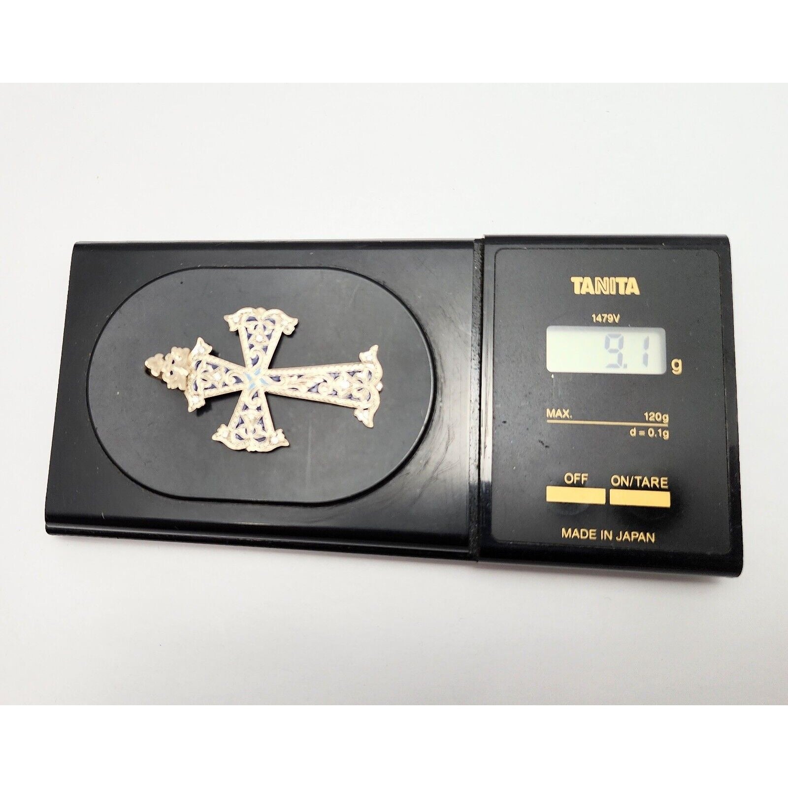 14K Two Tone Gold Hand Made Enamel Cross Diamond Charm Pendant