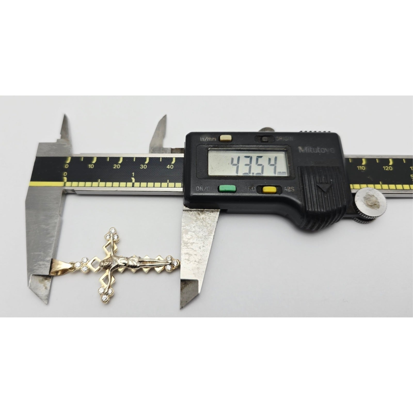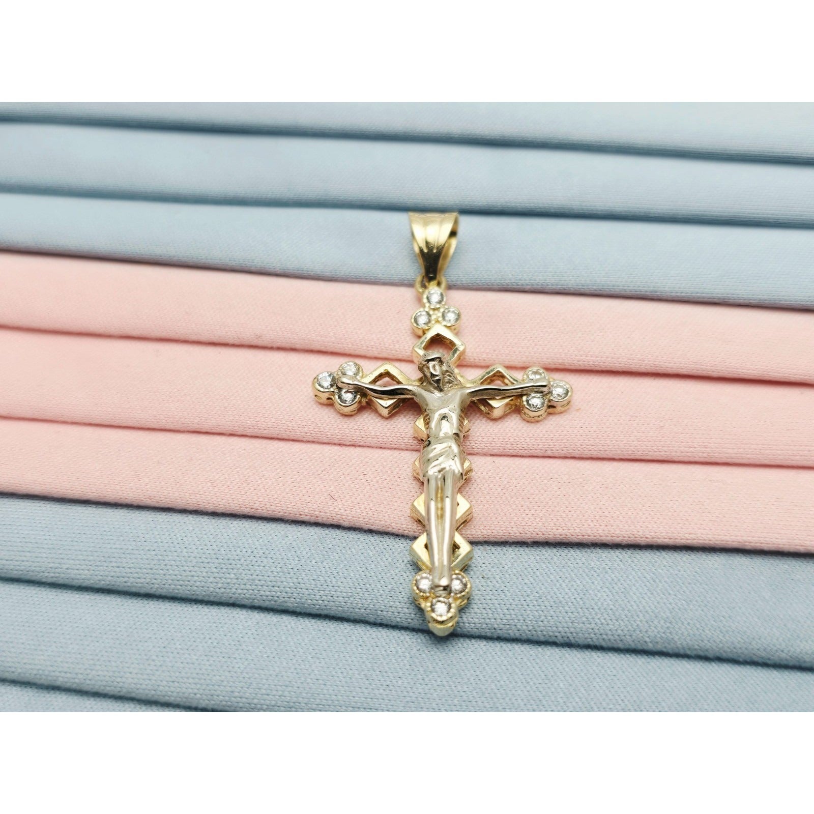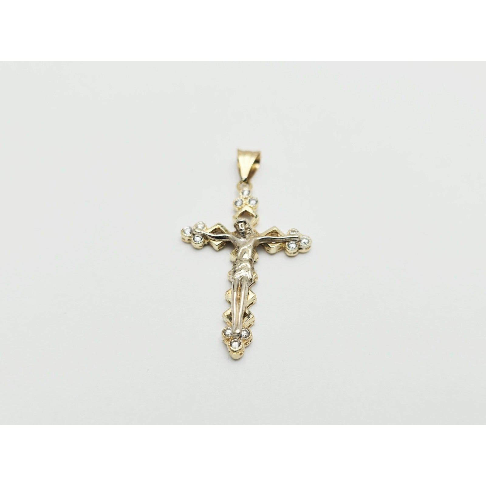 14K Two Tone Gold Jesus on Cross CZ Charm Pendant