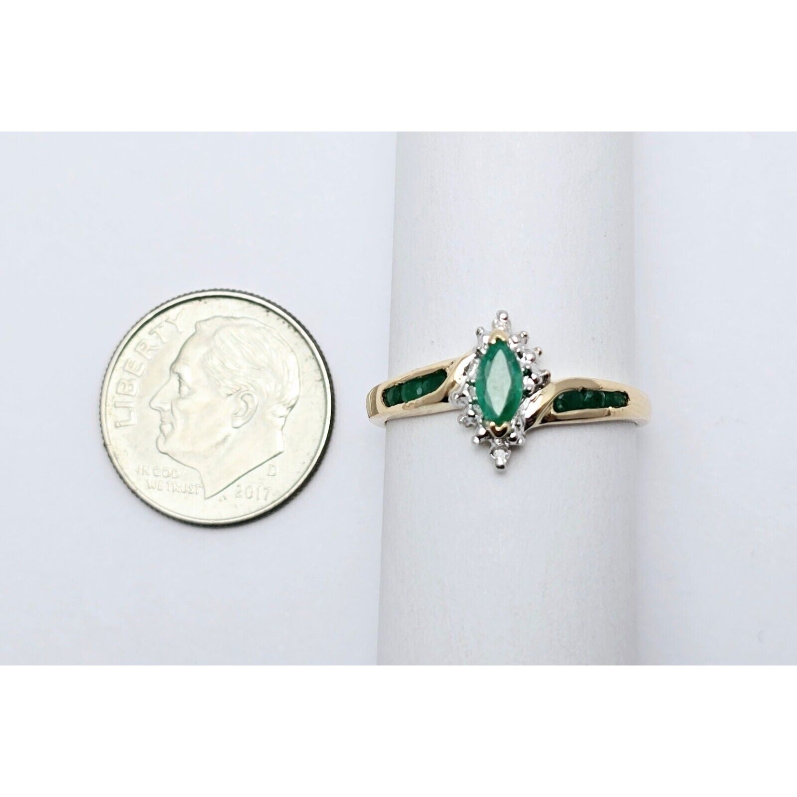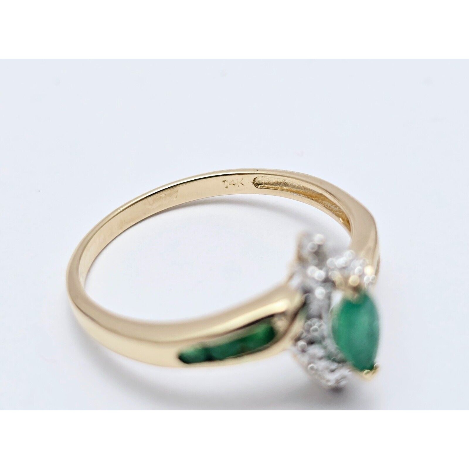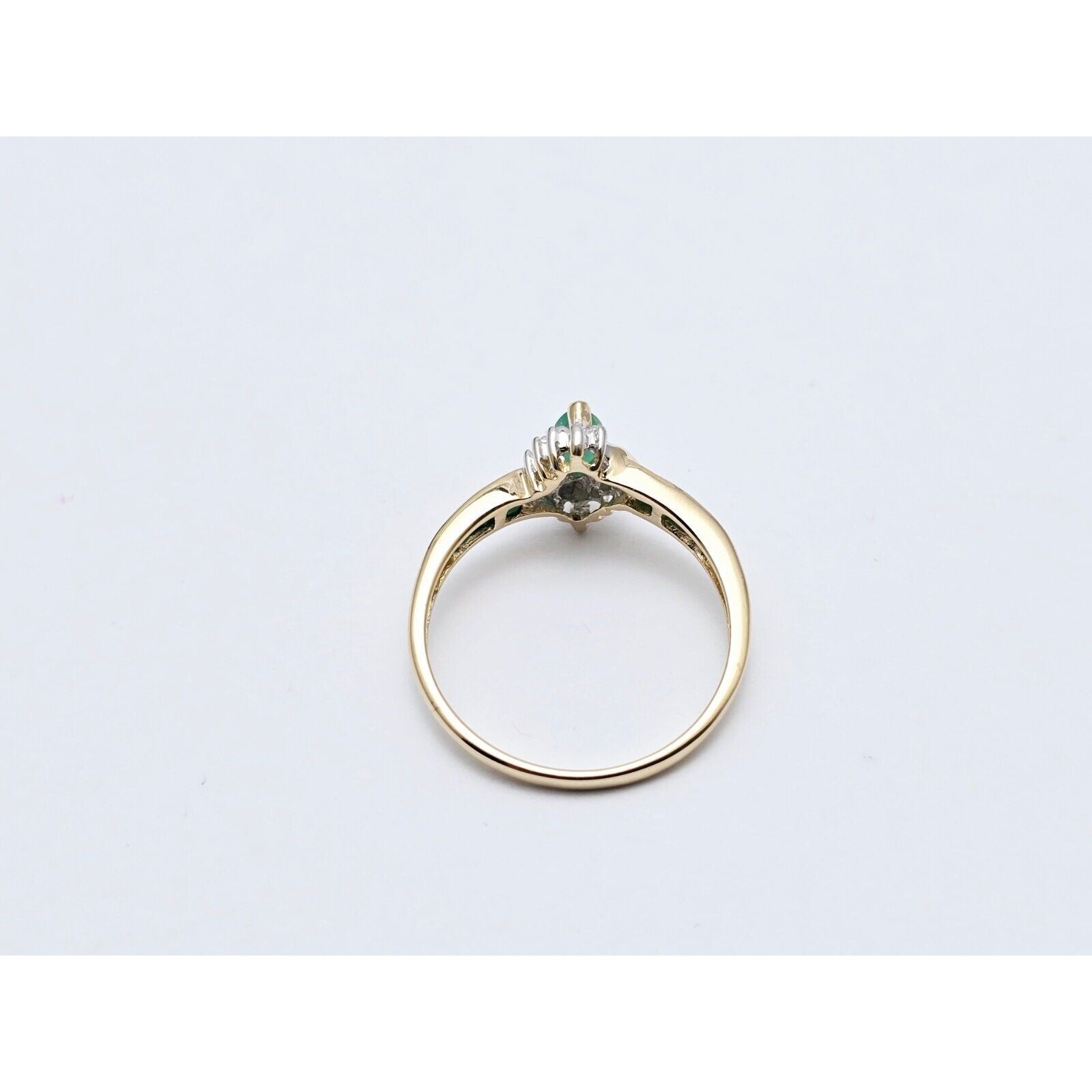 14K Two Tone Gold Ladies Marquise Emerald & Diamond Ring