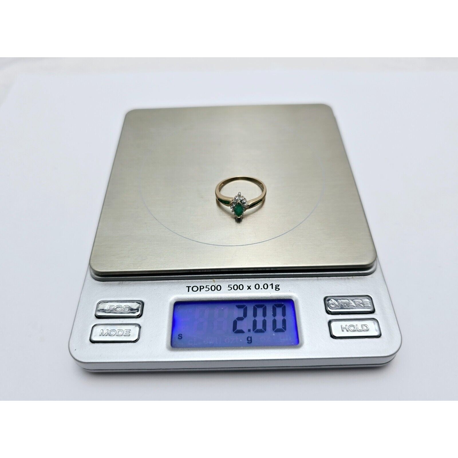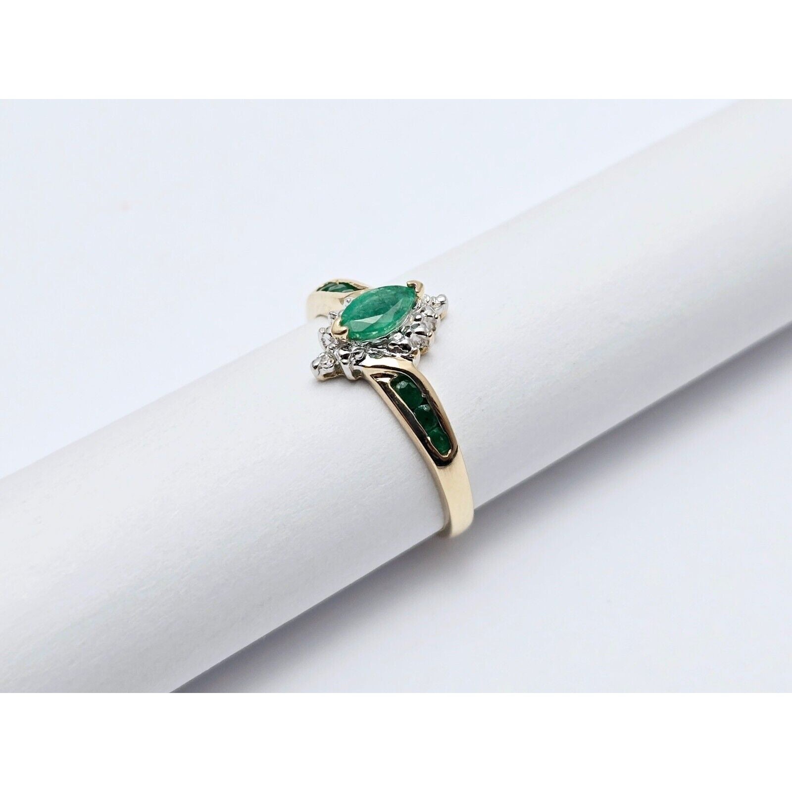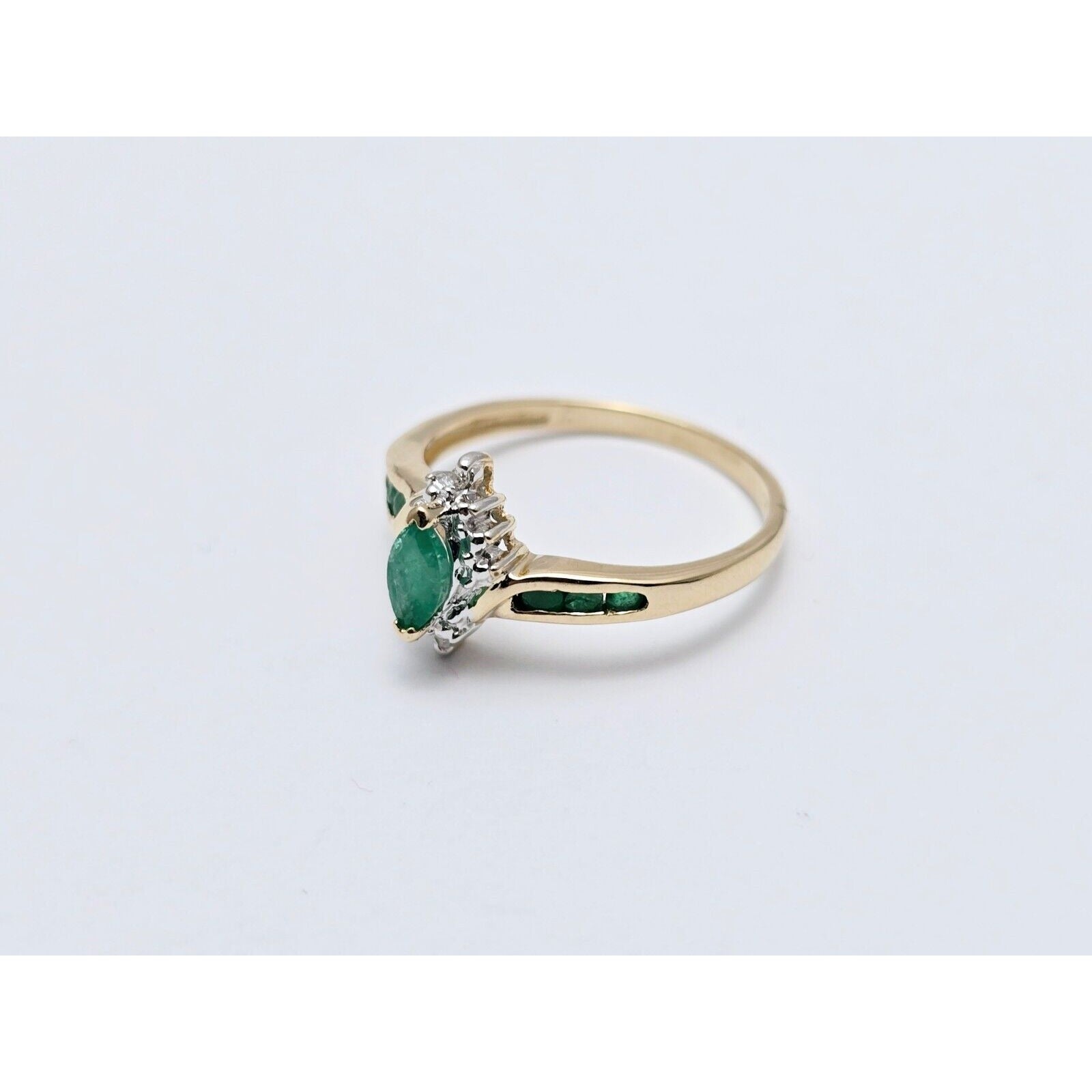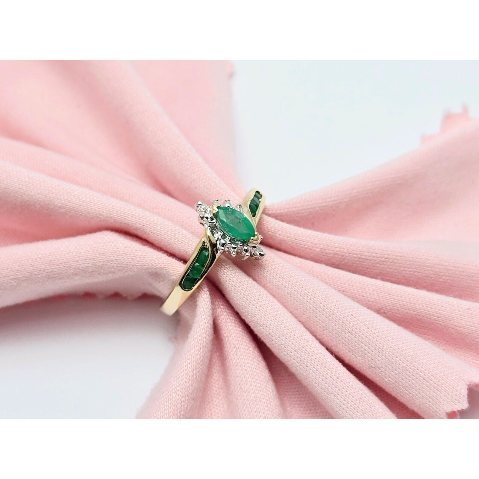 14K Two Tone Gold Ladies Marquise Emerald & Diamond Ring