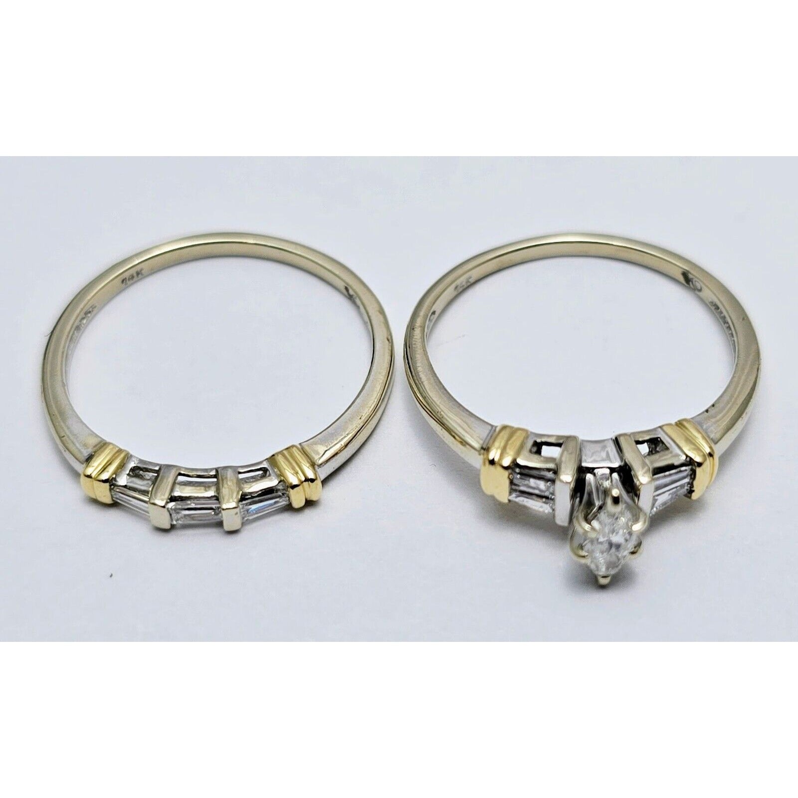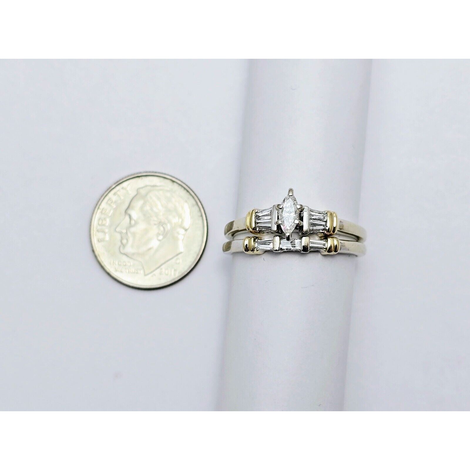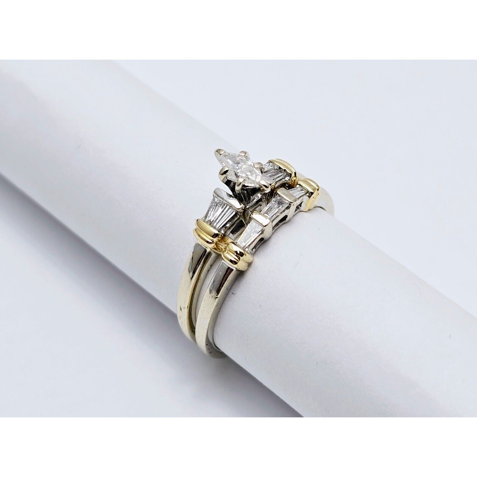 14K Two Tone Gold Ladies Wedding Solitaire Marquise Diamond Ring Set