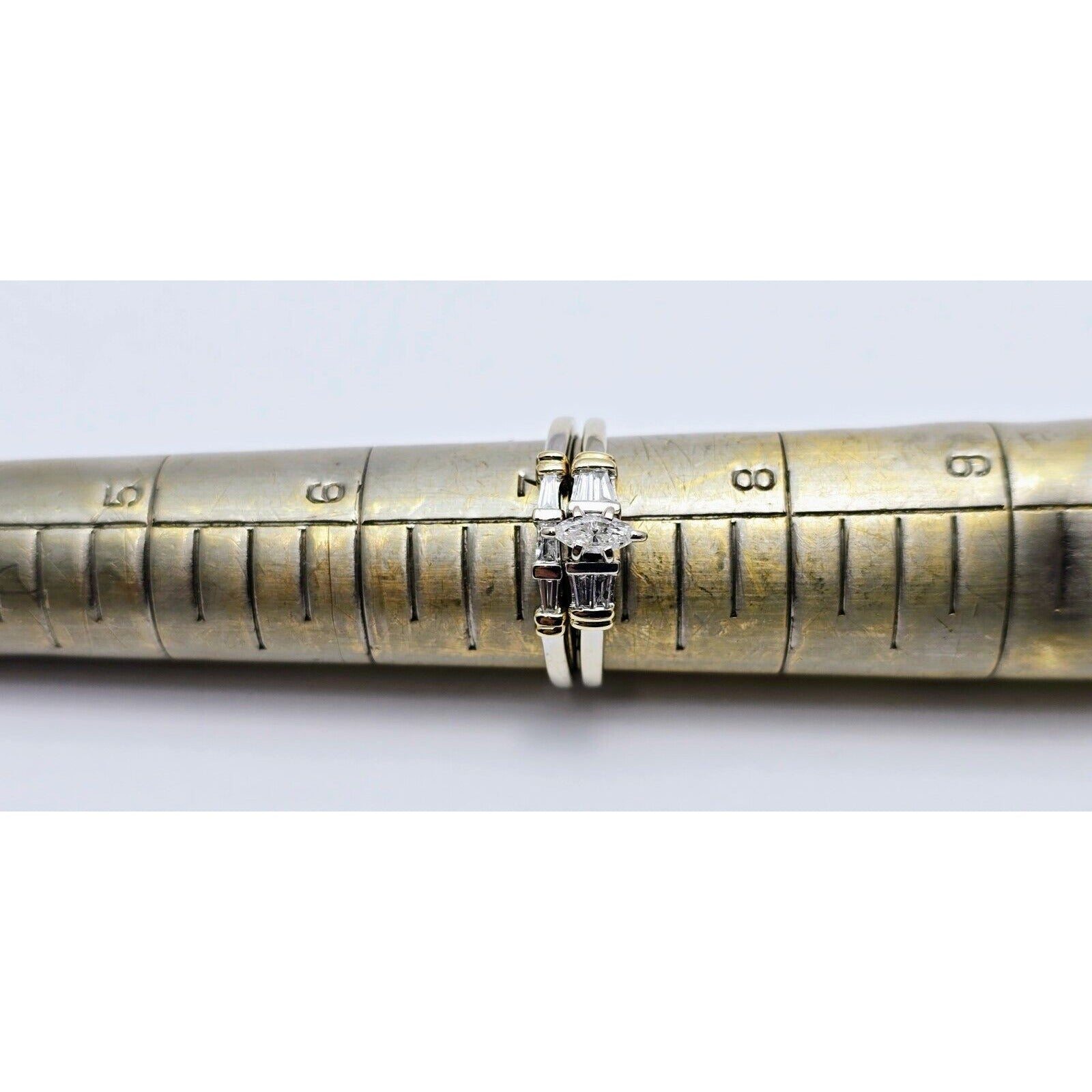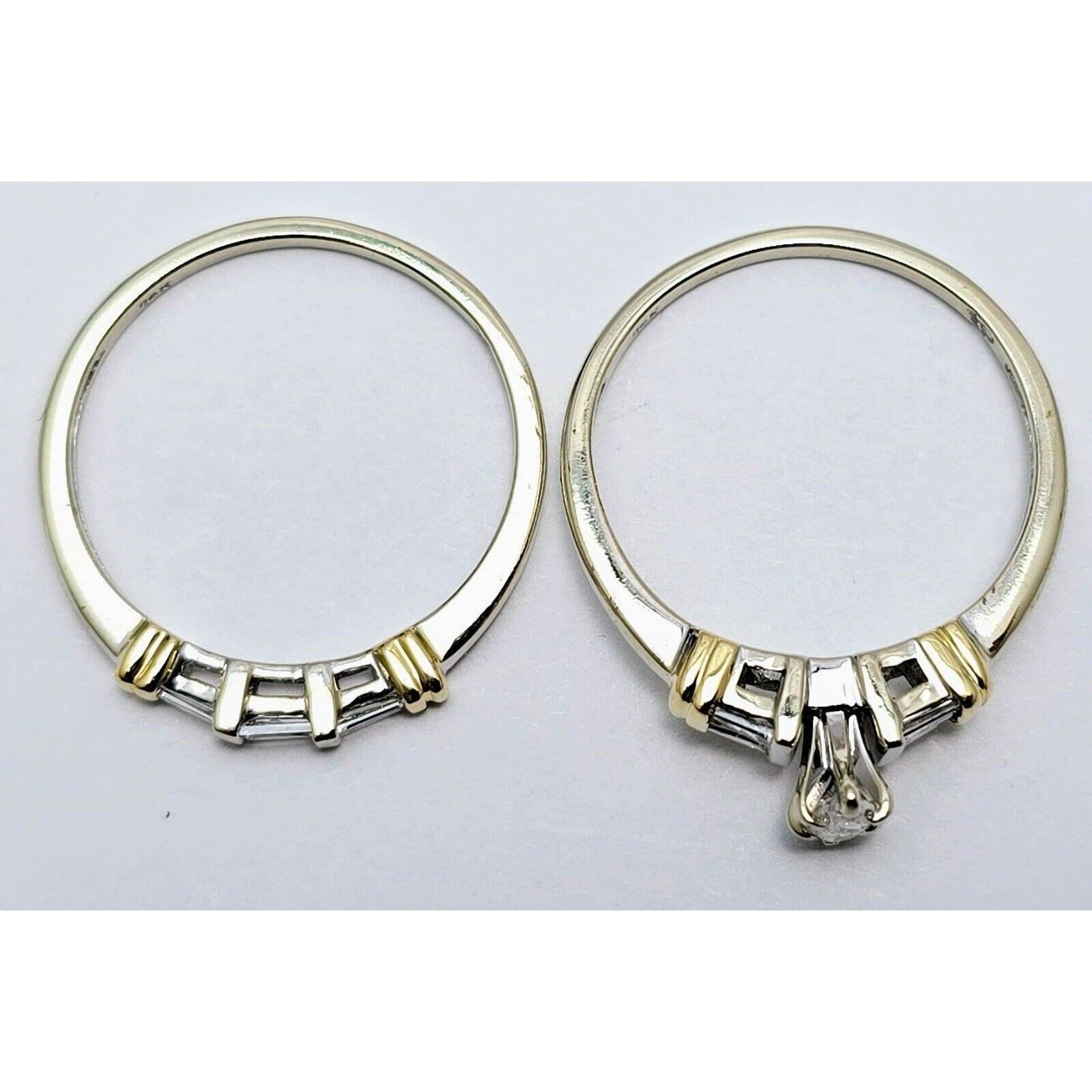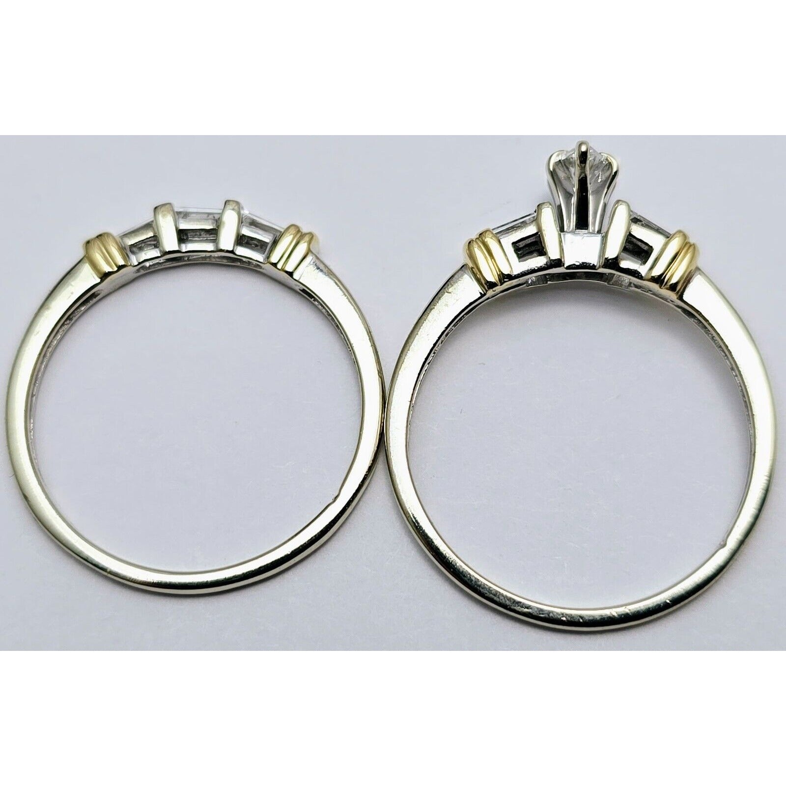 14K Two Tone Gold Ladies Wedding Solitaire Marquise Diamond Ring Set