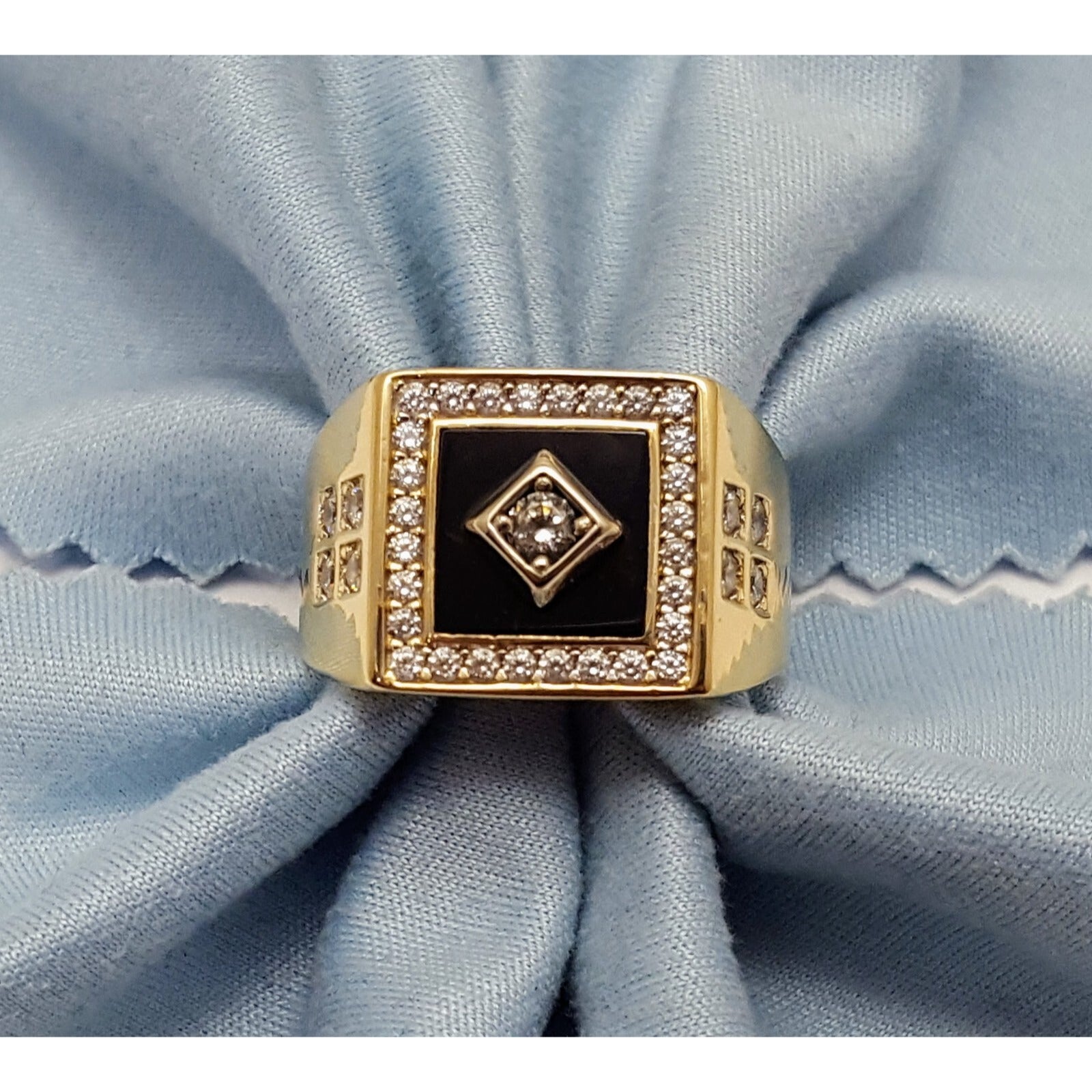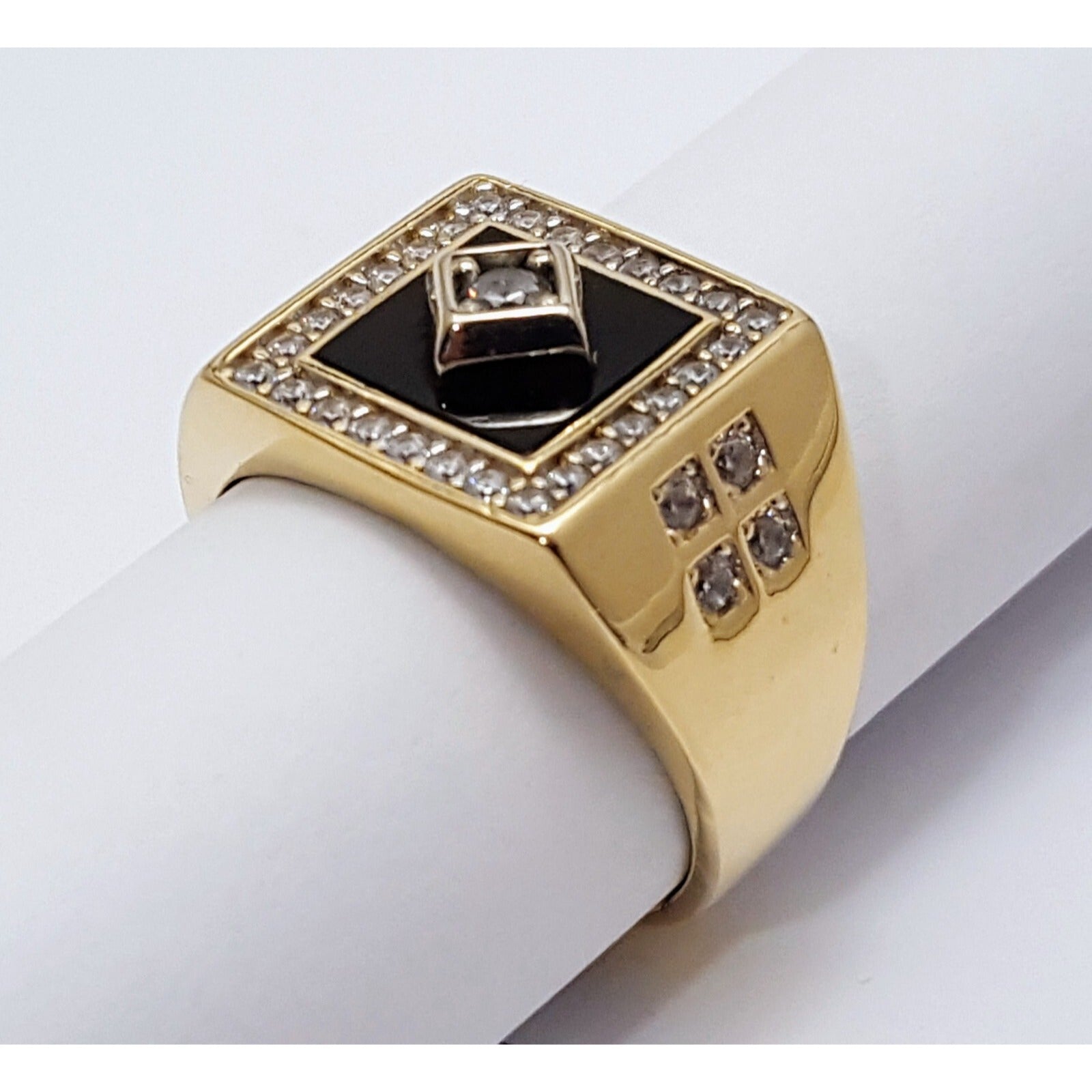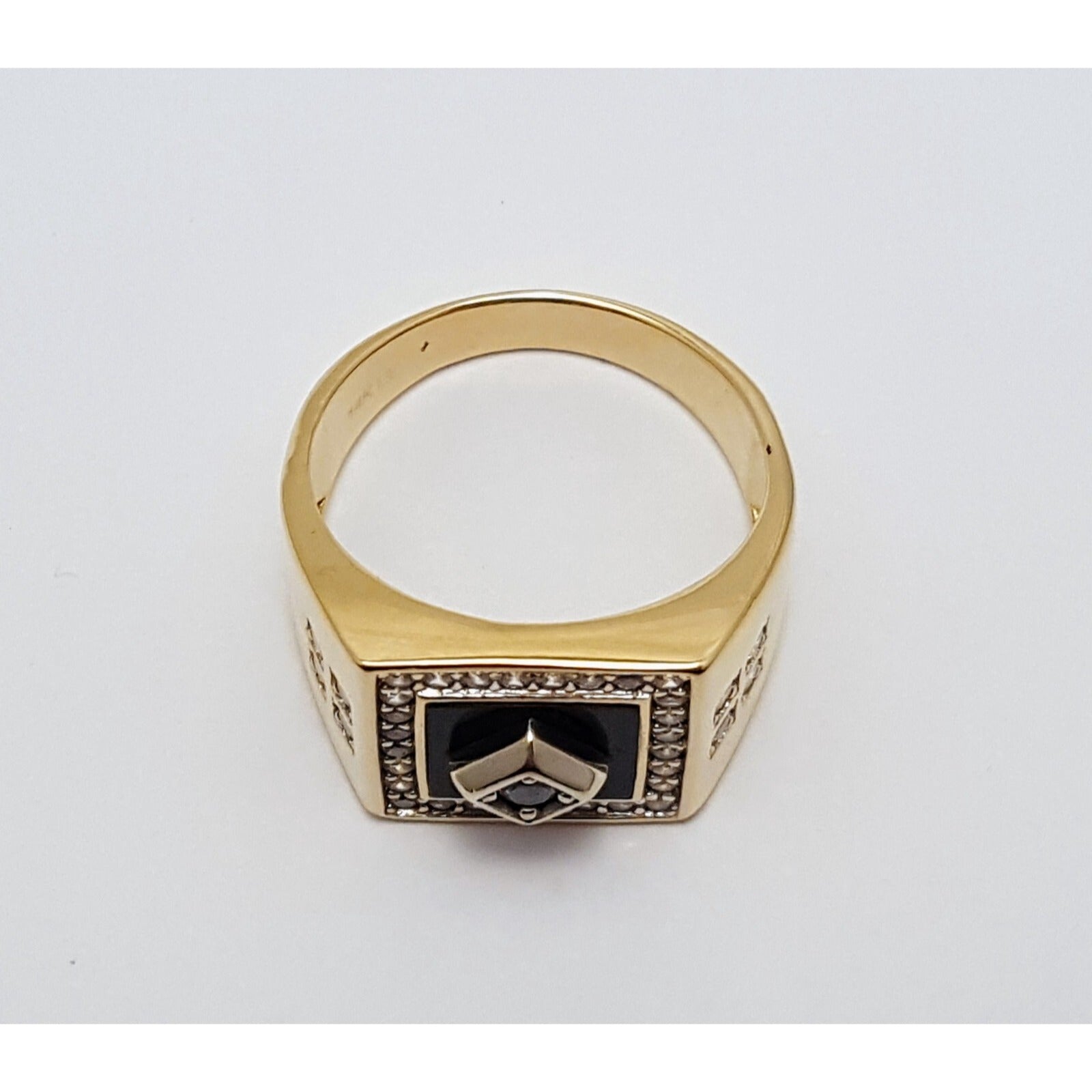 14K Two Tone Gold Onyx & CZ Men's Ring
