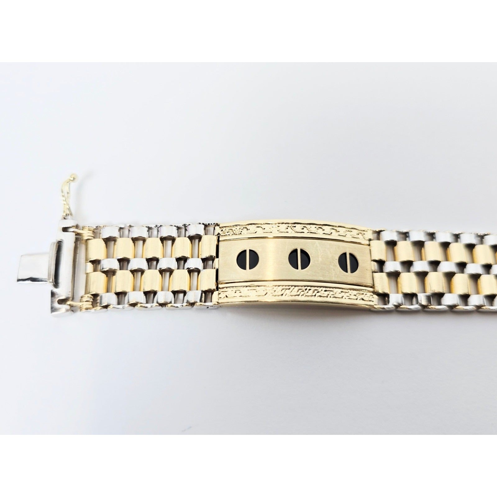 14K Two Tone Gold Rolex Style Enamel Link Bracelet