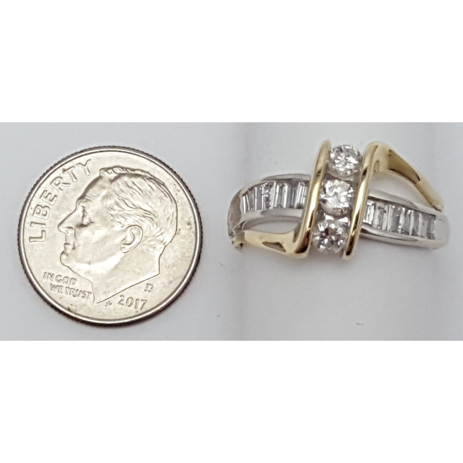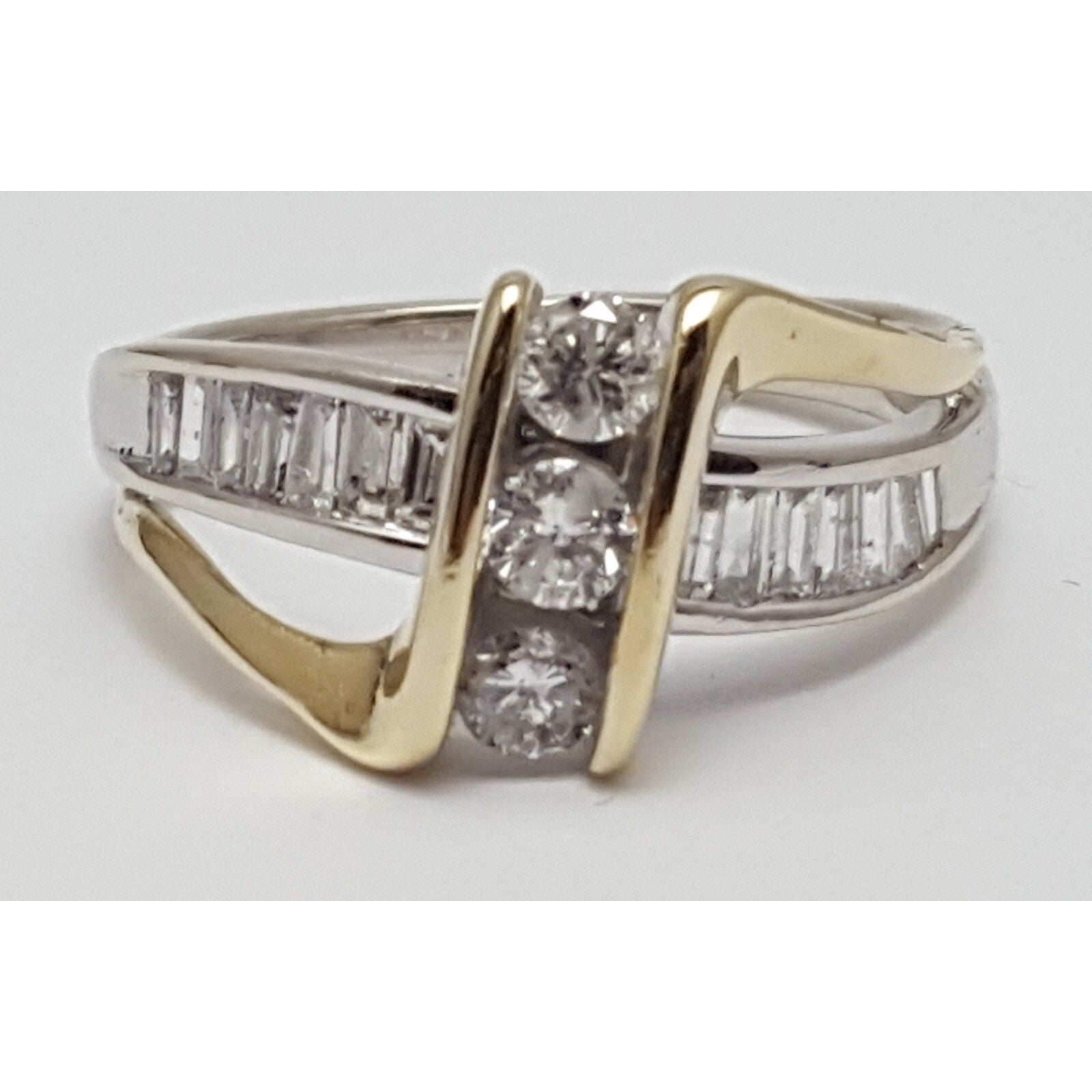 14K Two Tone Gold Round & Baguette Diamond Ring