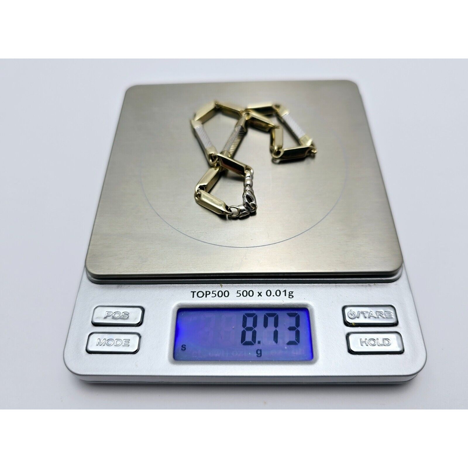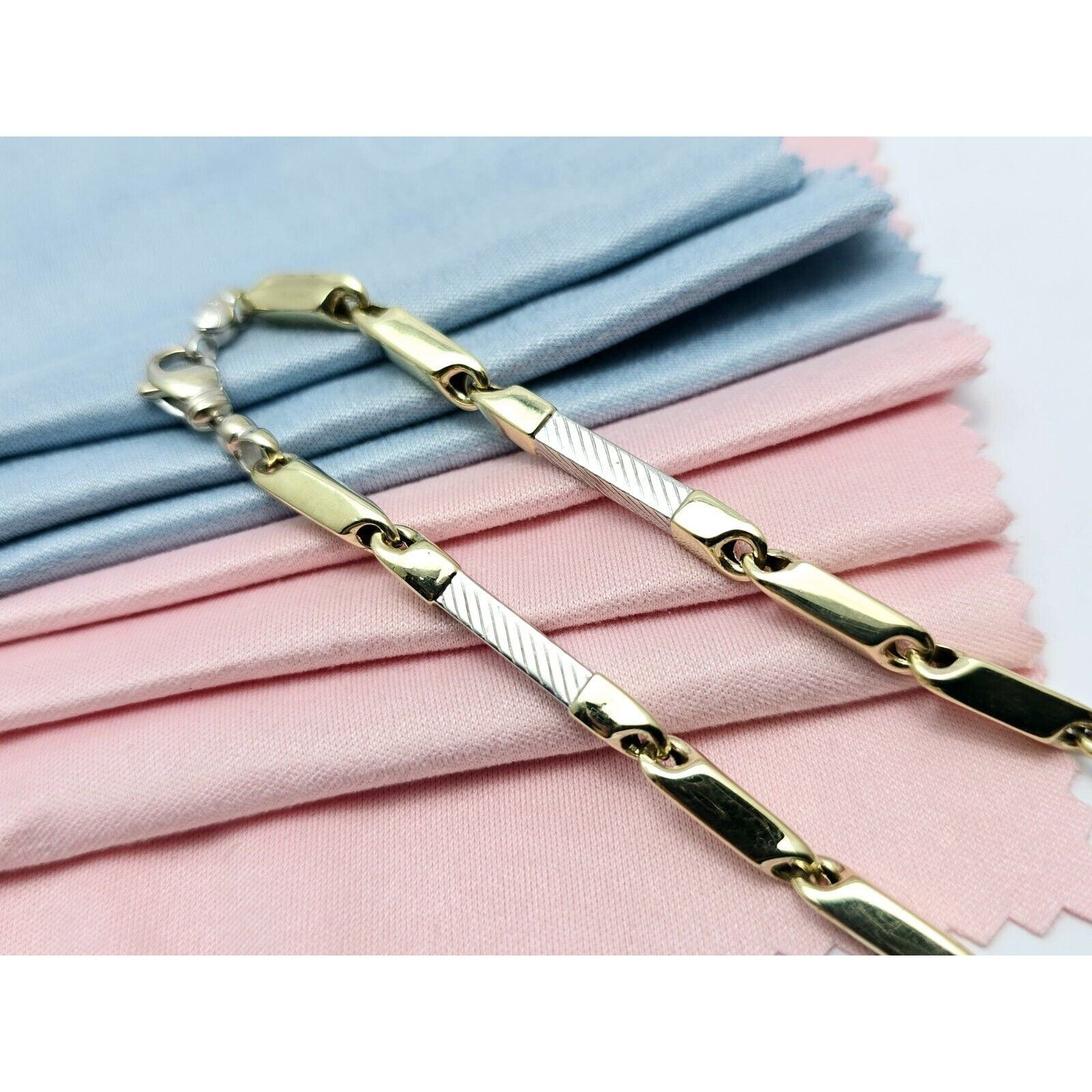 14K Two Tone Gold Square Link Bracelet