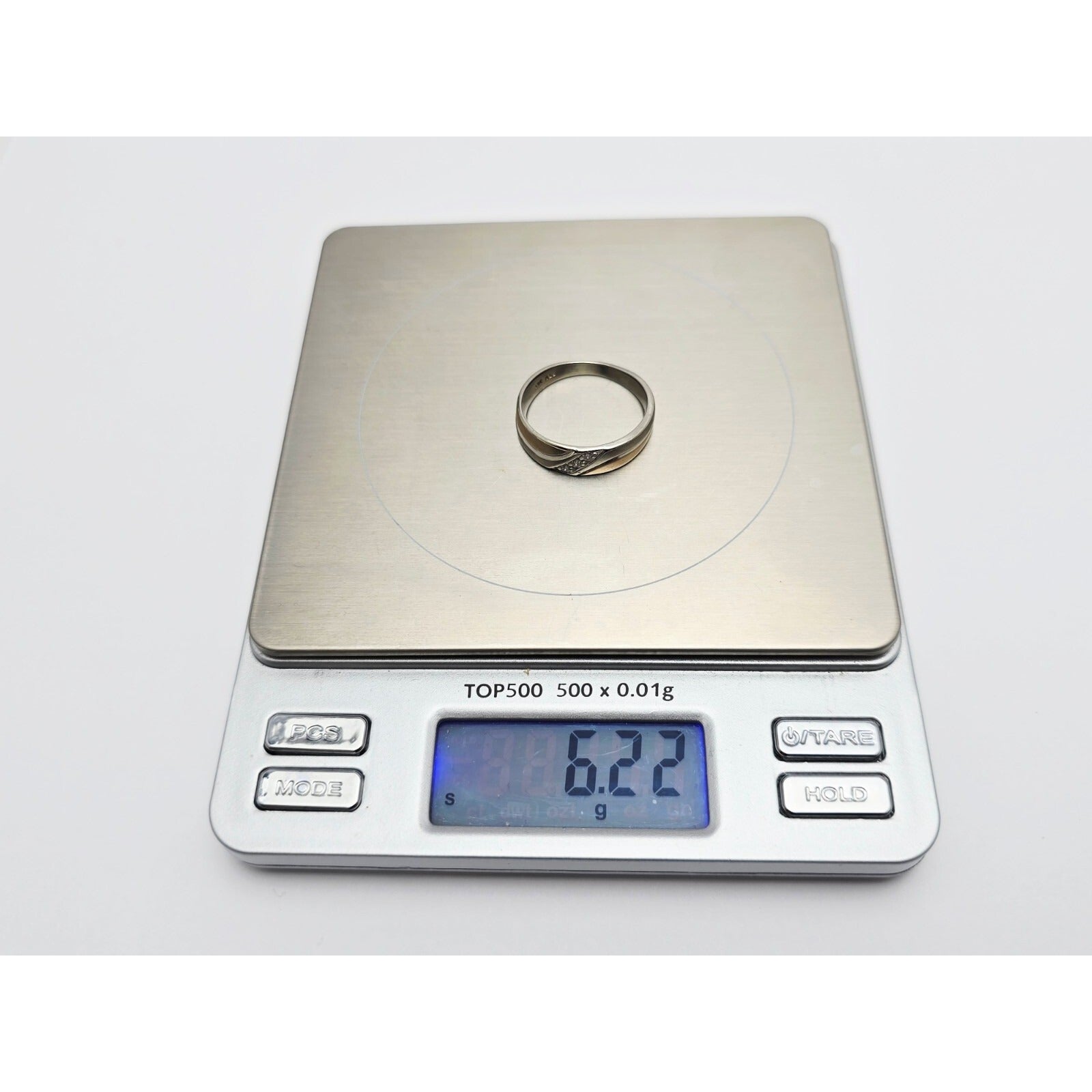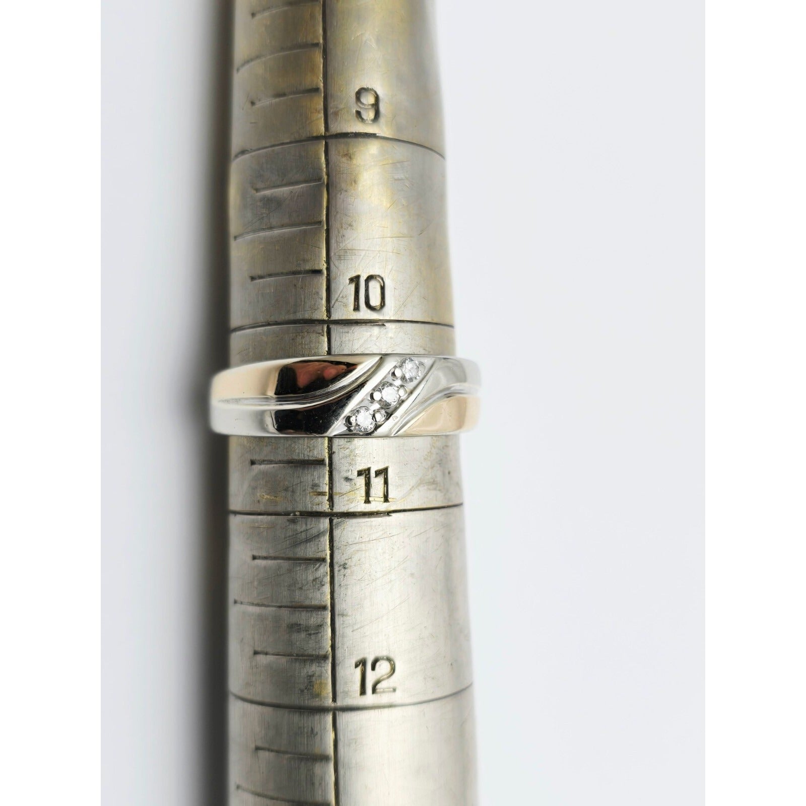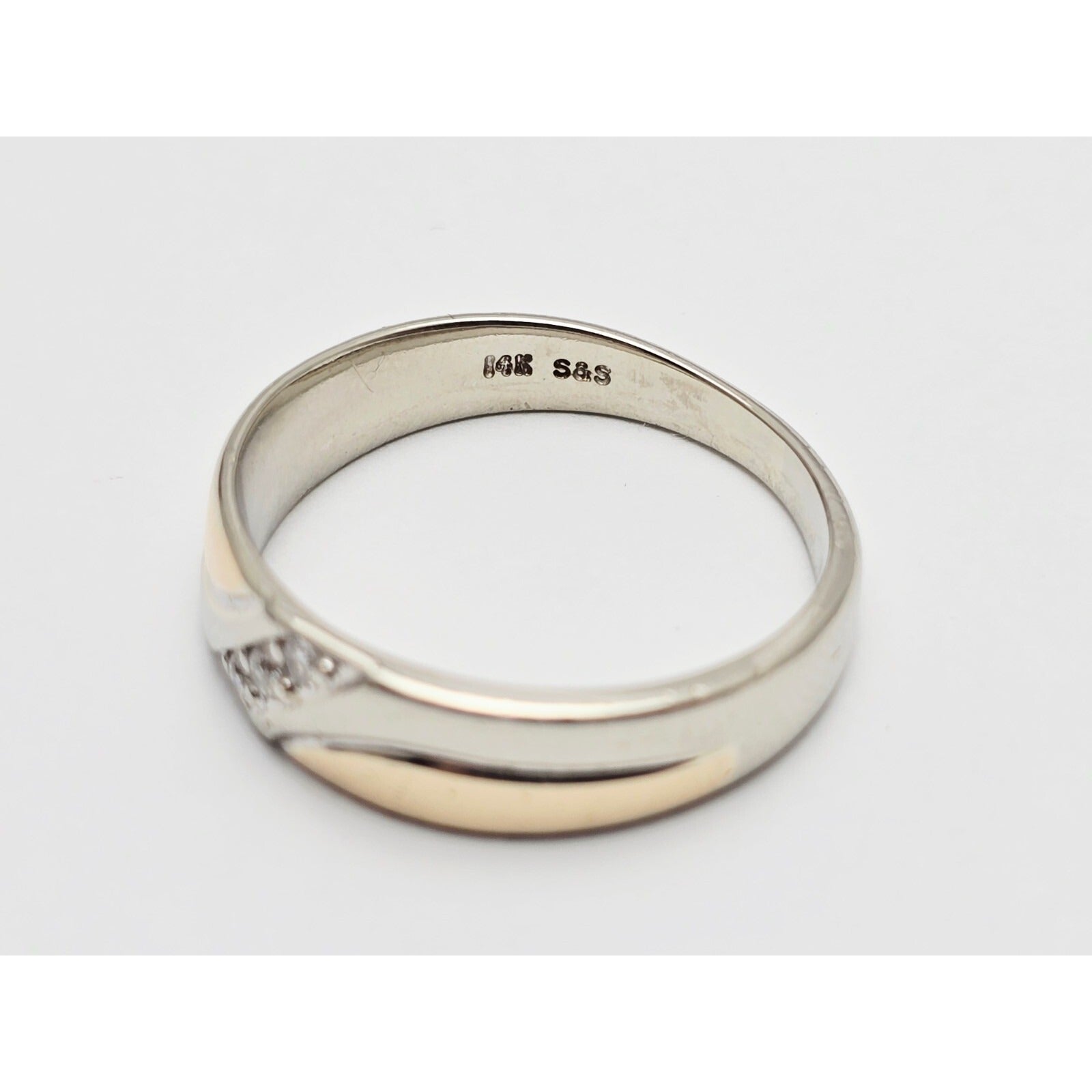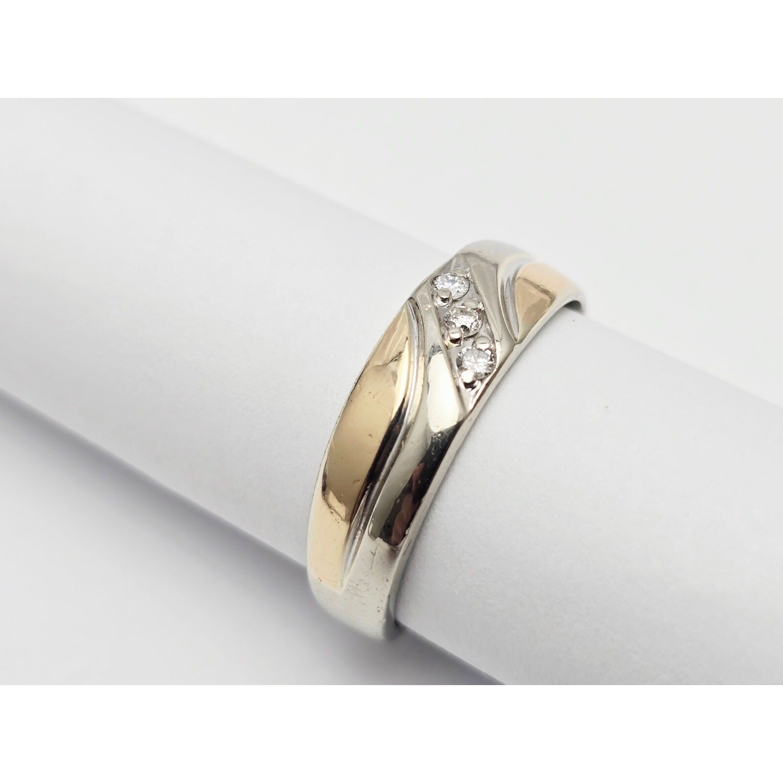 14K Two Tone Gold Wavy 3 Stone Diamond Wedding Band Ring
