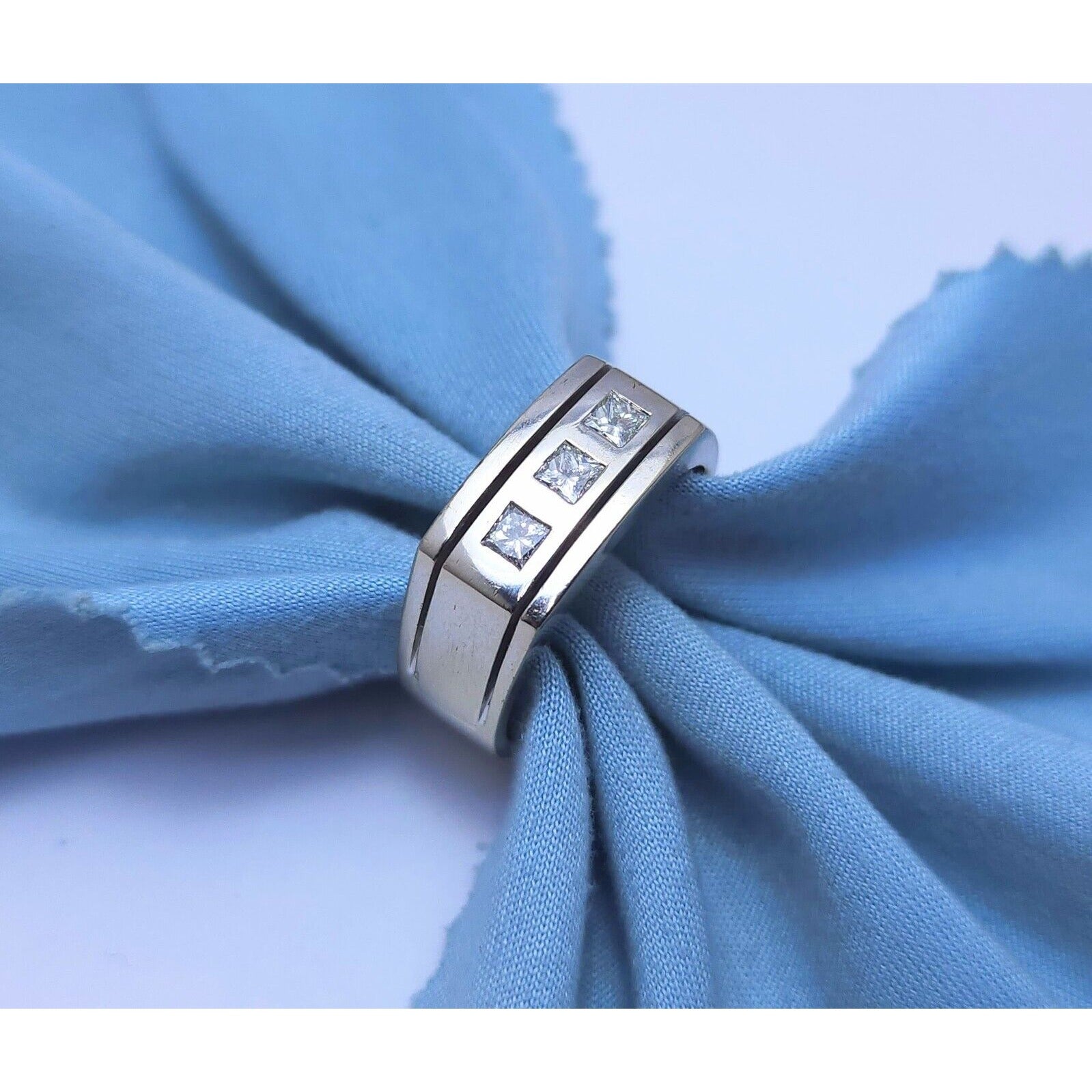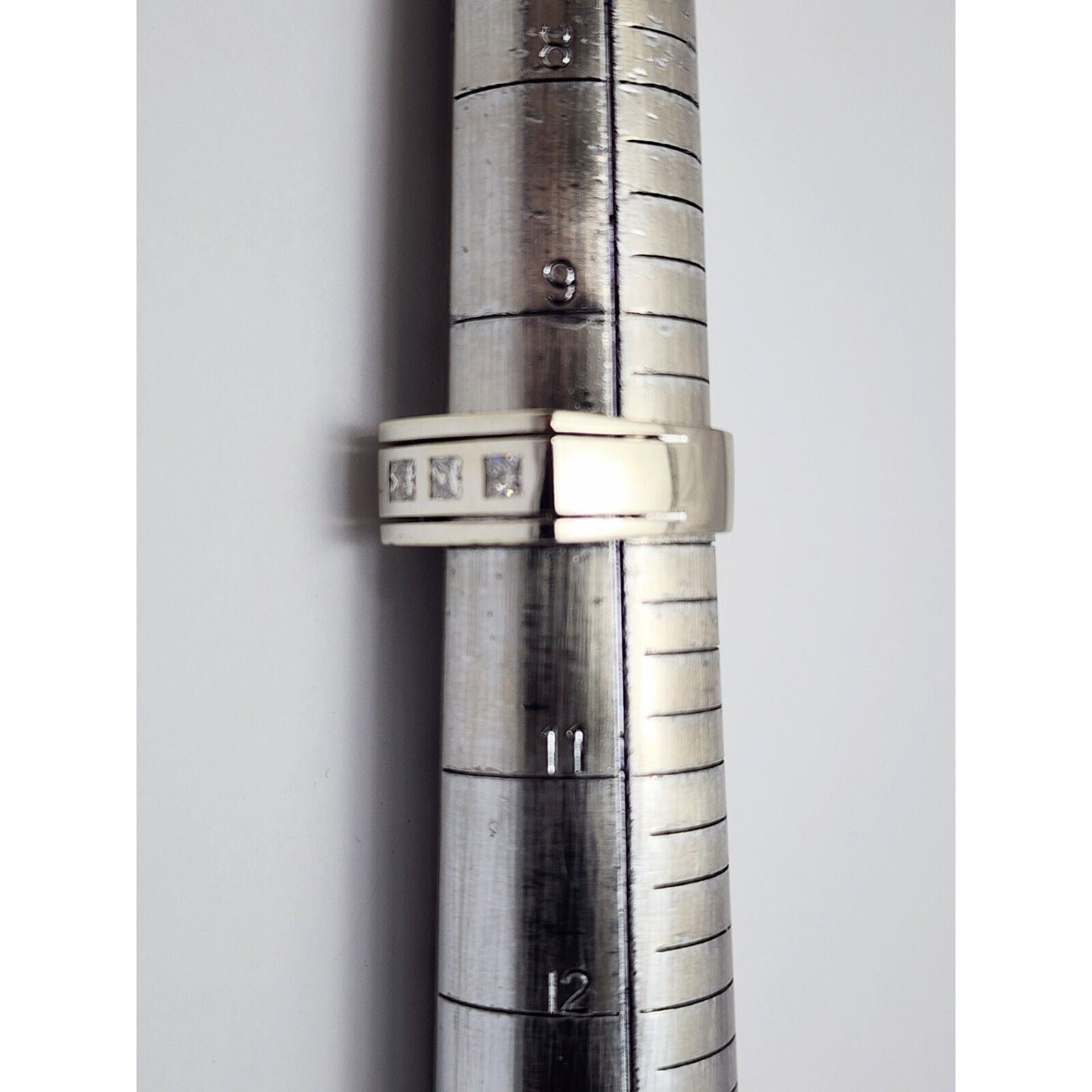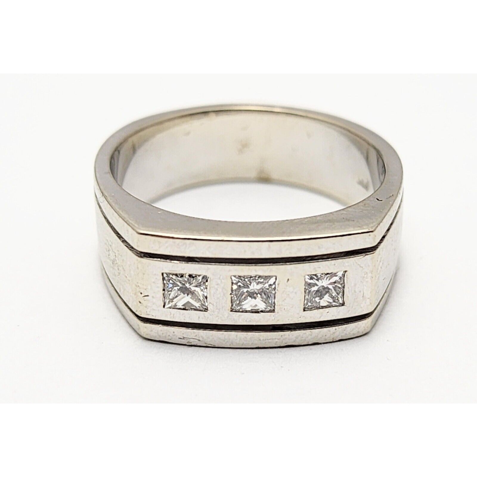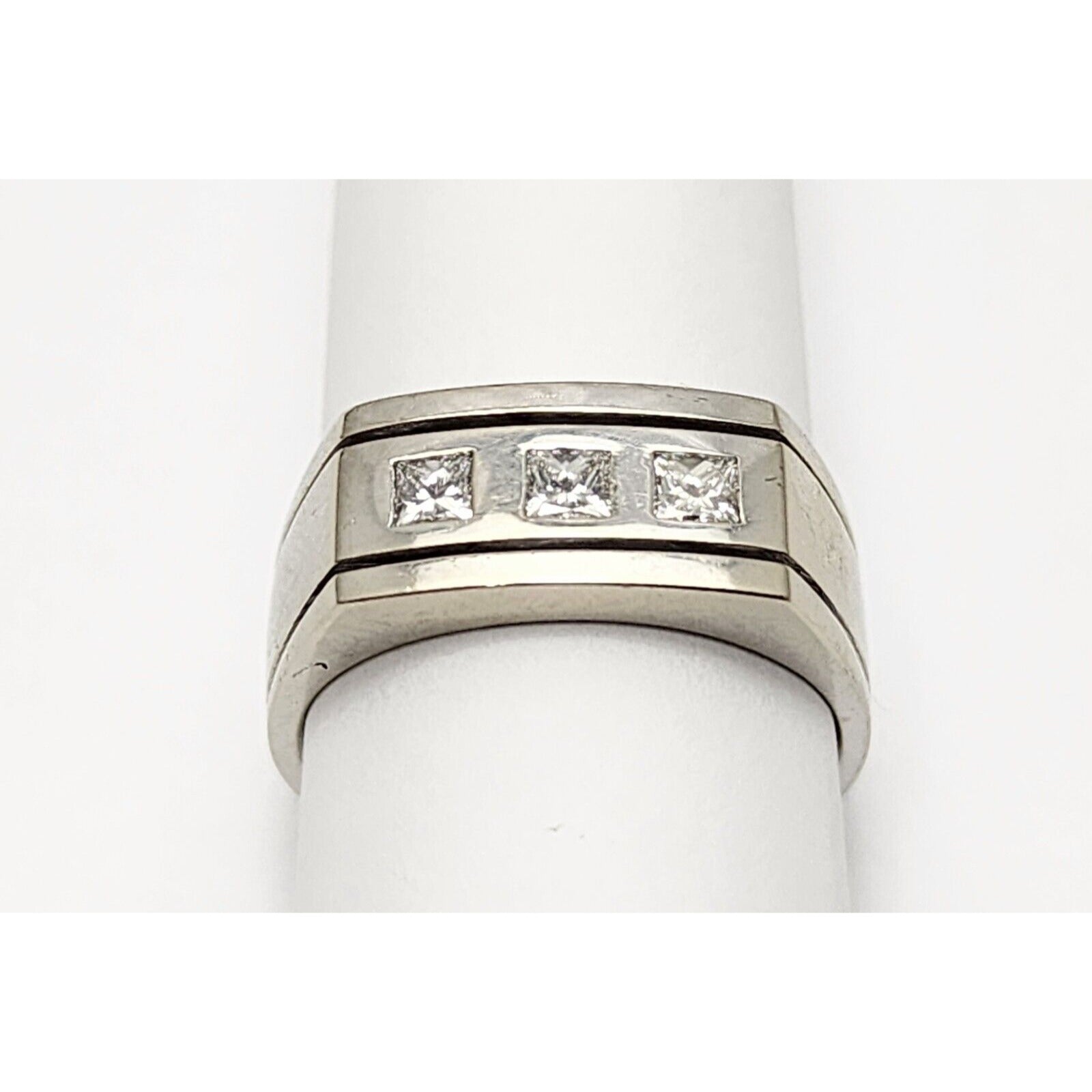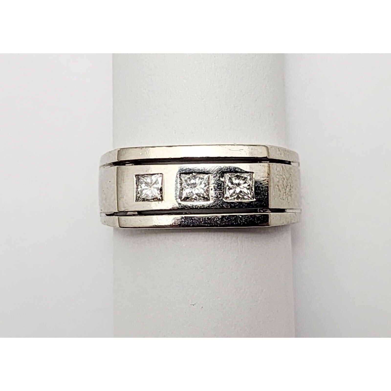 14K White Gold 3 Princess Cut Diamond Men's Ring