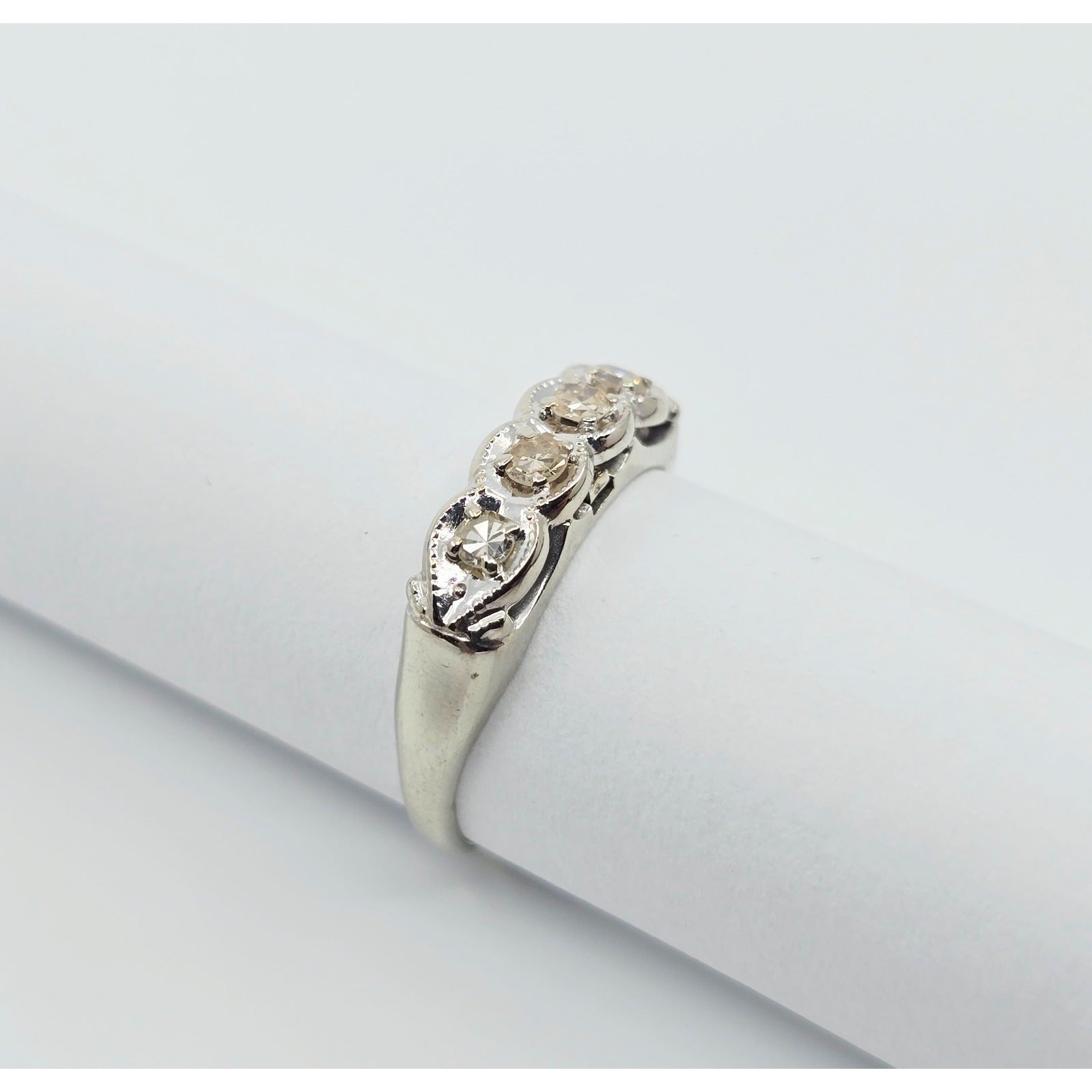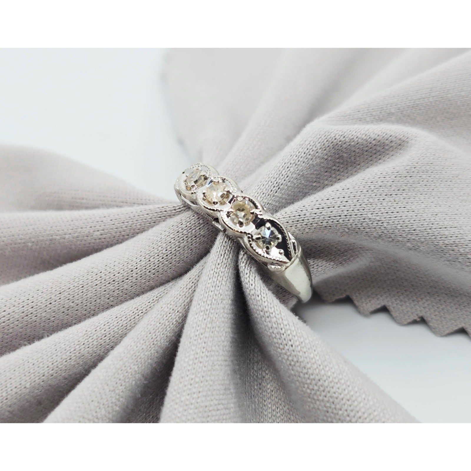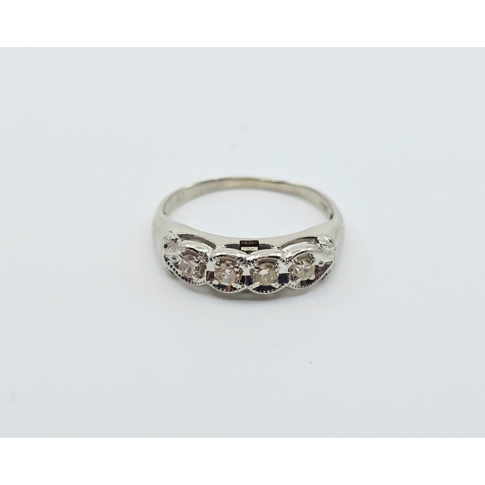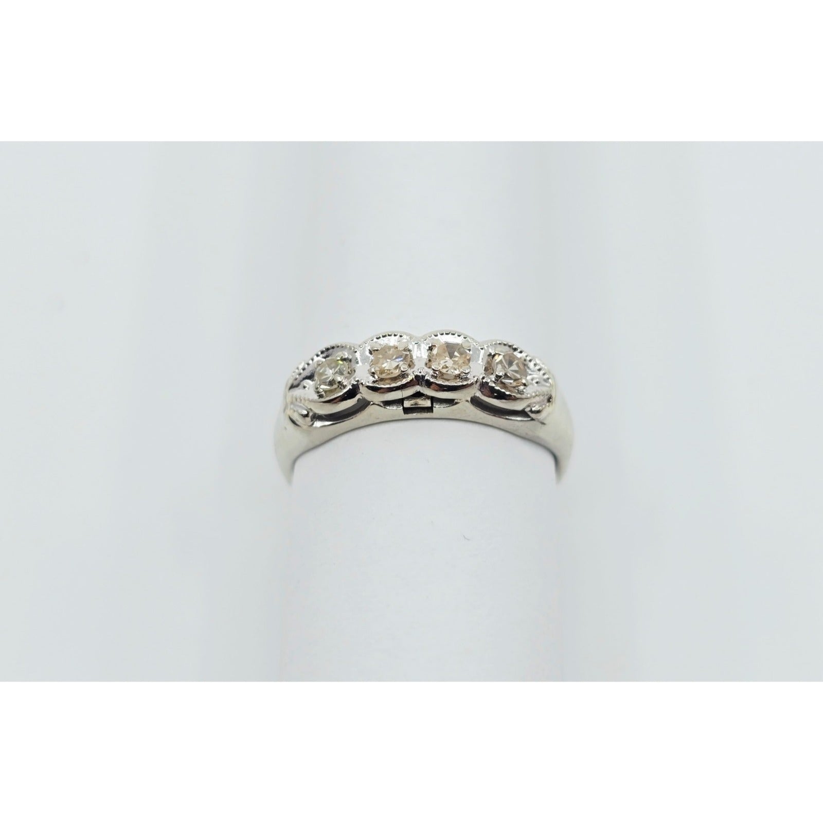 14K White Gold 4 Stone Old Cut Diamond Ring