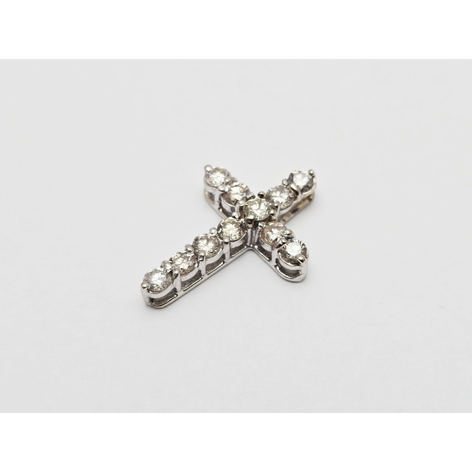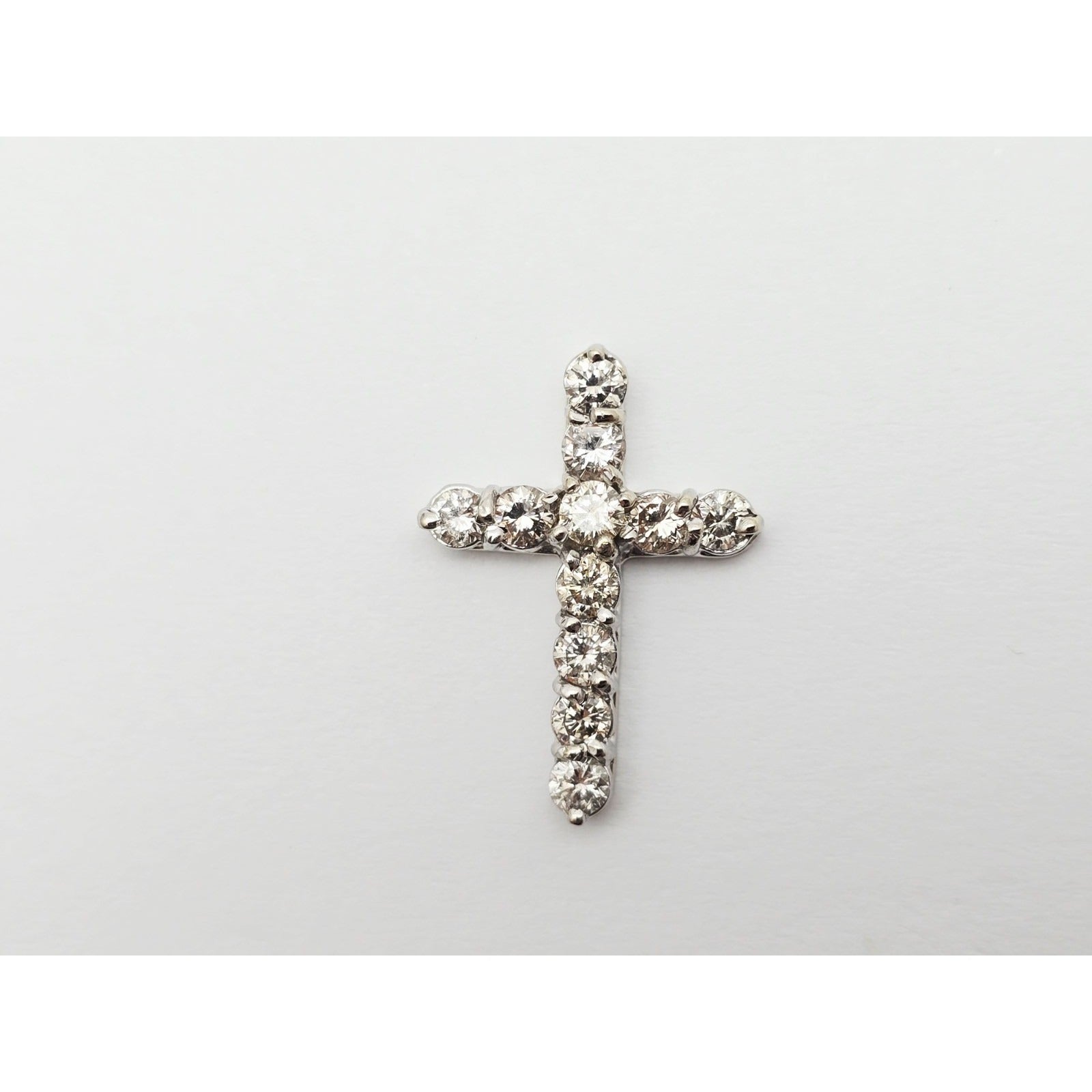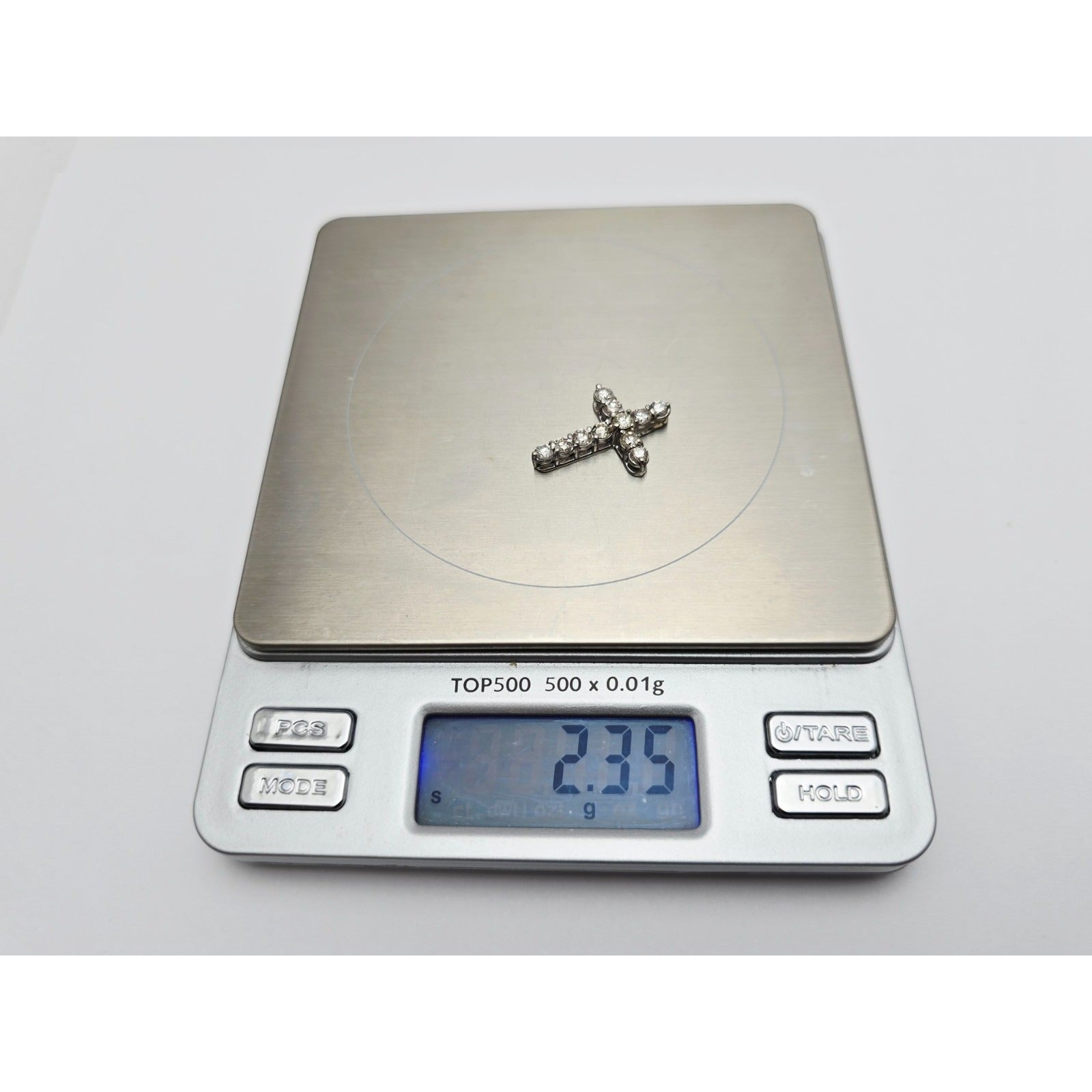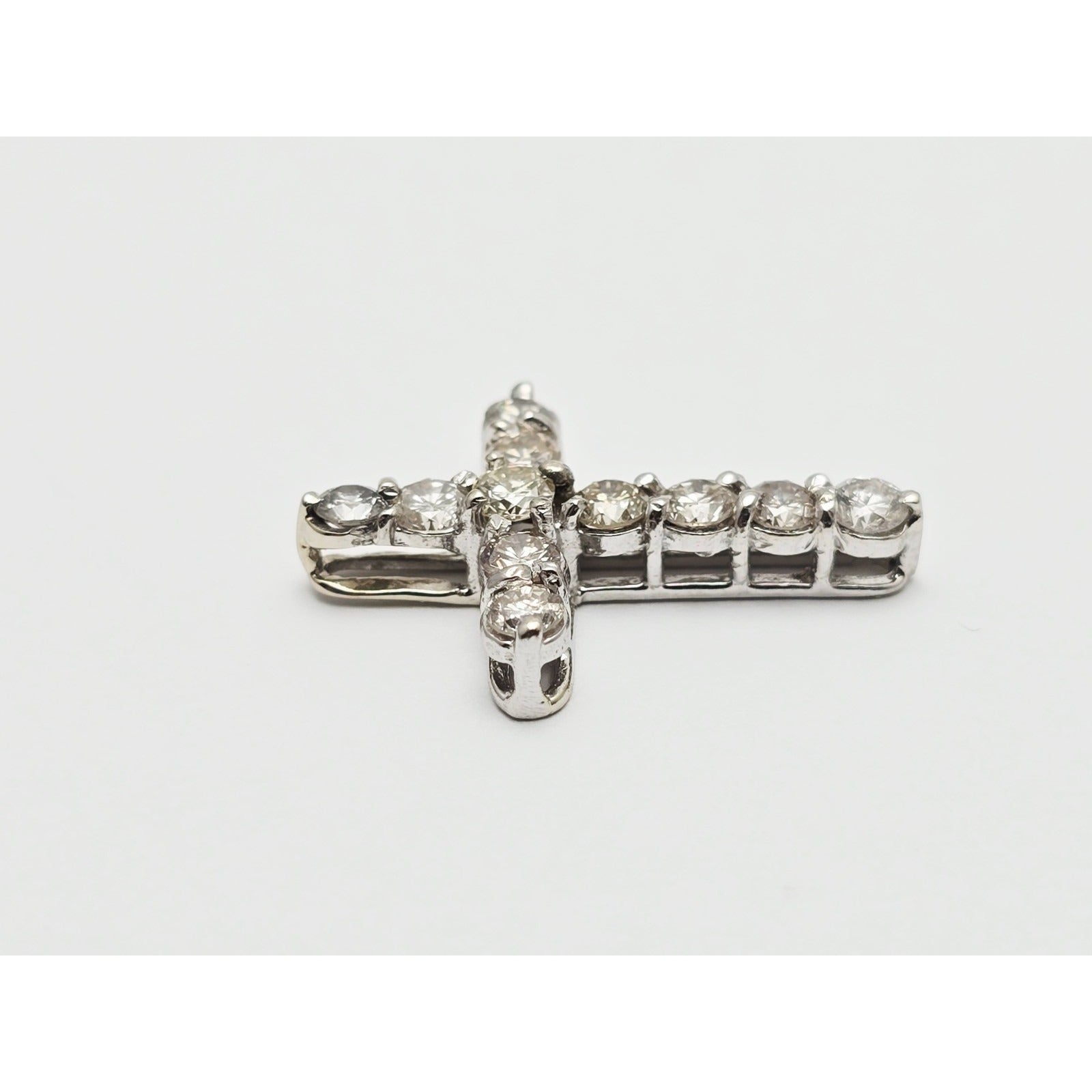 14K White Gold Brilliant White Diamond Cross Pendant Charm