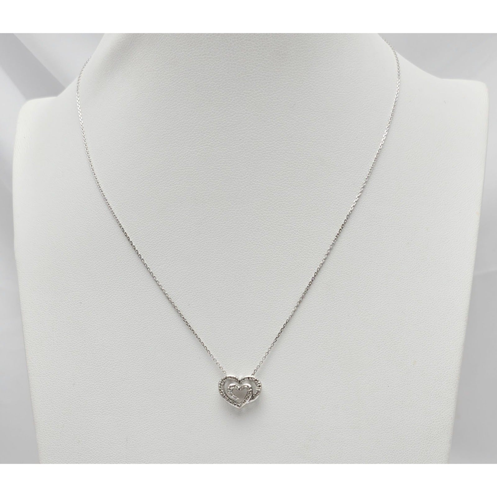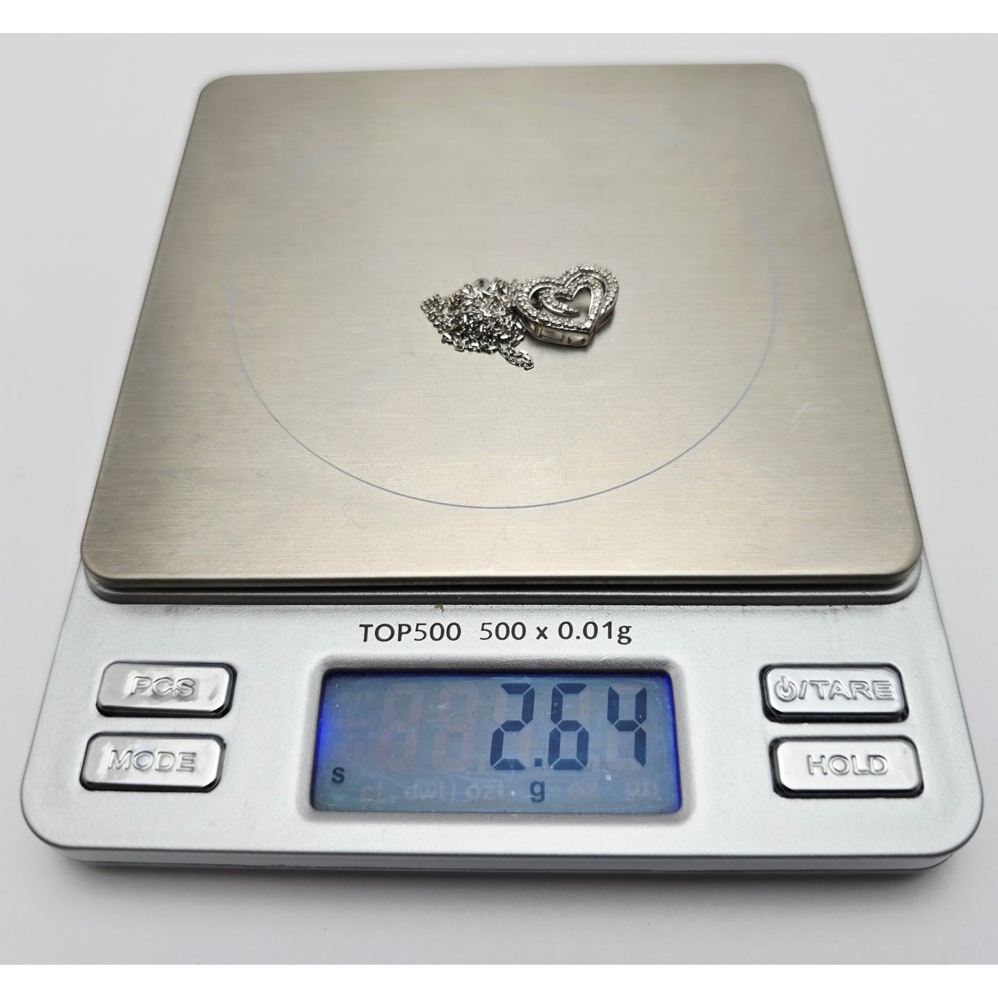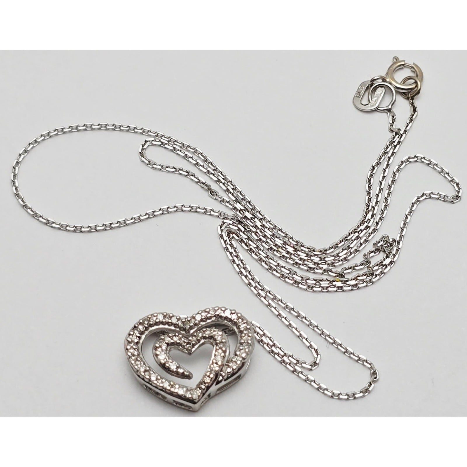 14K White Gold Cable Link Chain Necklace & Diamond Spiral Heart Charm Pendant