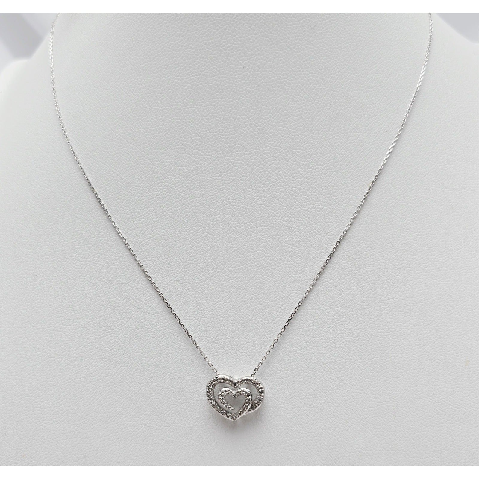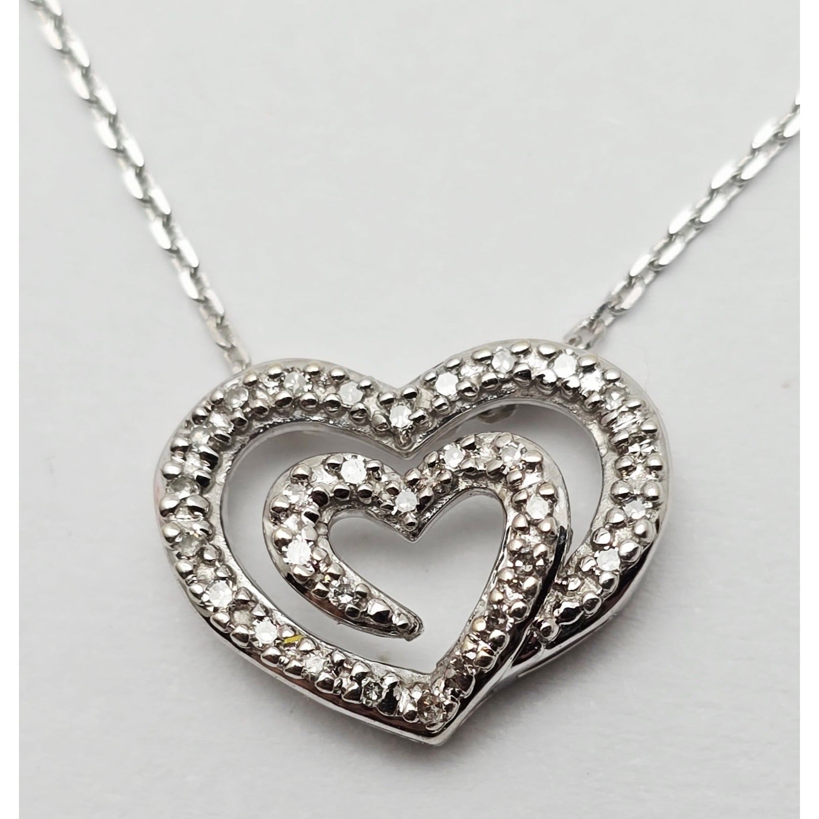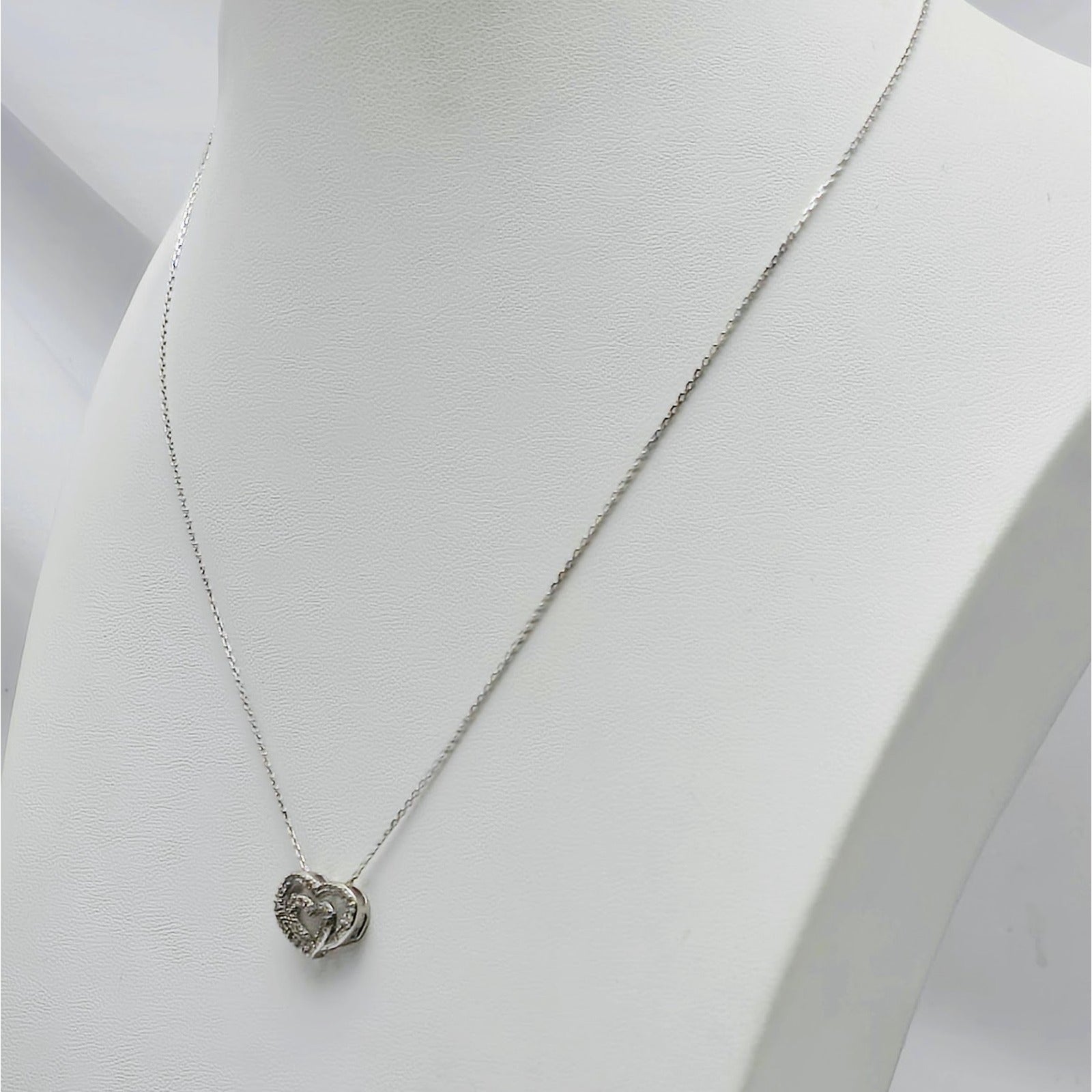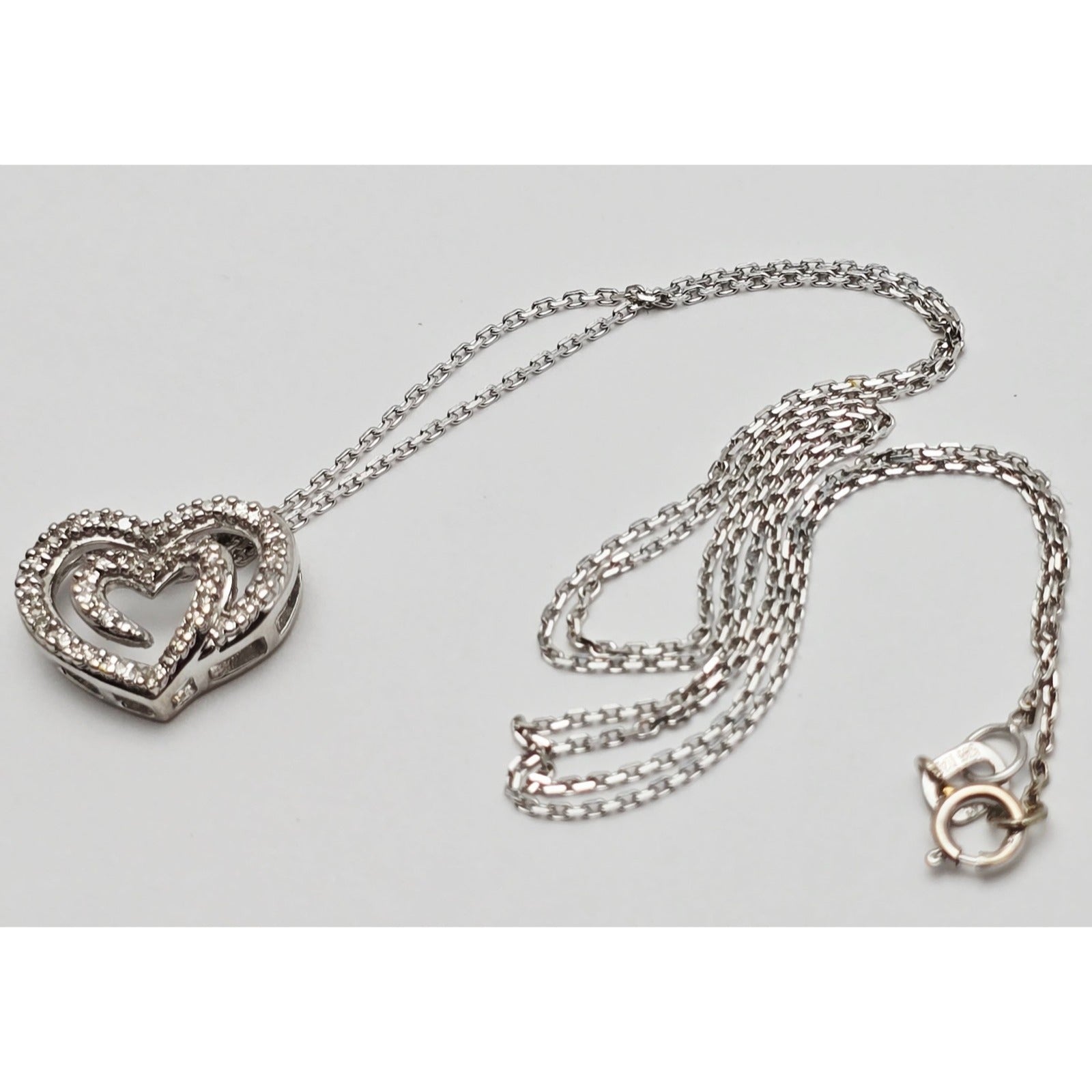 14K White Gold Cable Link Chain Necklace & Diamond Spiral Heart Charm Pendant