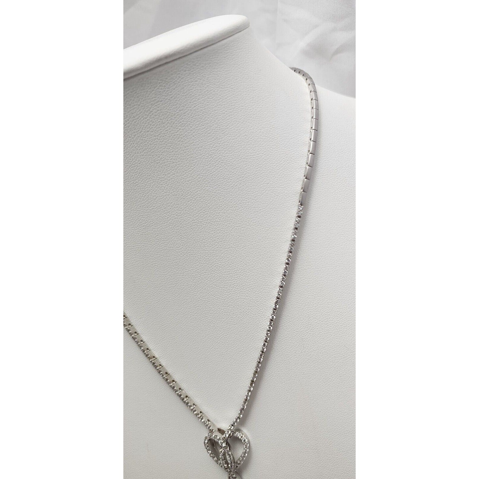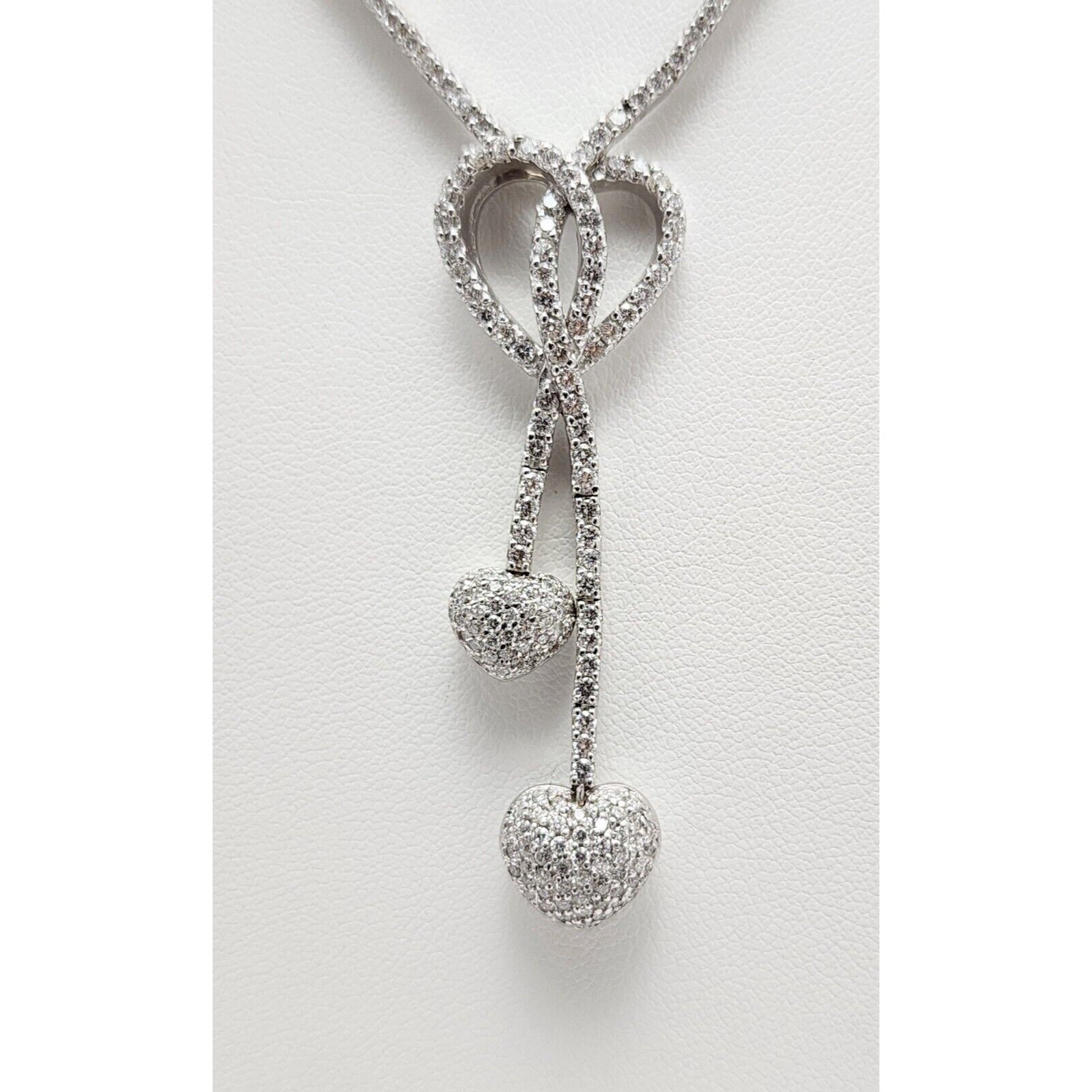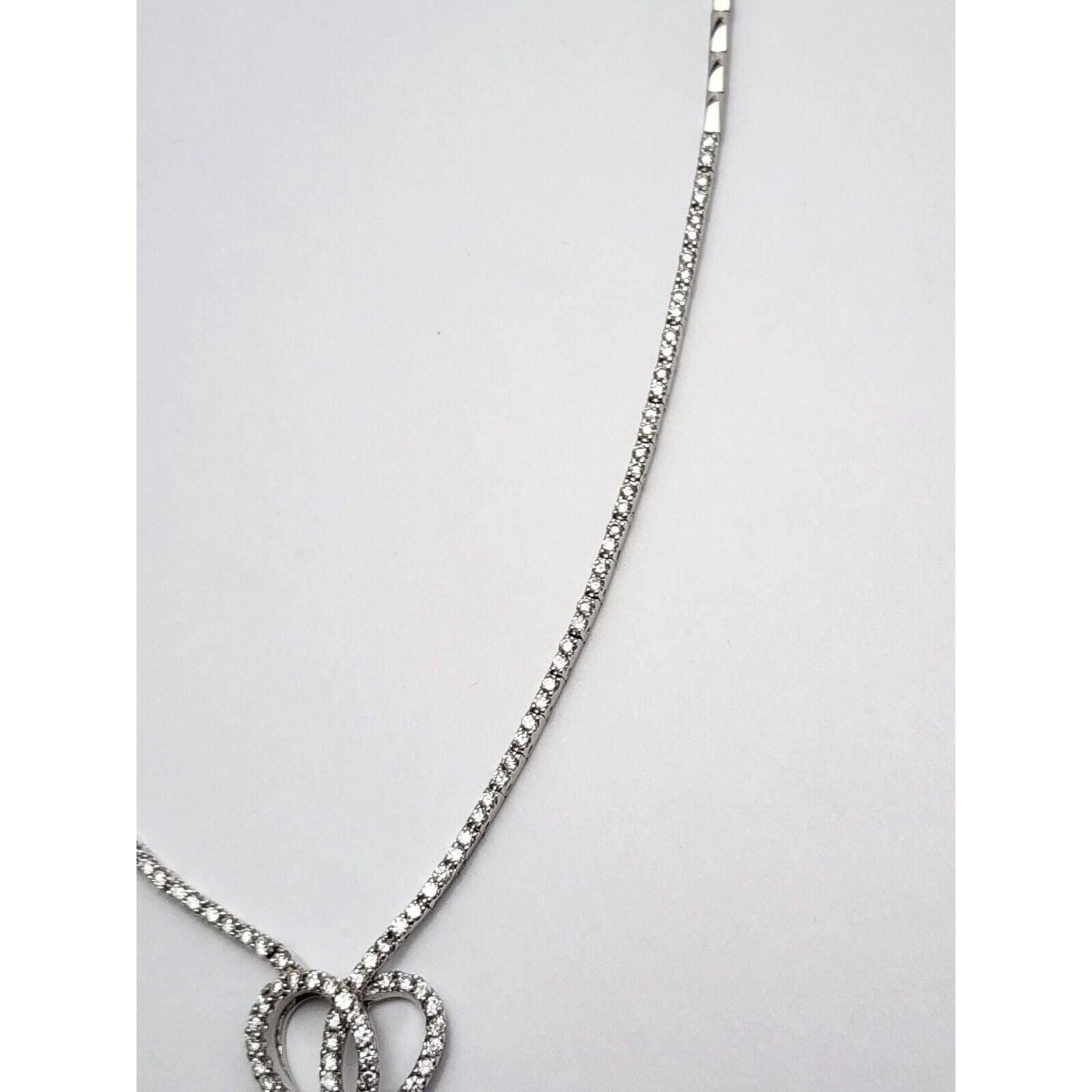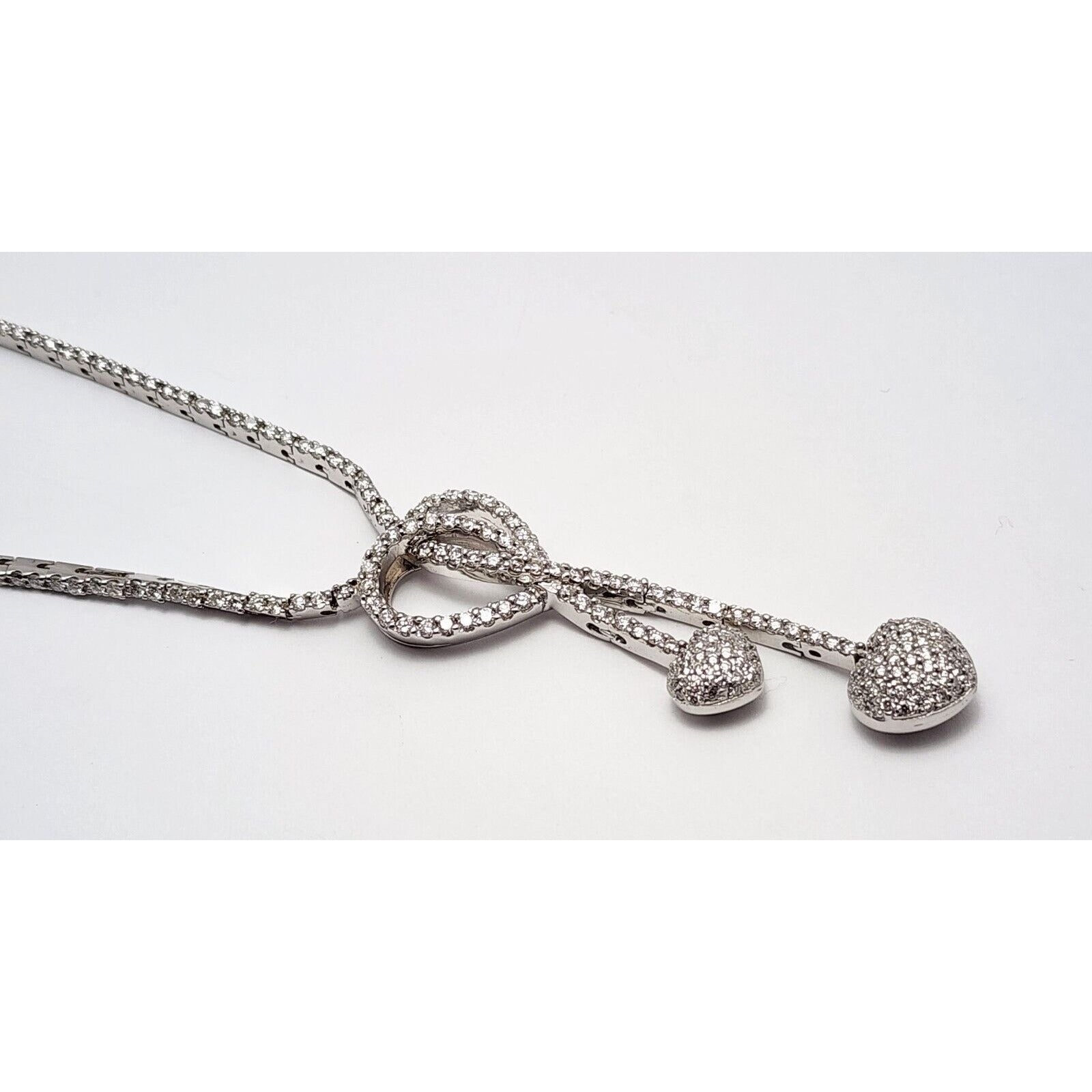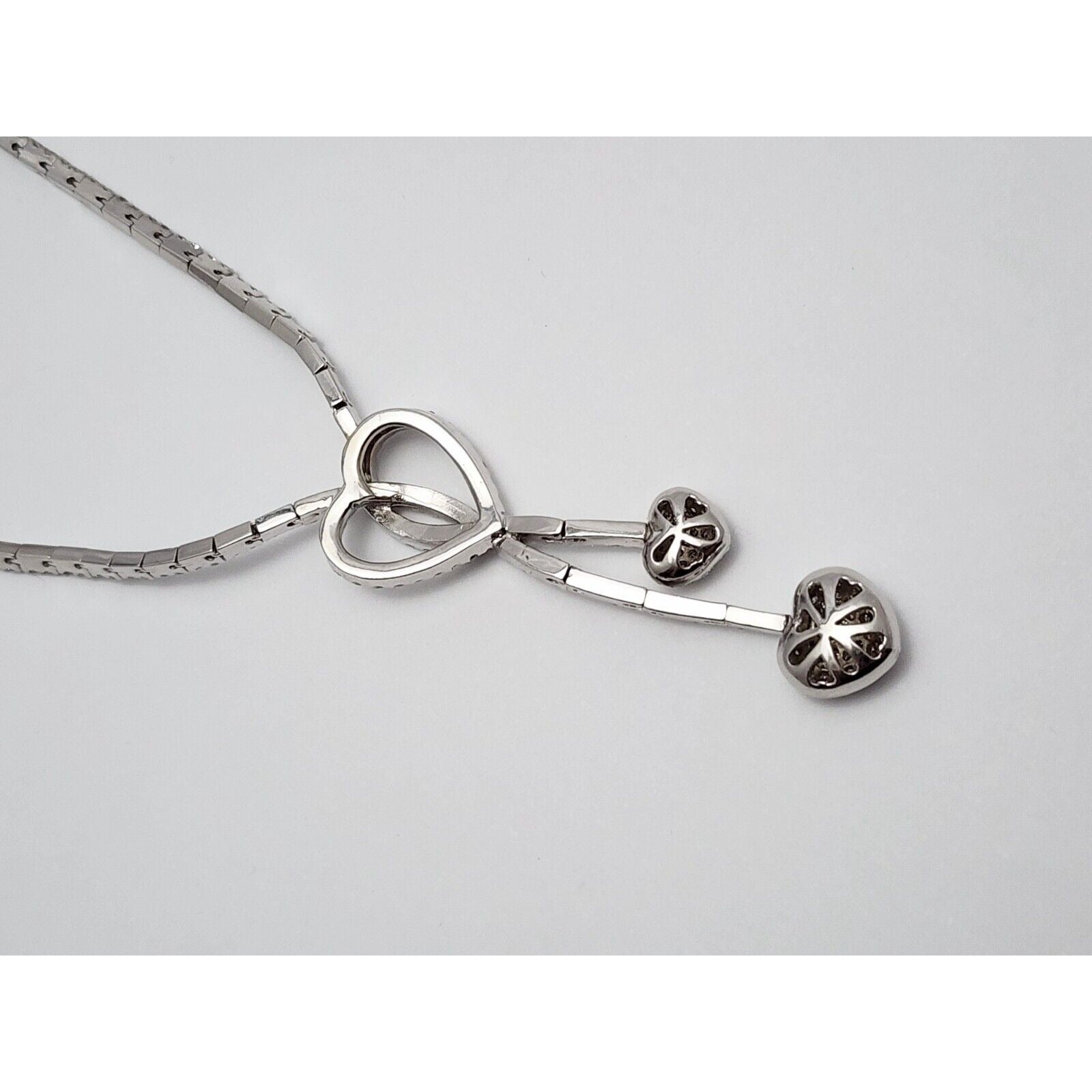 14K White Gold Diamond Double Heart Dangle Link Chain Necklace
