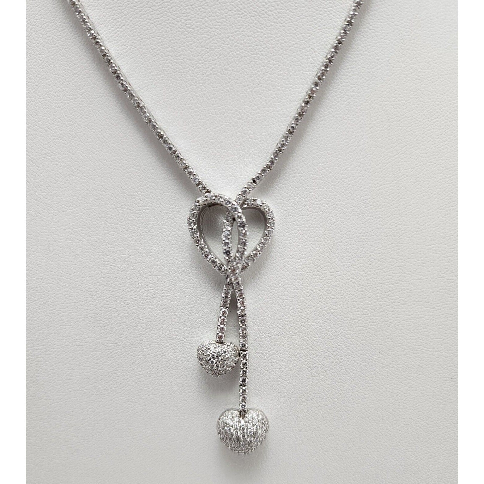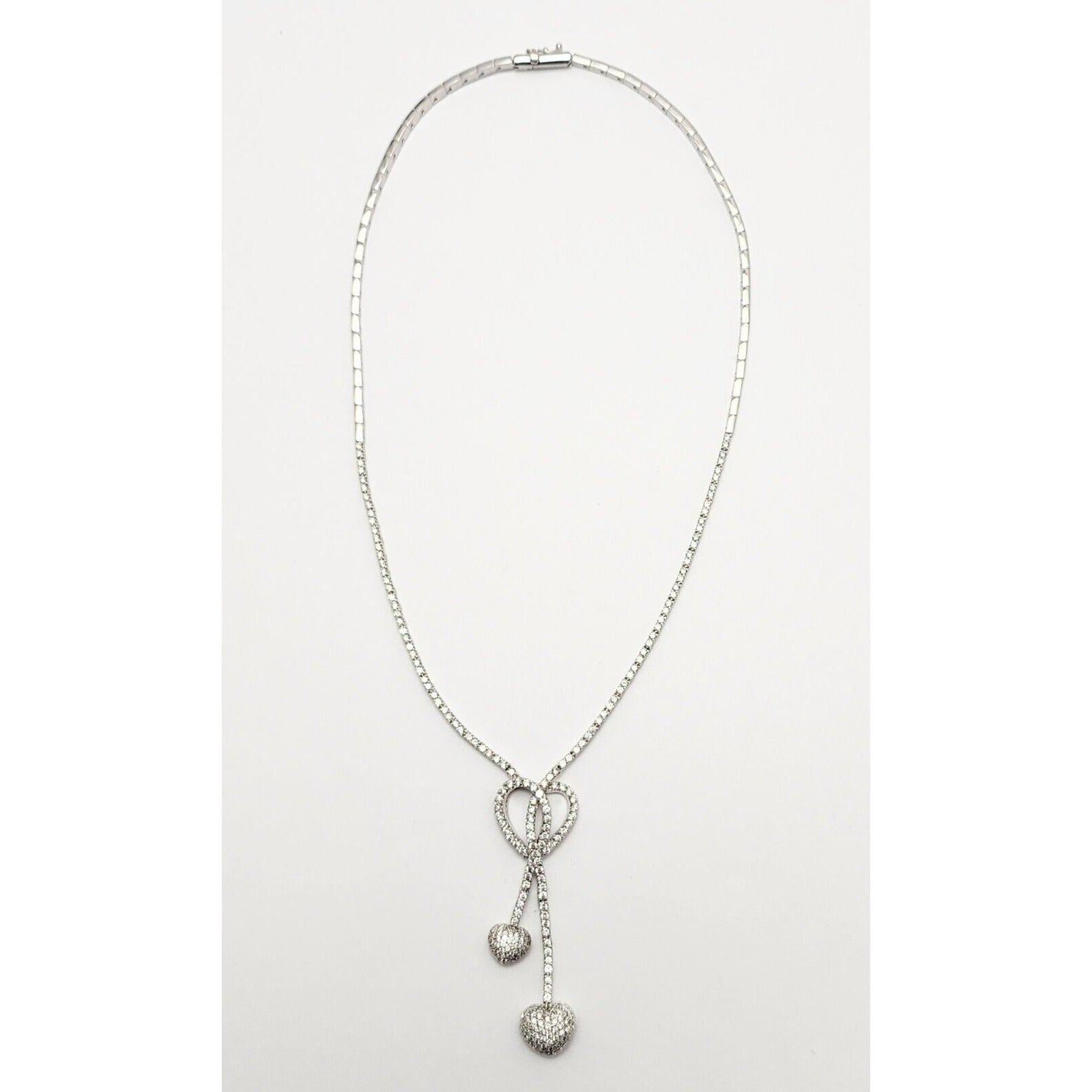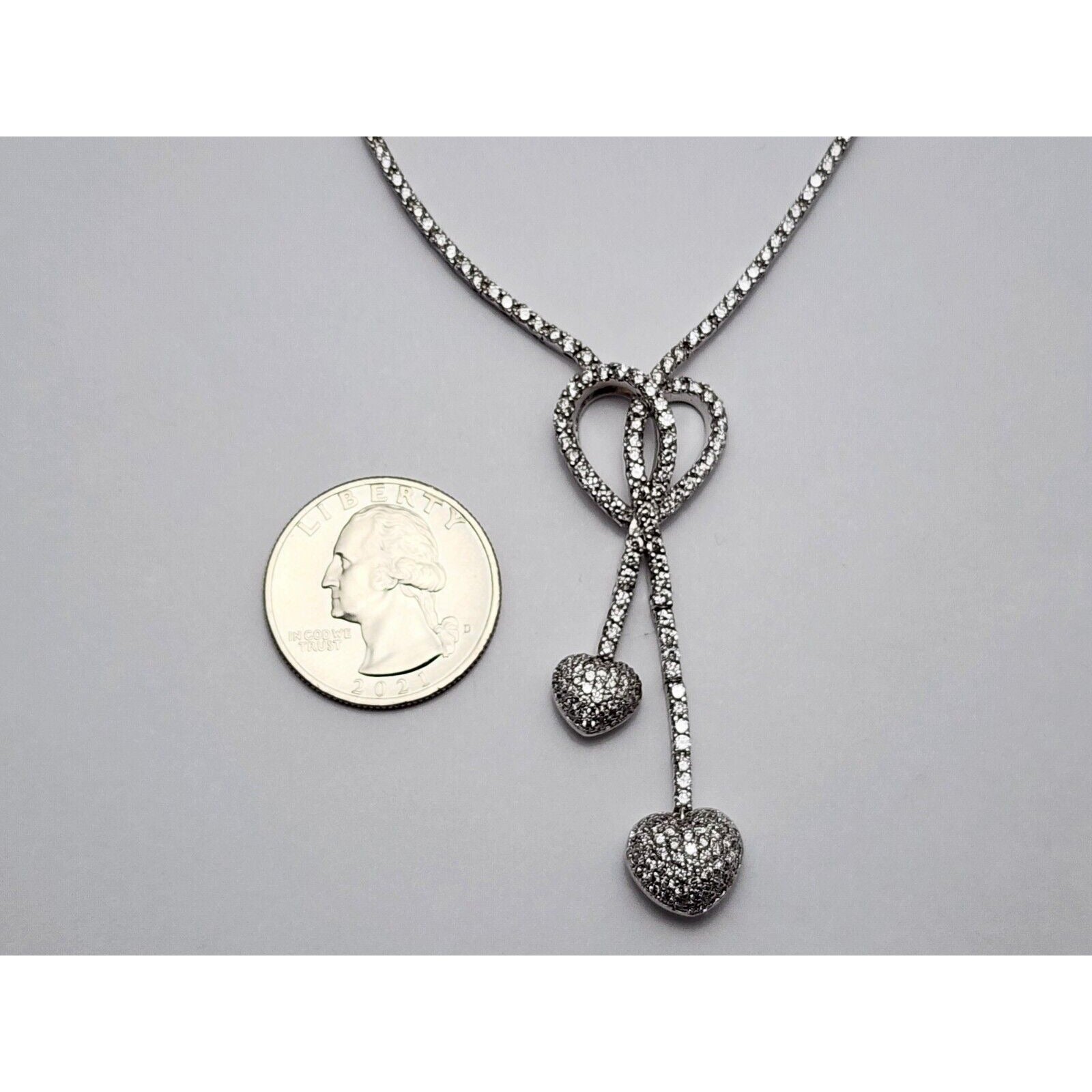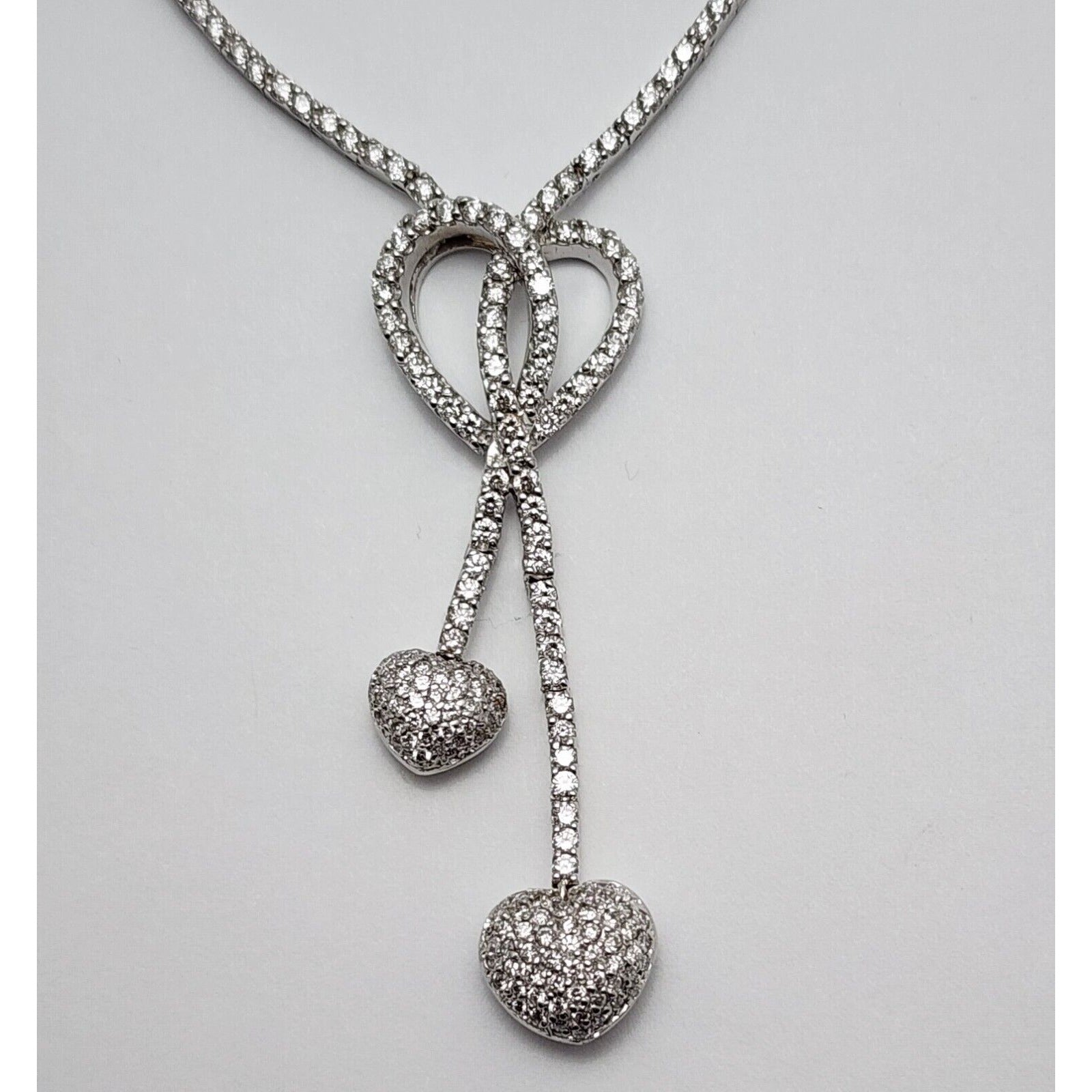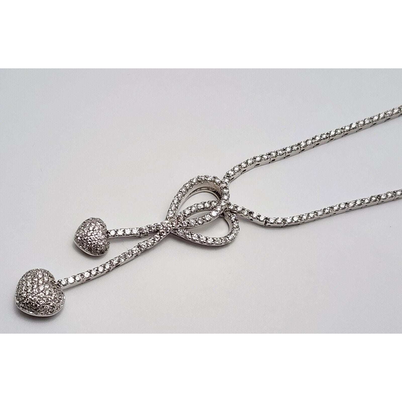 14K White Gold Diamond Double Heart Dangle Link Chain Necklace