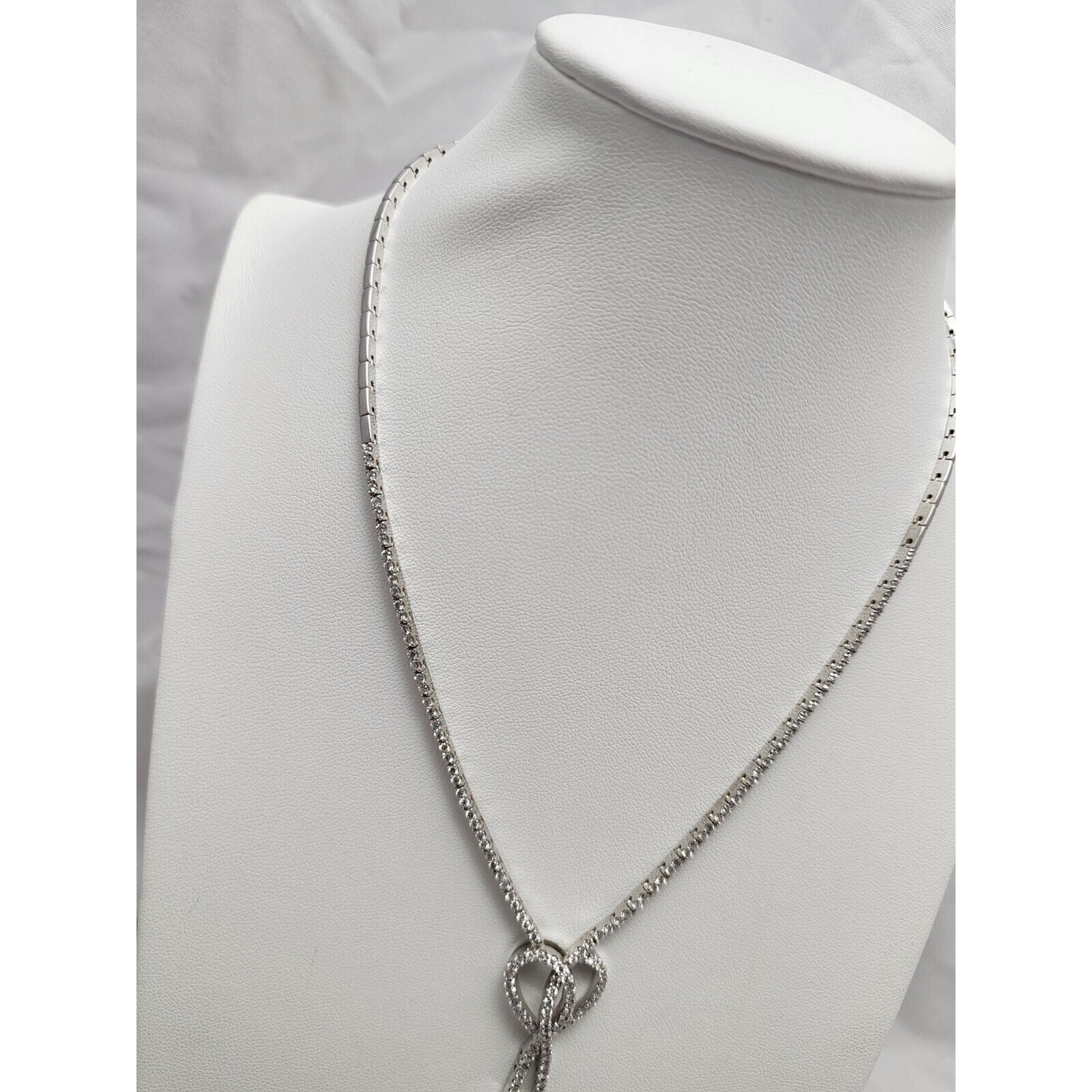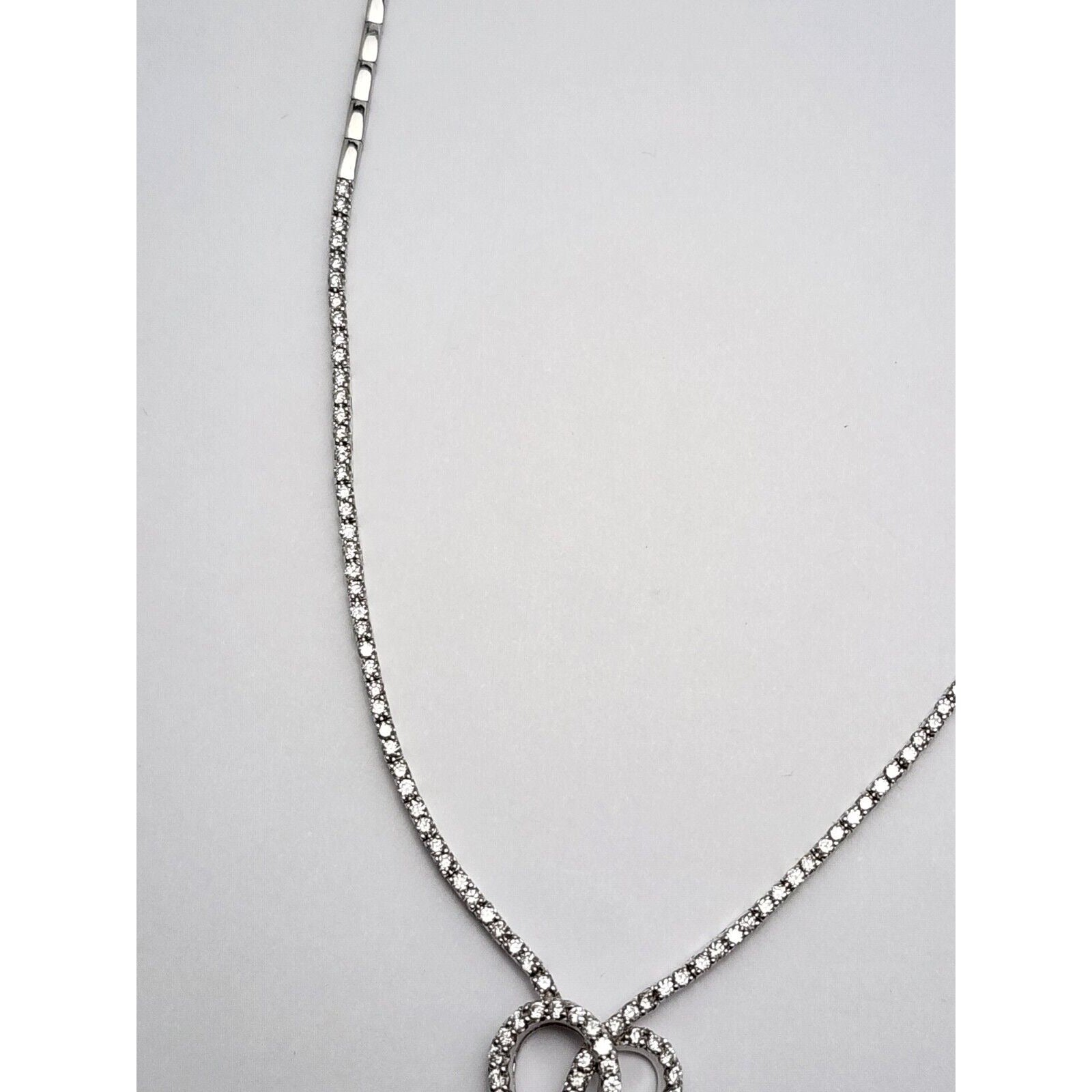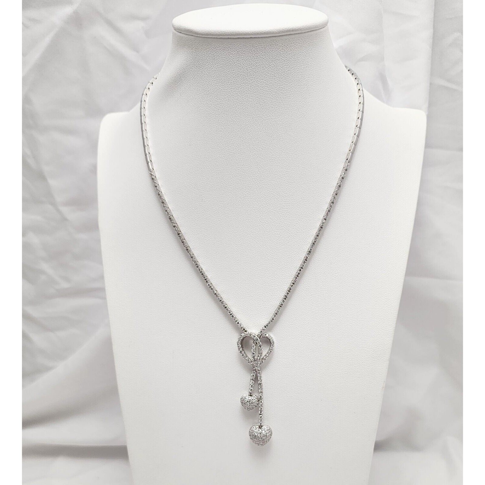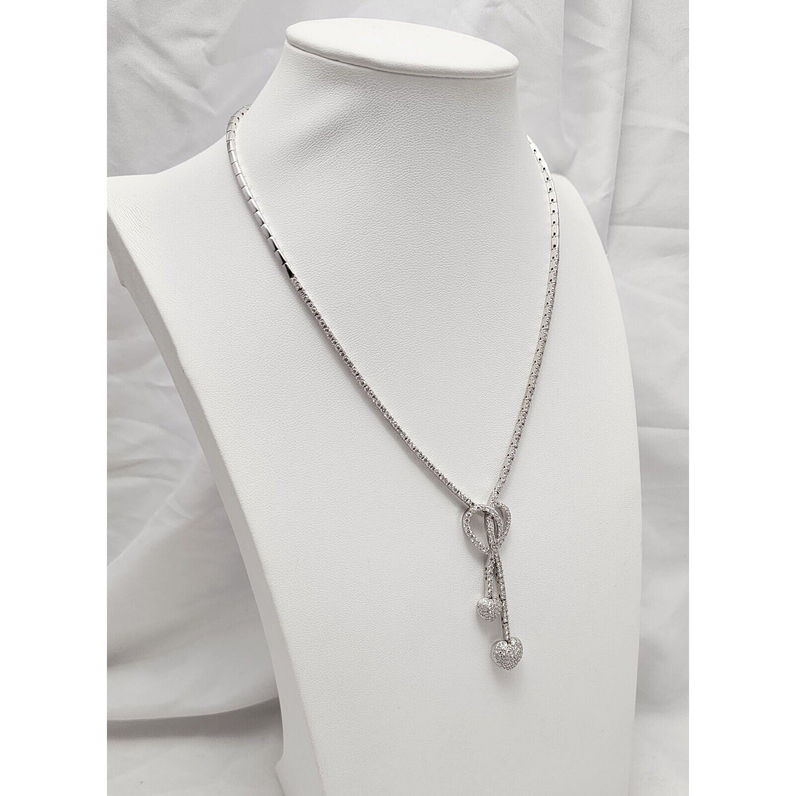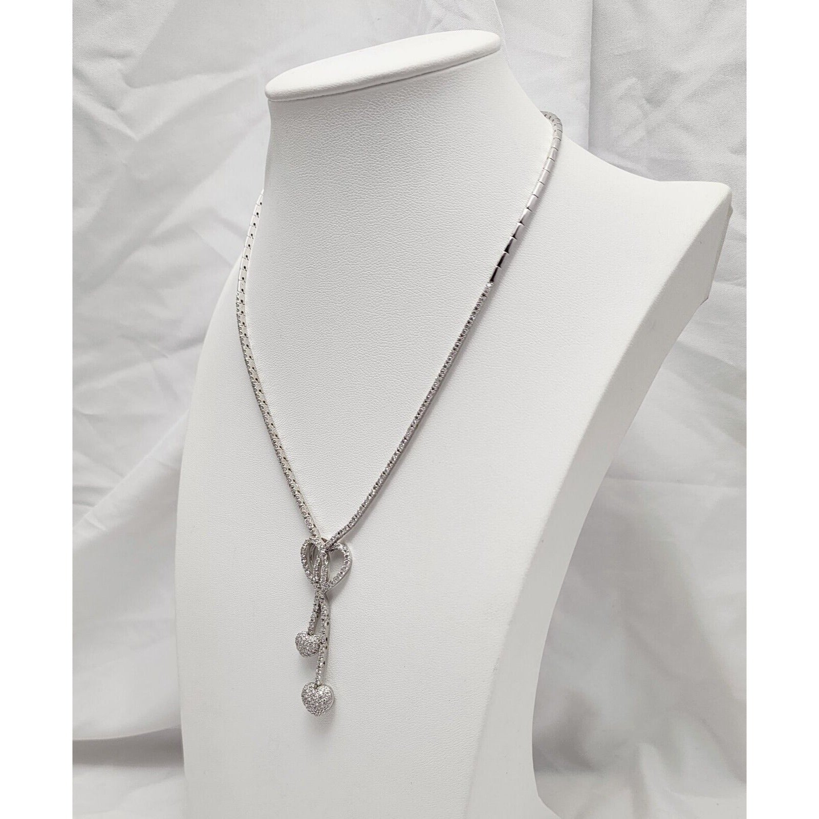 14K White Gold Diamond Double Heart Dangle Link Chain Necklace