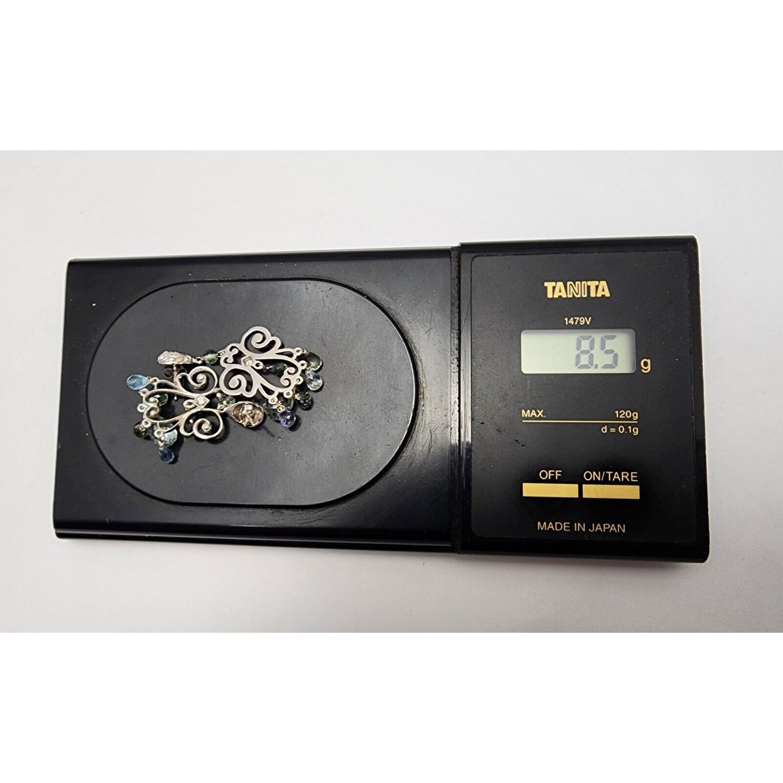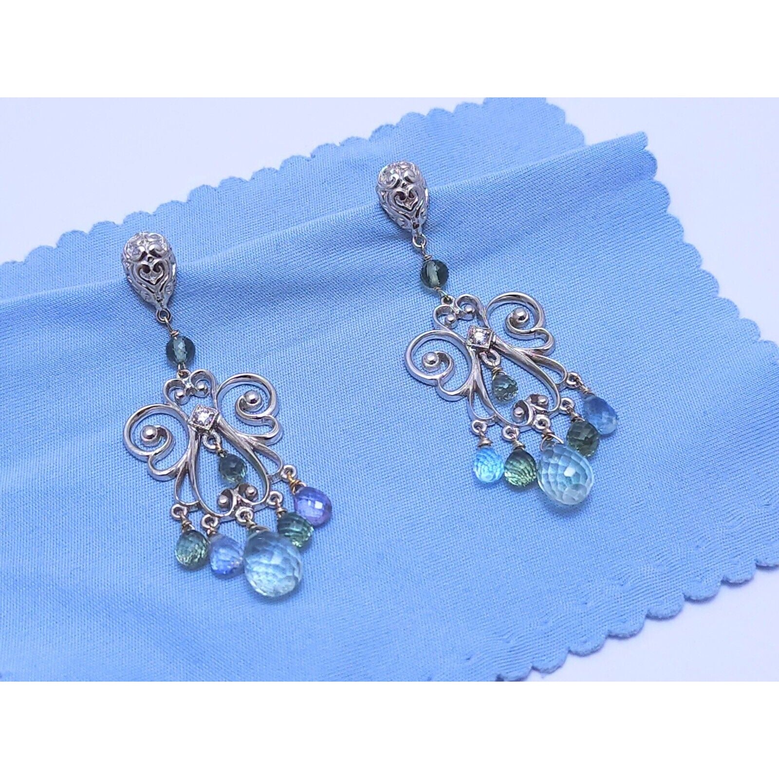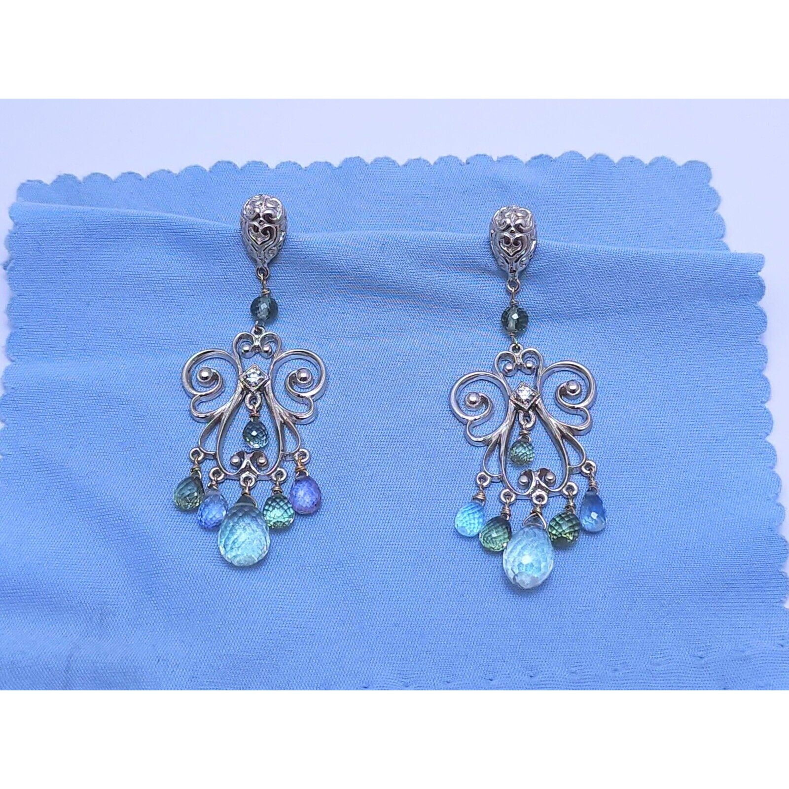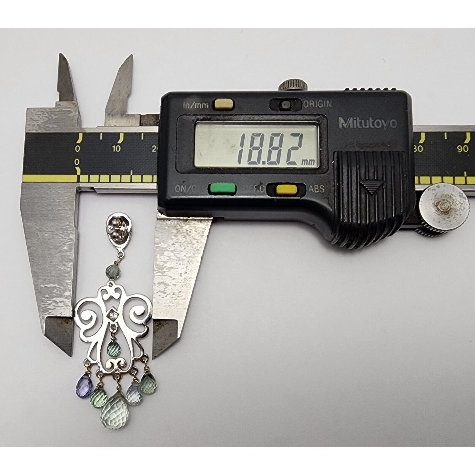 - Earrings have 2 Round Cut Diamonds & 14 Multi Colored Topaz Gemstones
