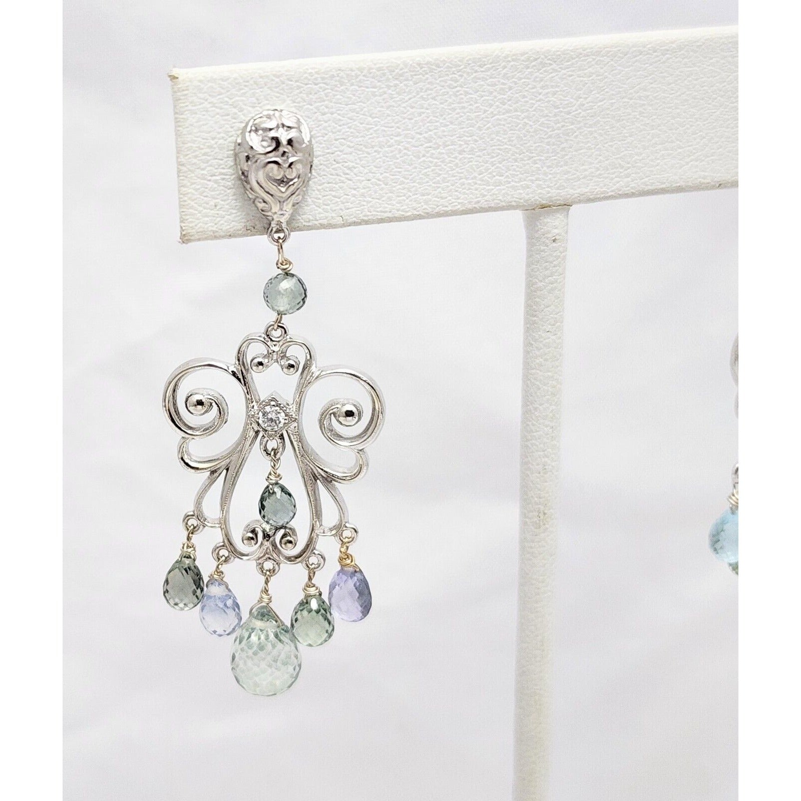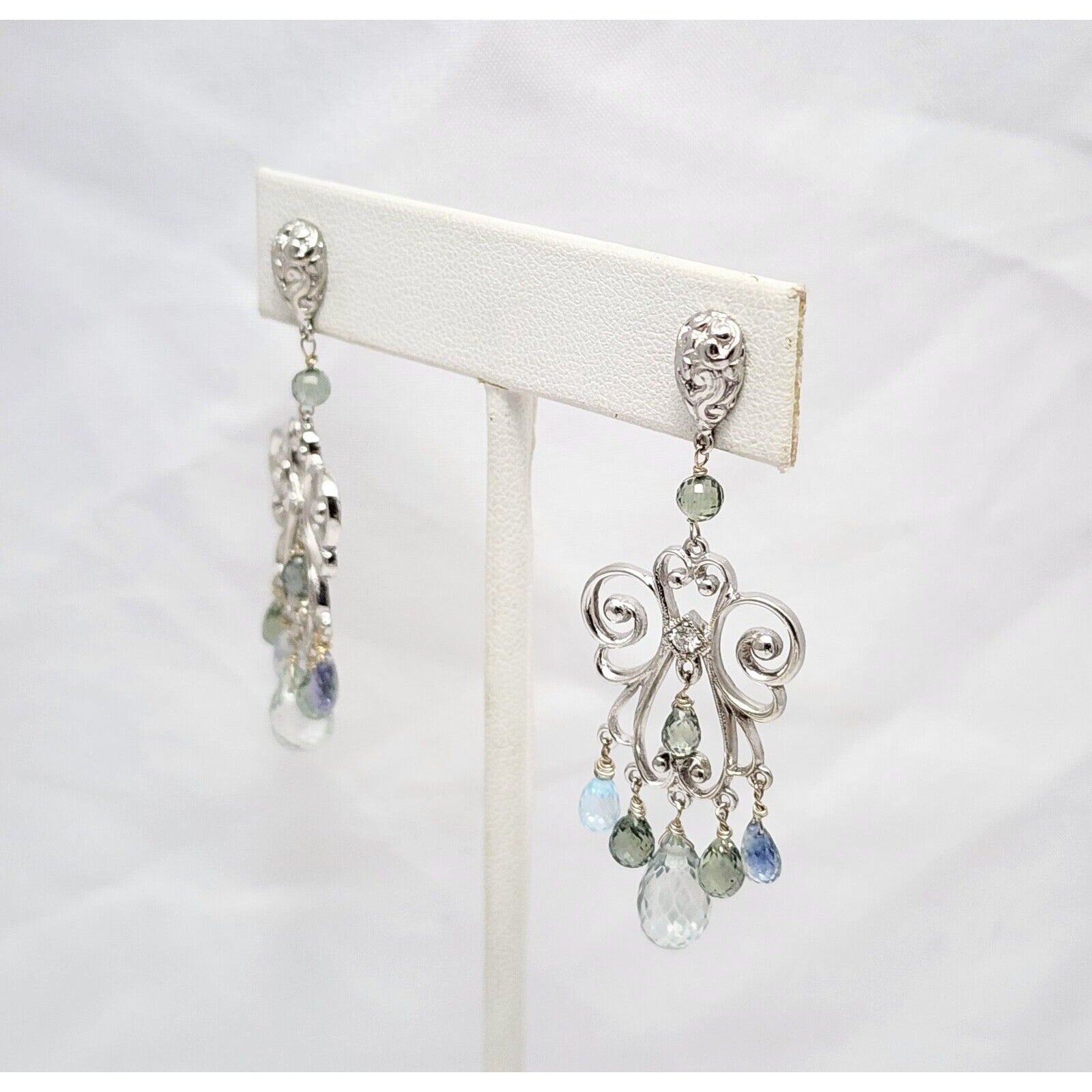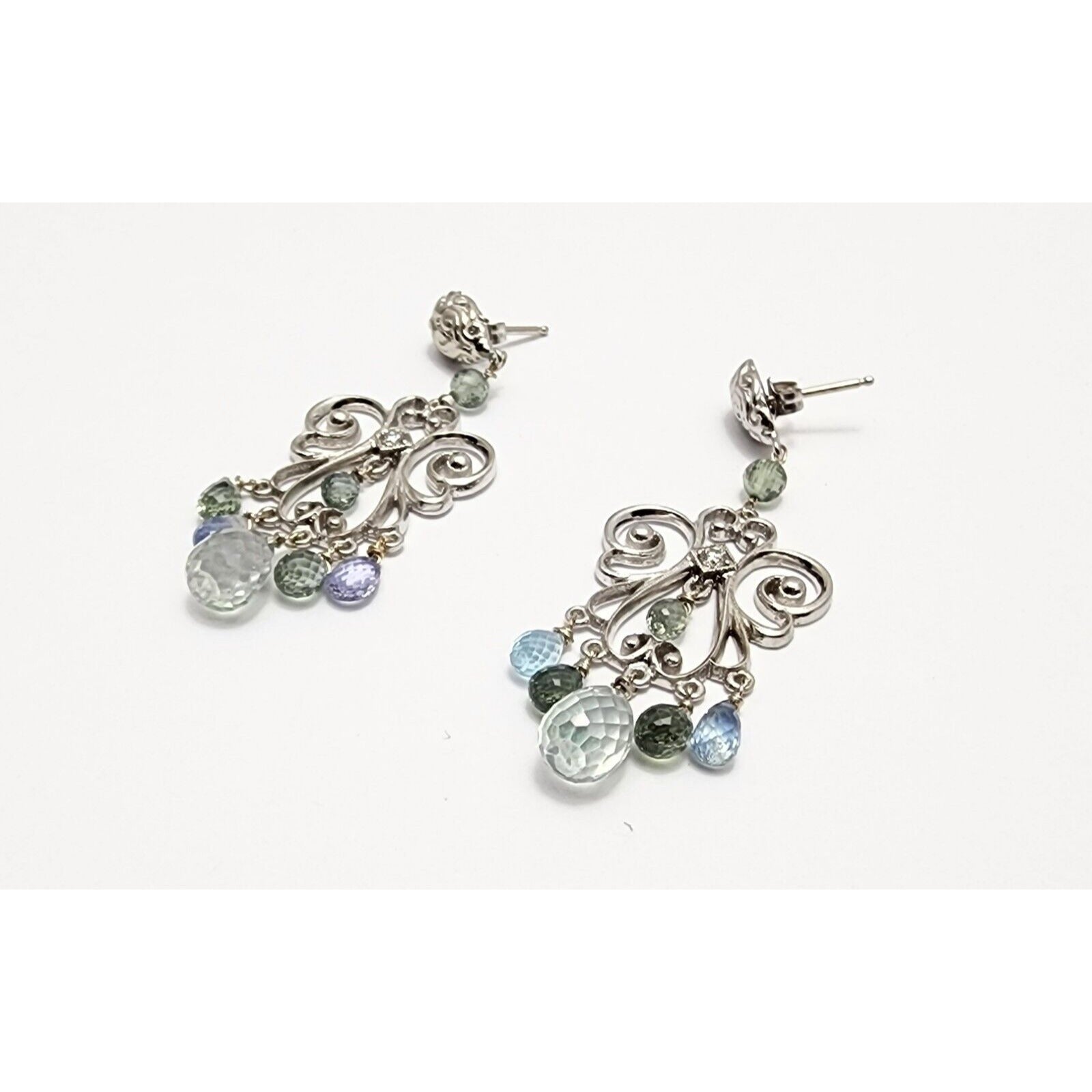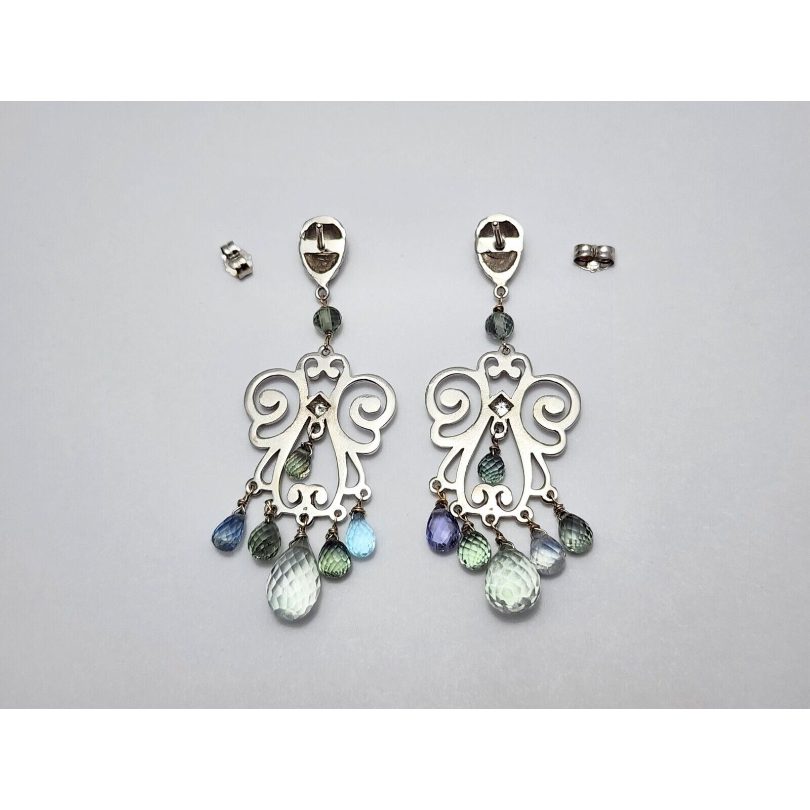 14K White Gold Diamond & Multi Color Topaz Dangle Drop Stud Earrings