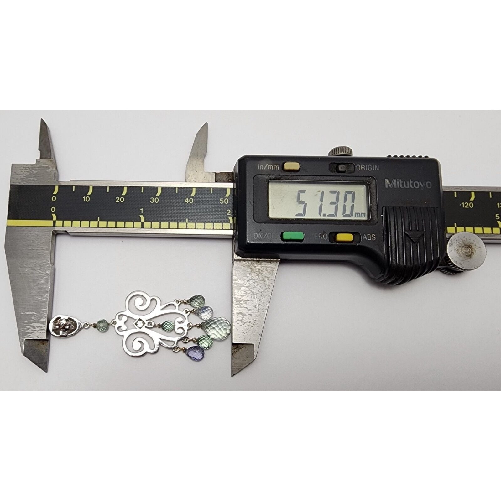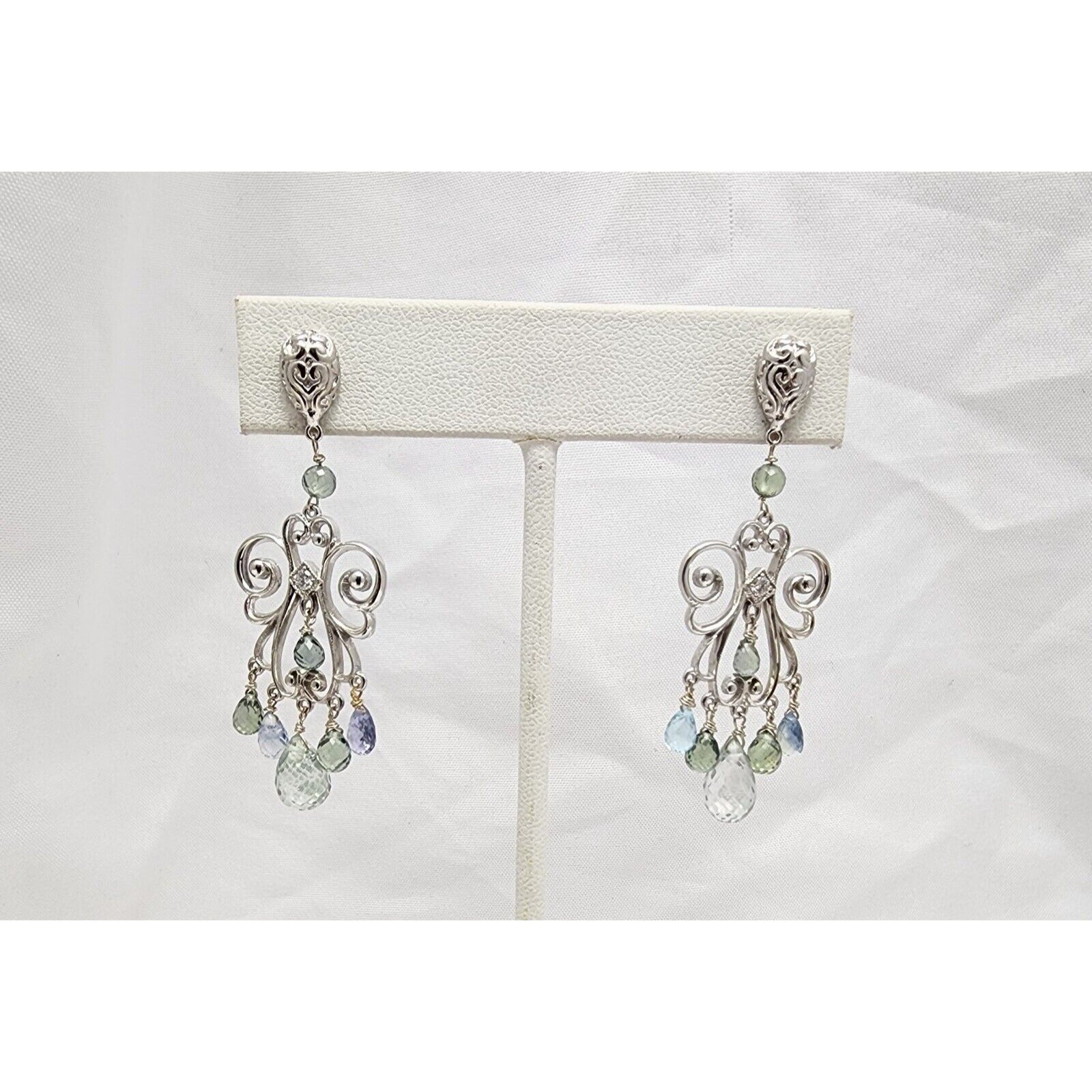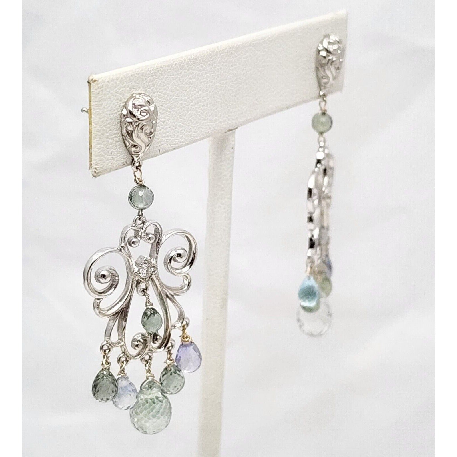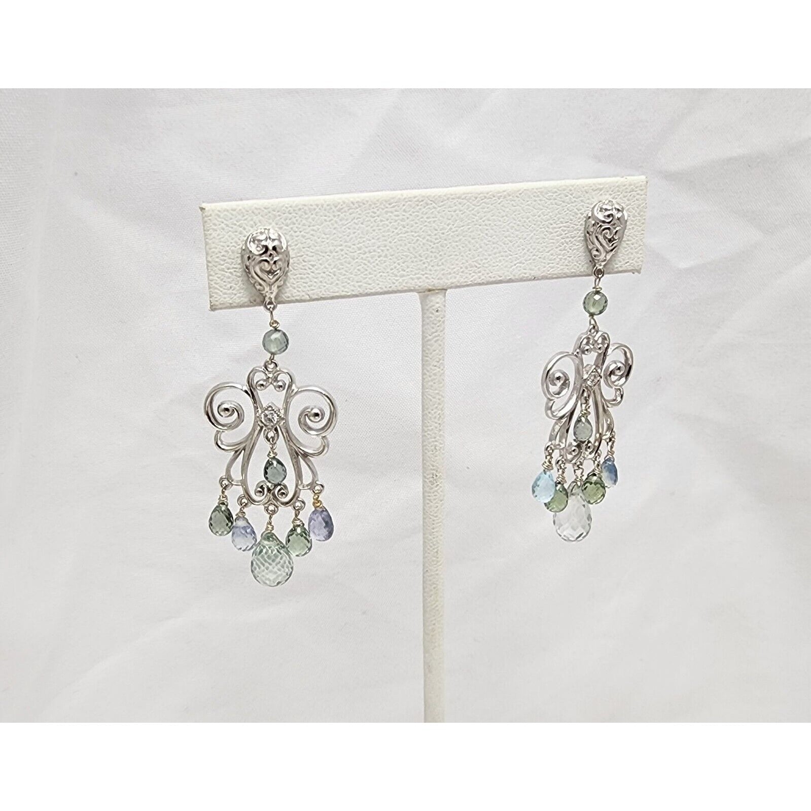 14K White Gold Diamond & Multi Color Topaz Dangle Drop Stud Earrings