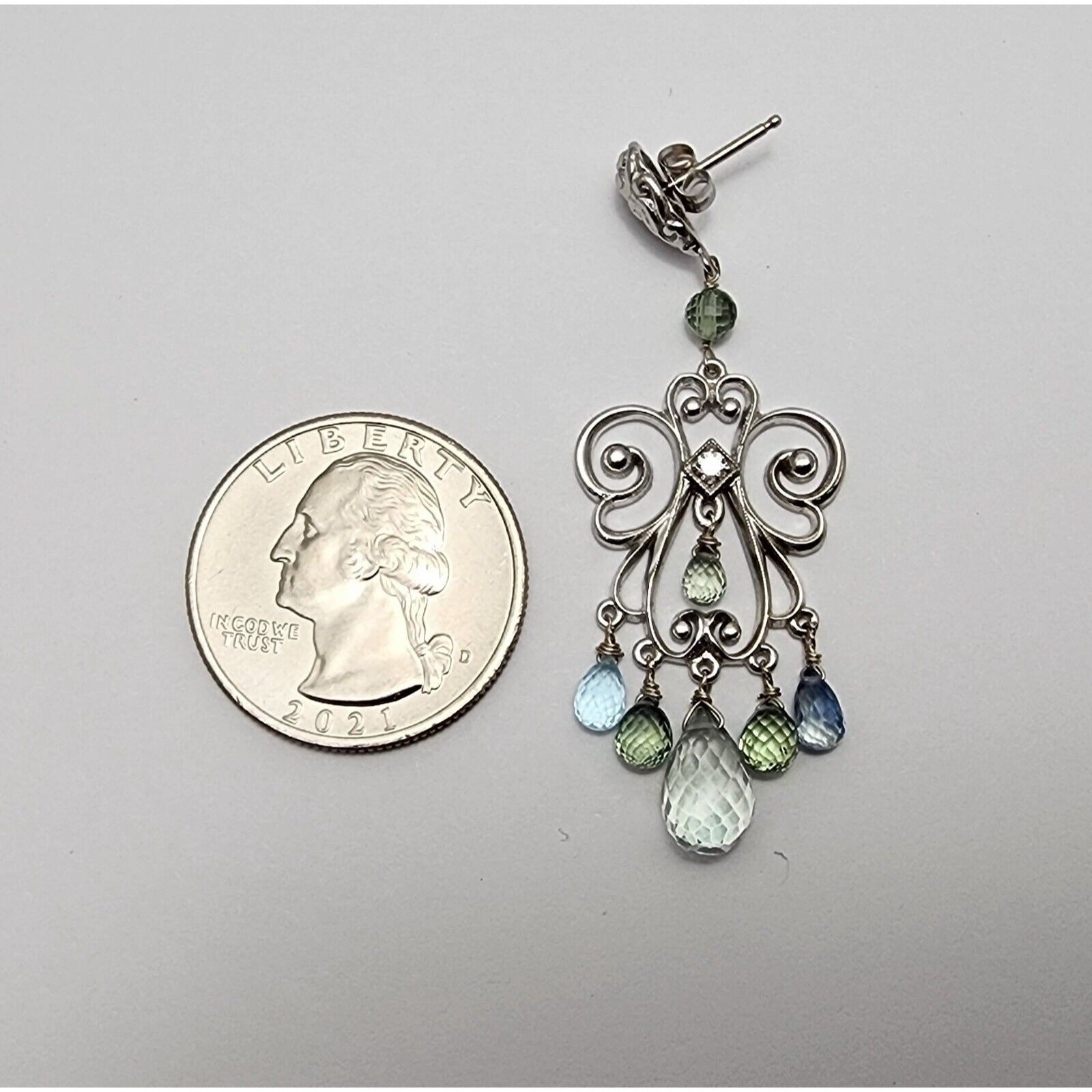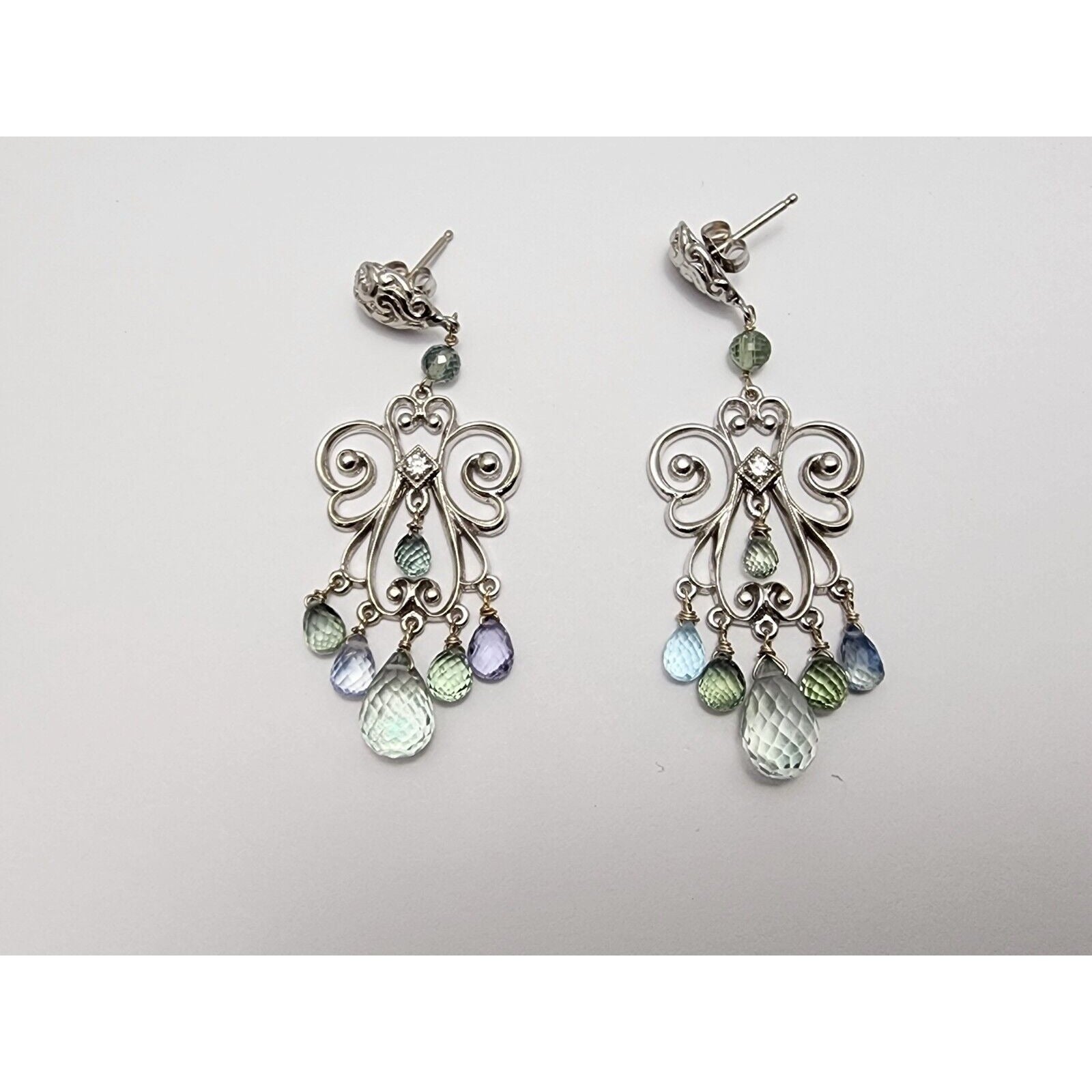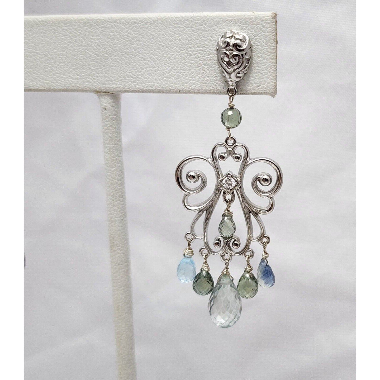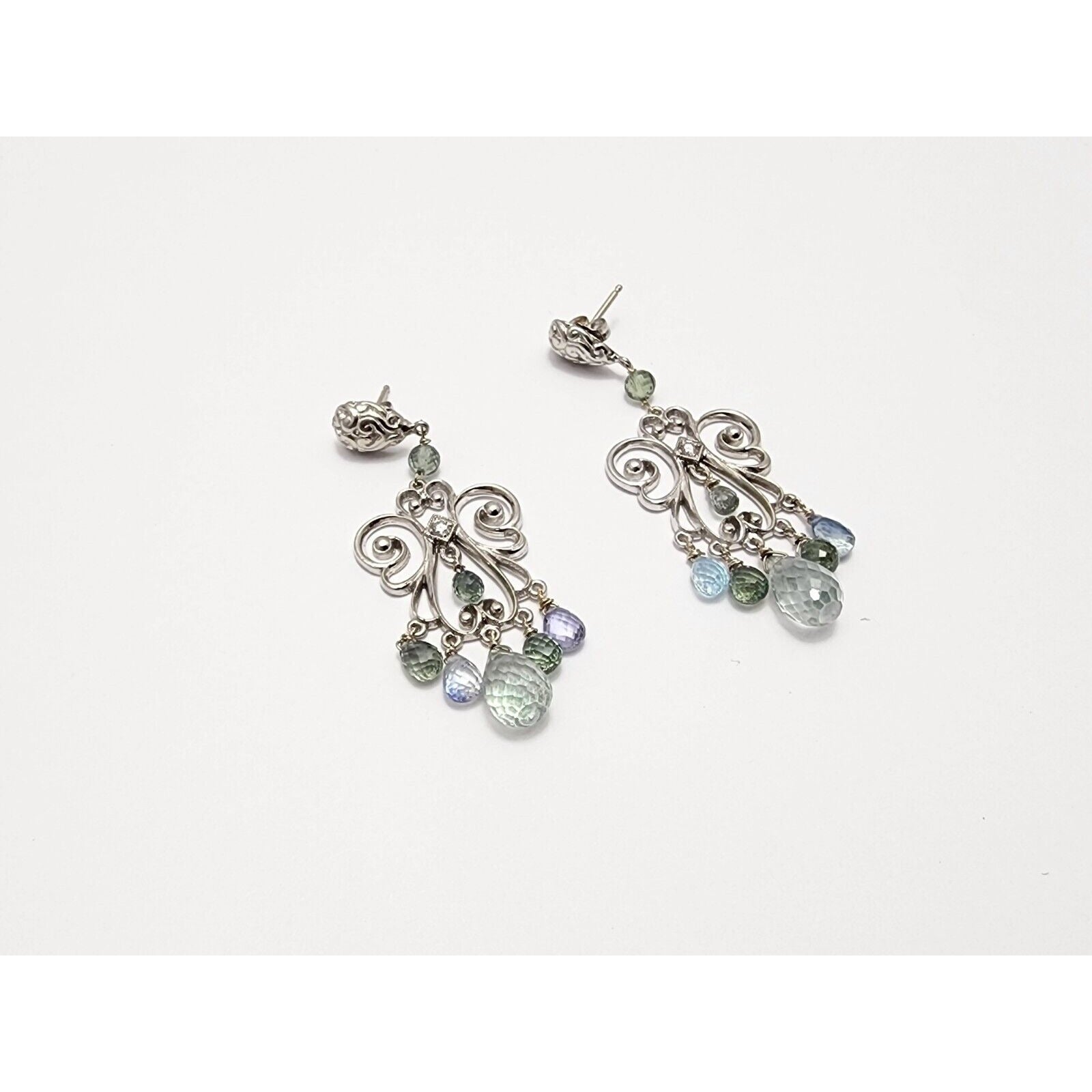 14K White Gold Diamond & Multi Color Topaz Dangle Drop Stud Earrings