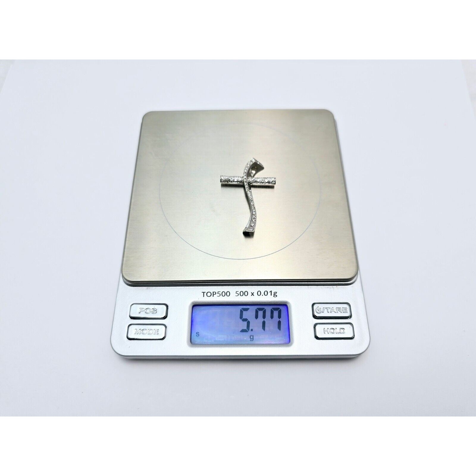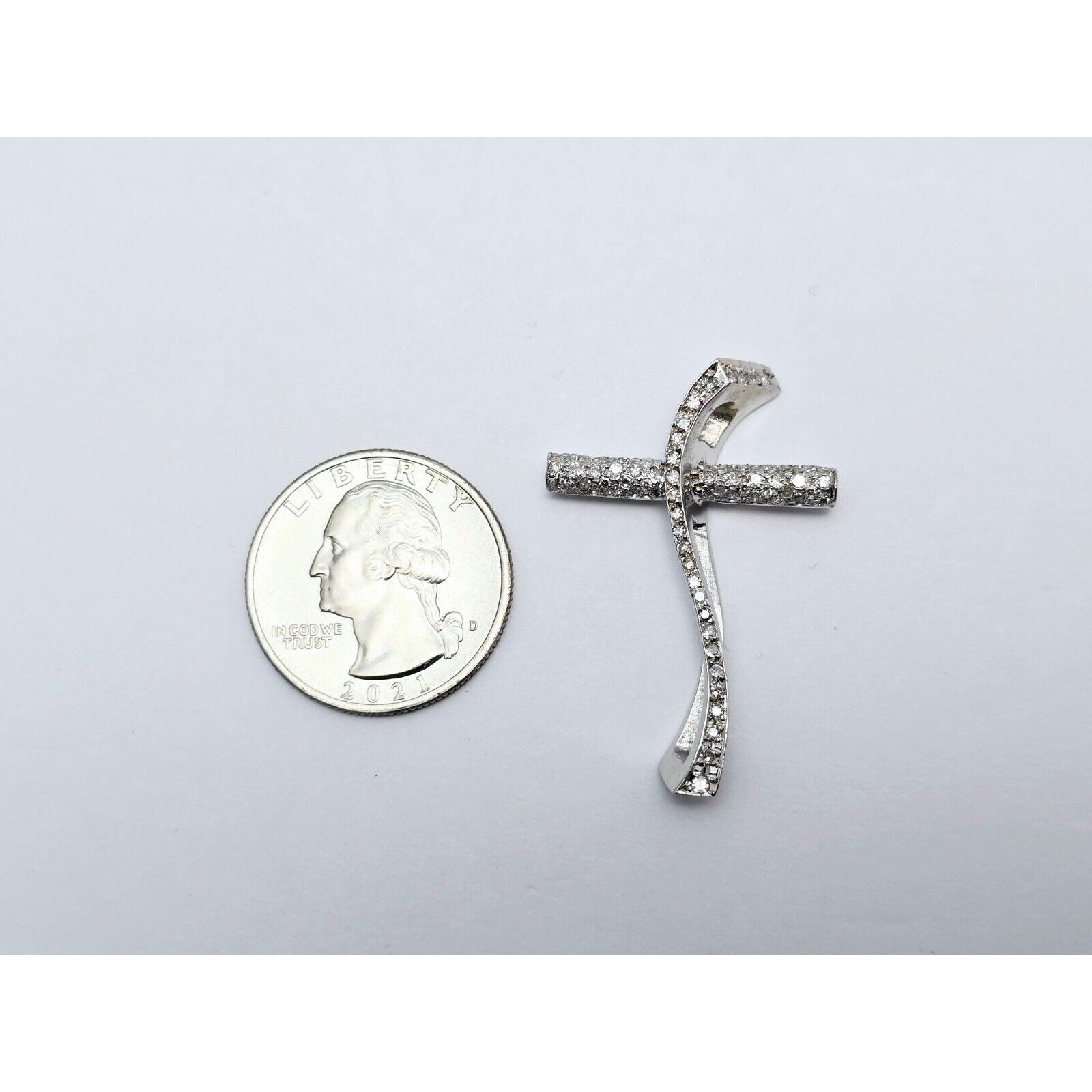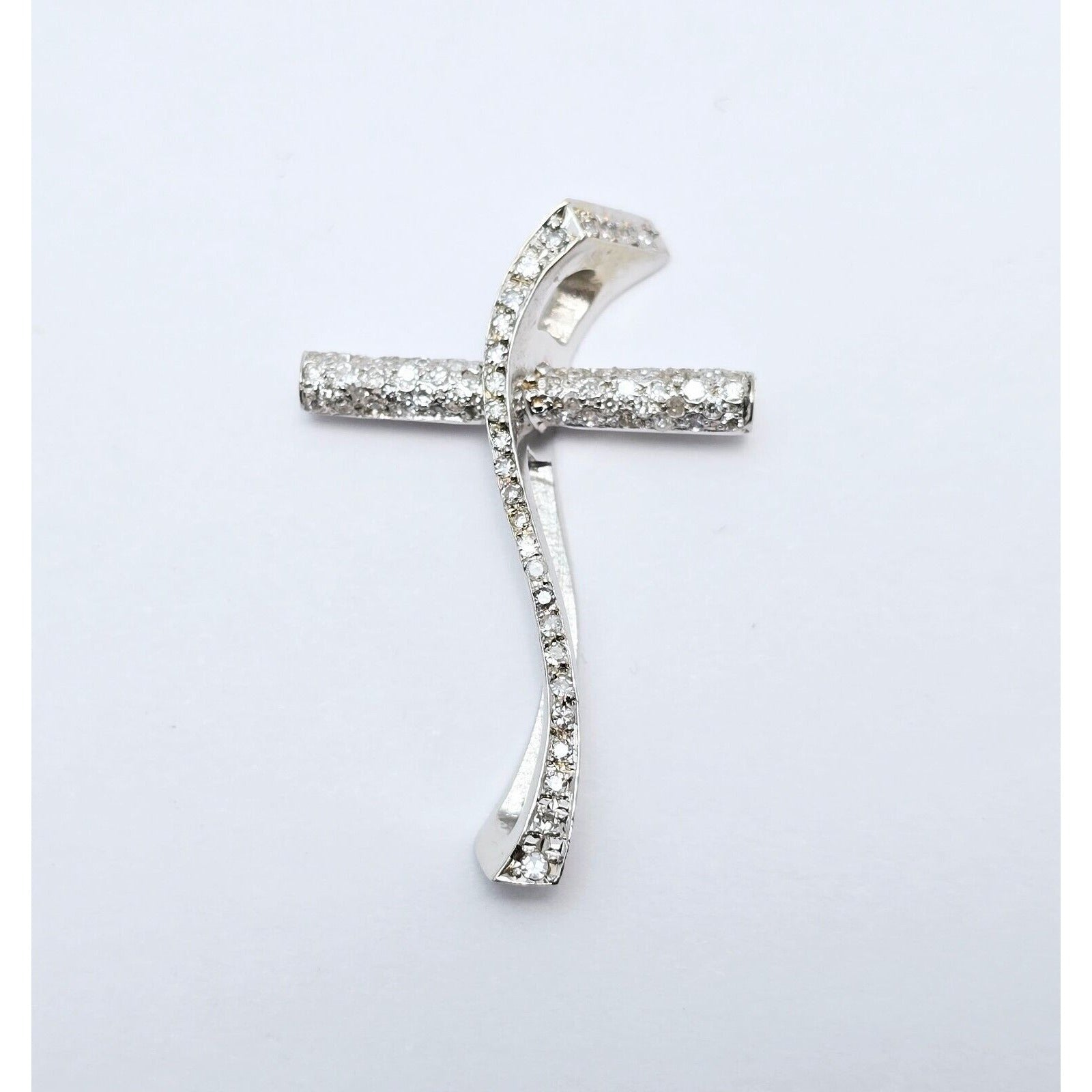 14K White Gold Diamond Wavy Cross Pendant Charm