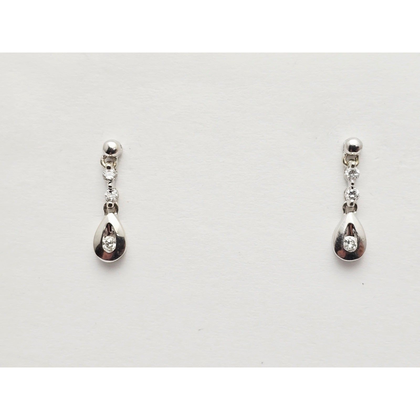 14K White Gold Drop Dangle Diamond Teardrop Stud Earrings