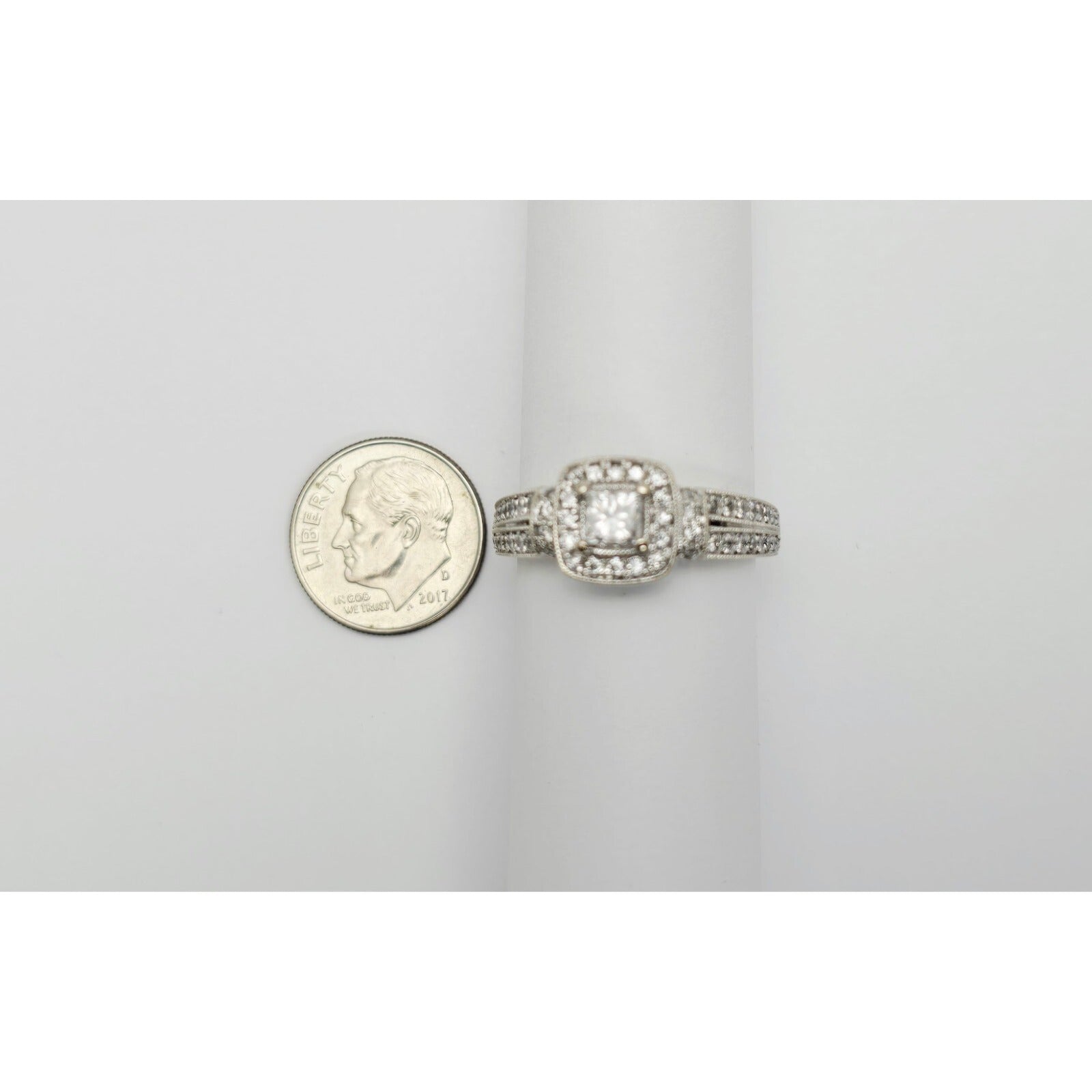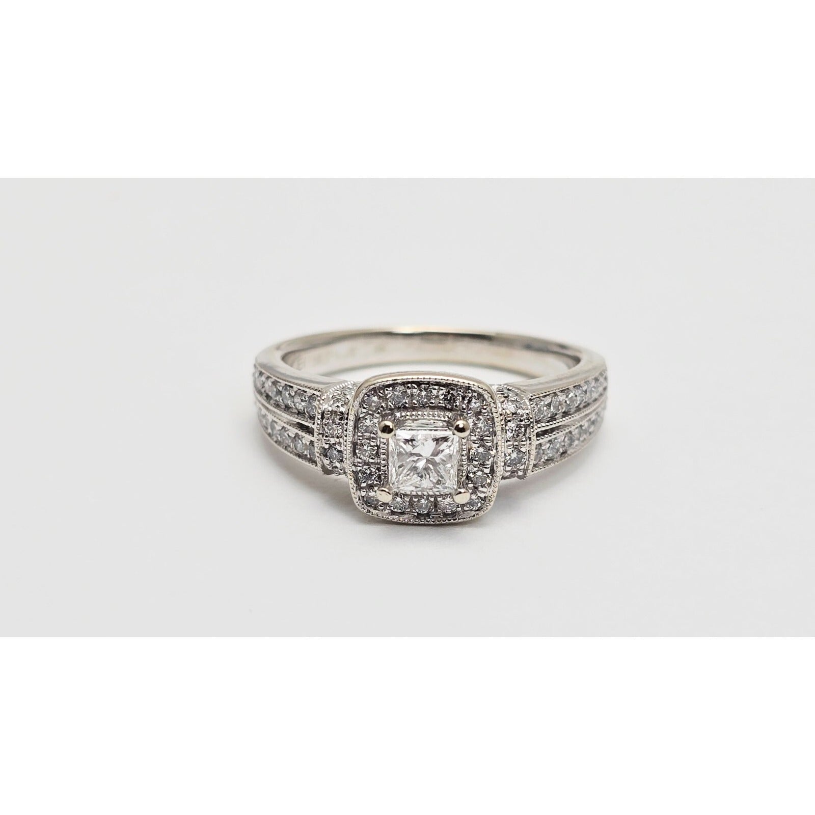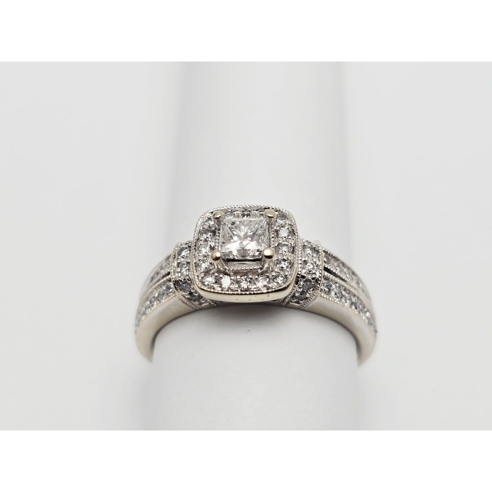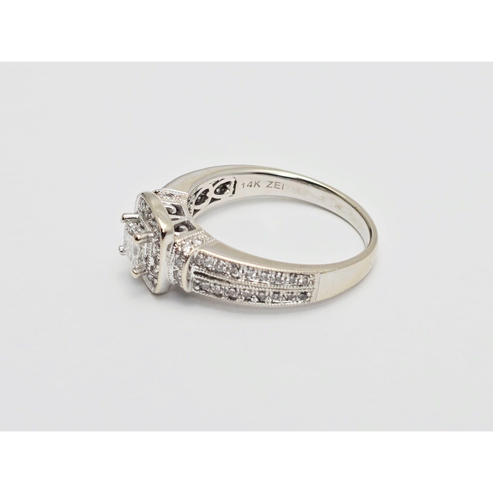 14K White Gold Ladies Diamond Halo Engagement Ring