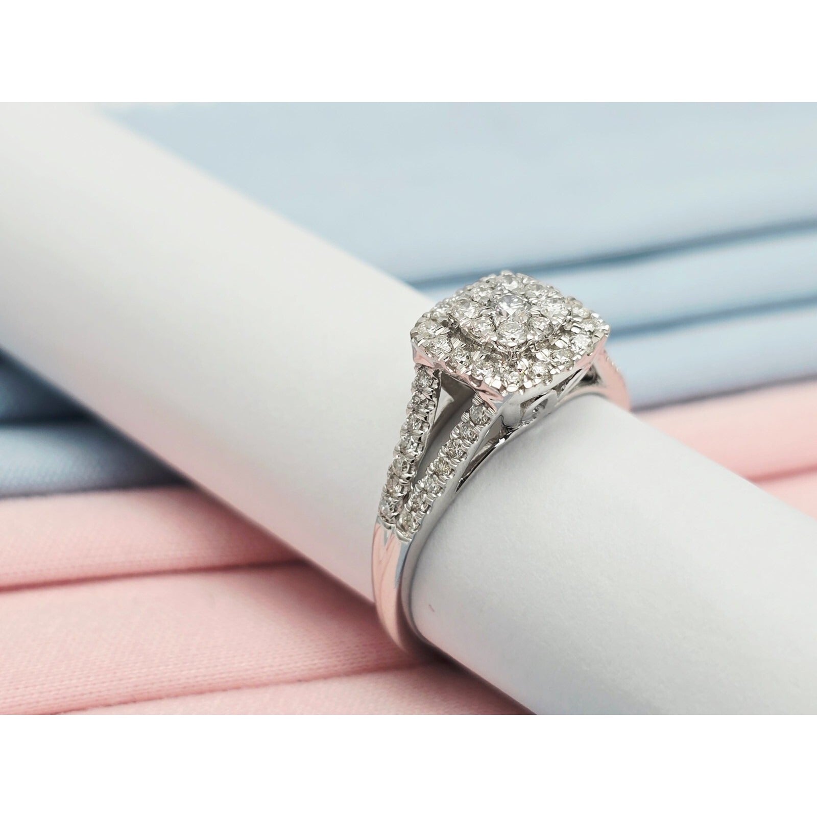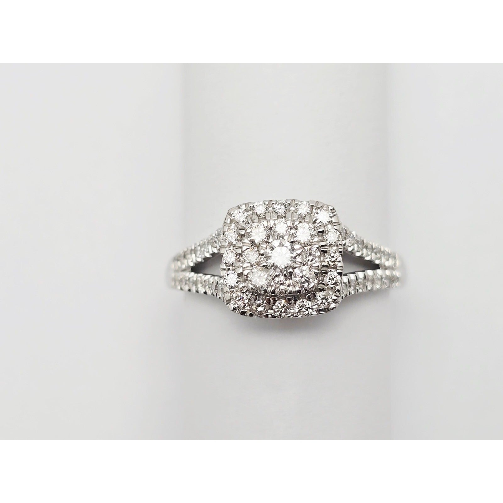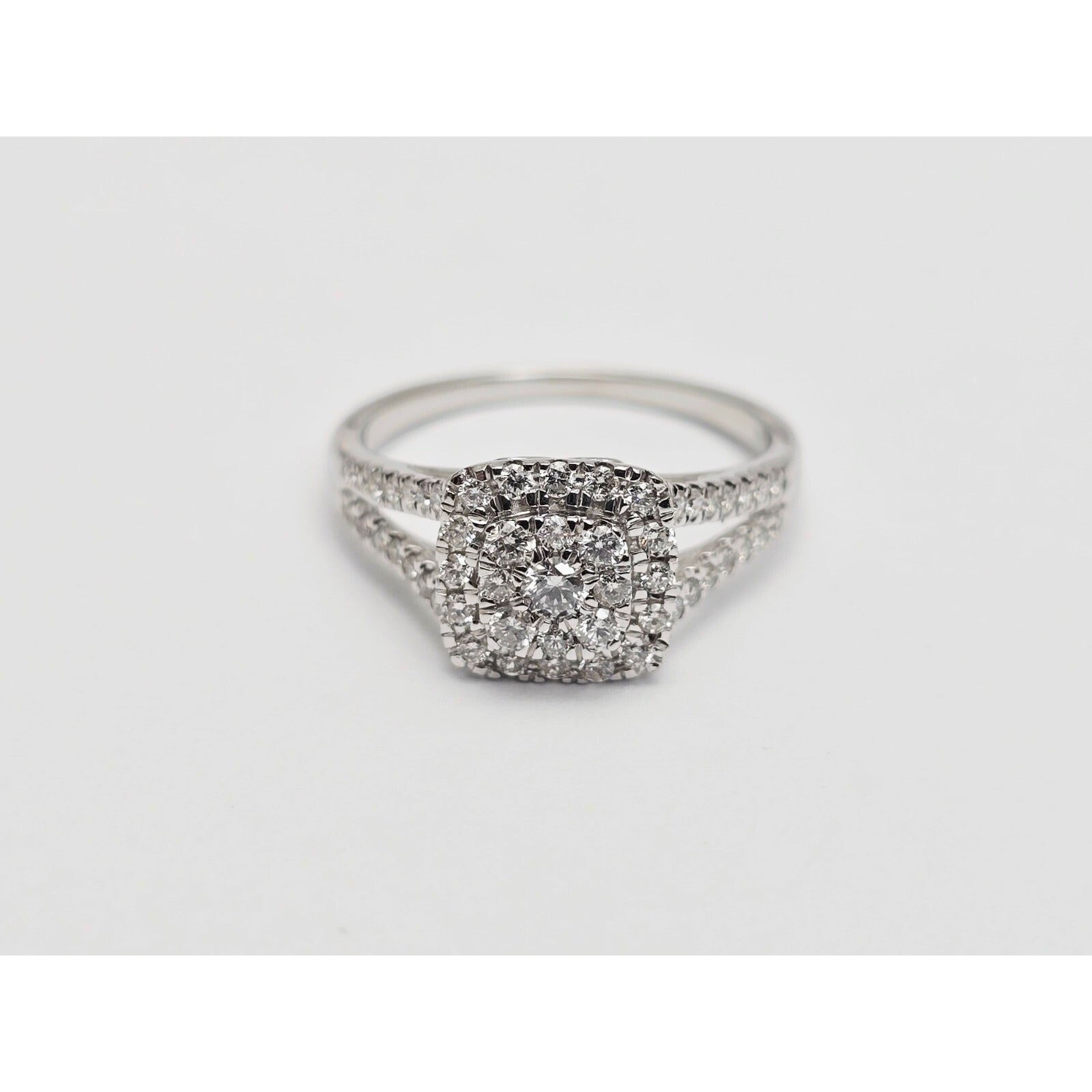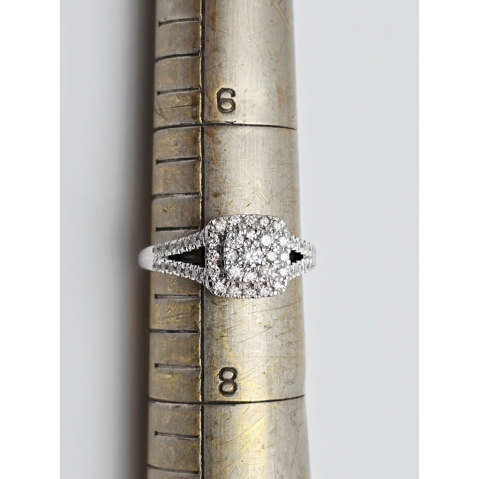 14K White Gold Ladies Diamond Halo Engagement Ring