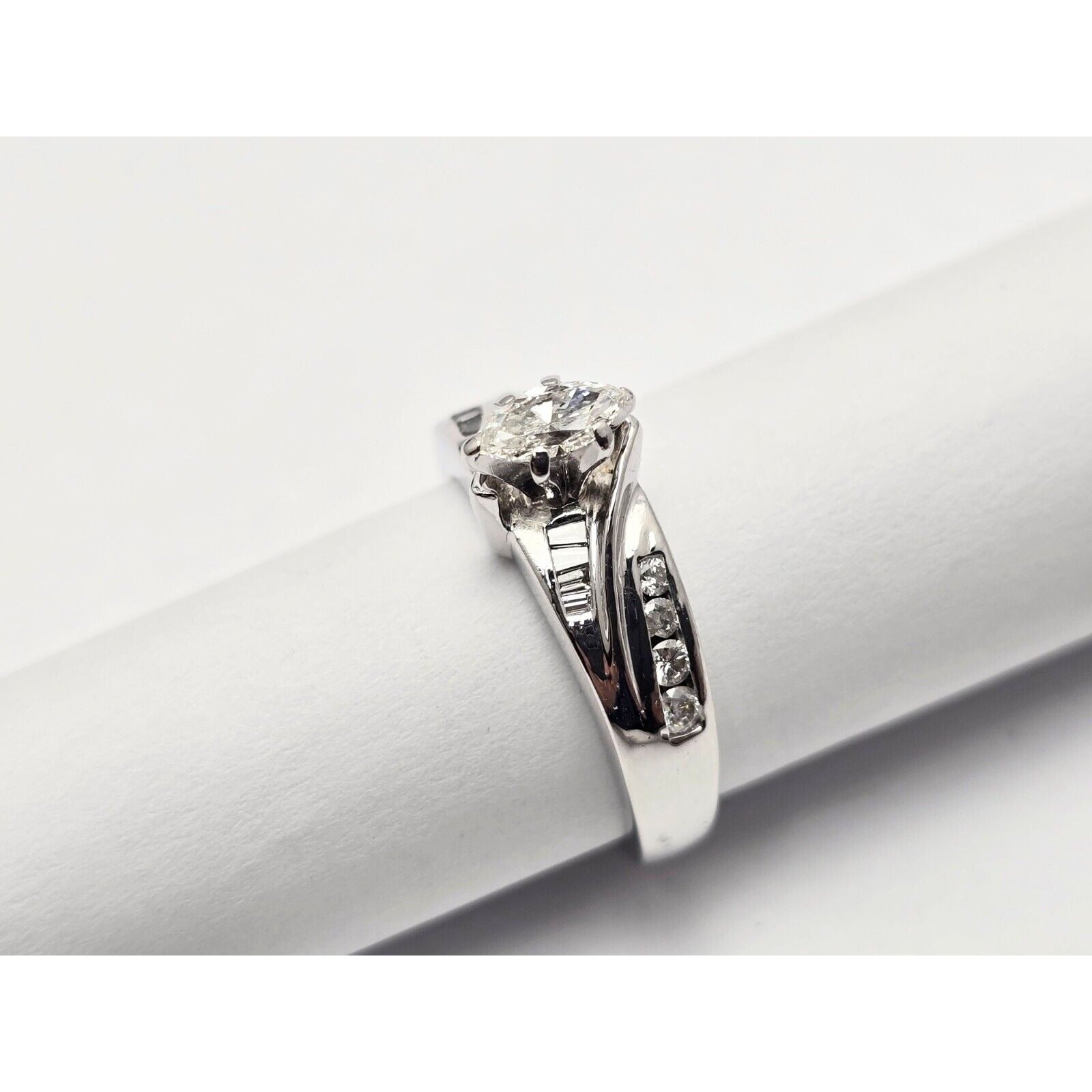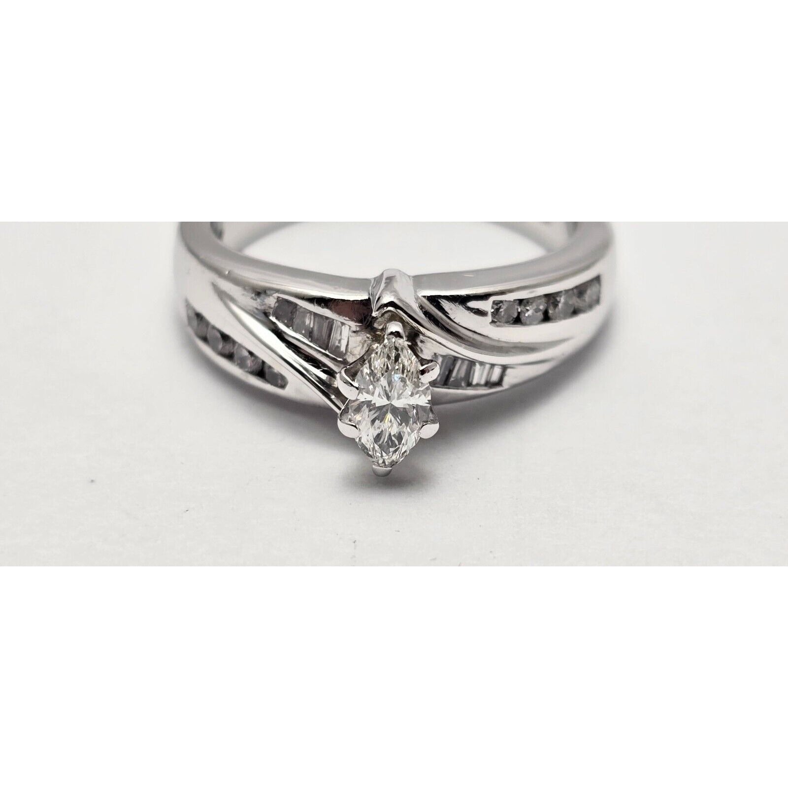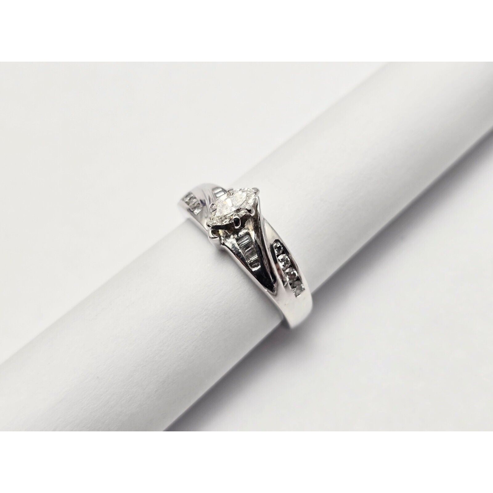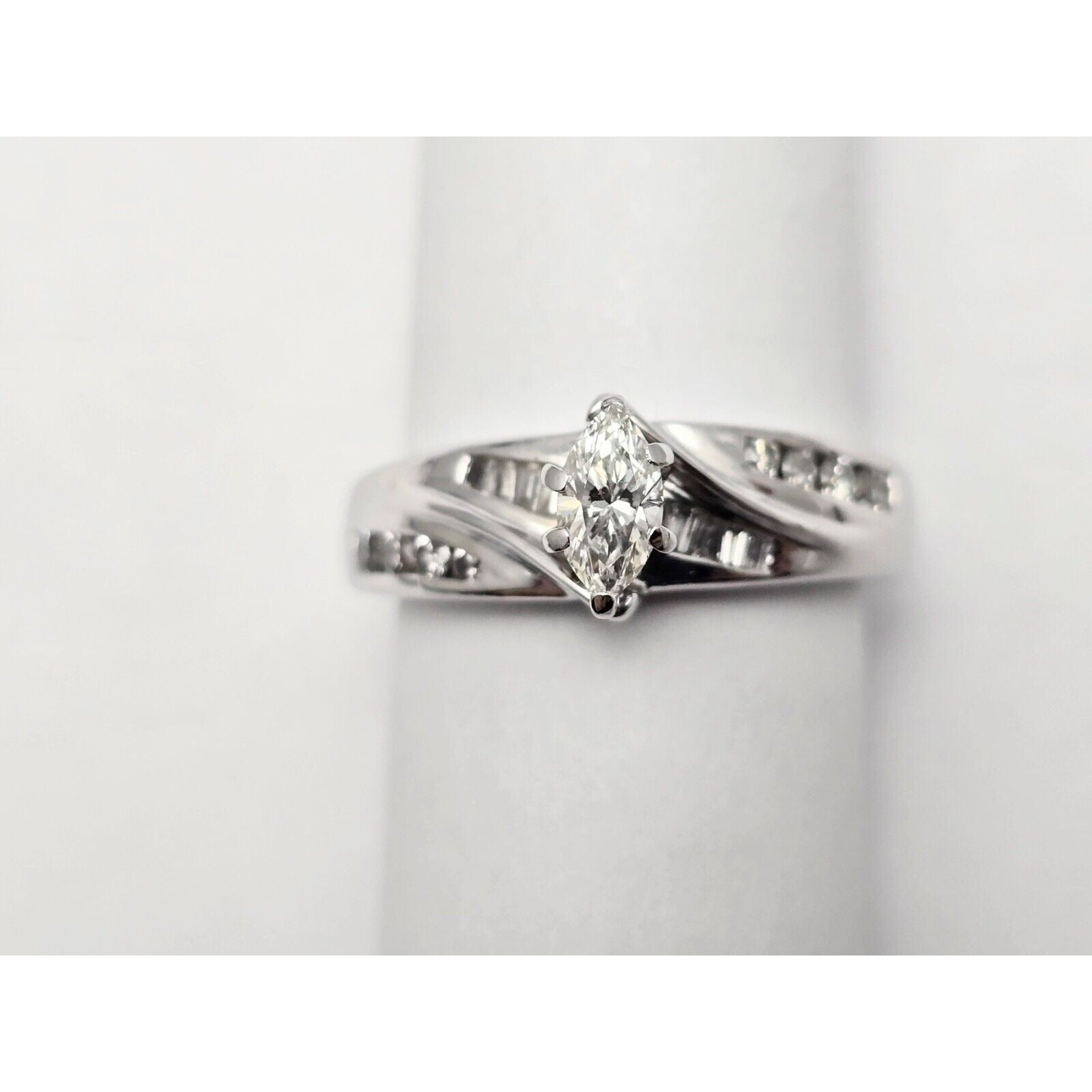 14K White Gold Ladies Marquise Diamond Engagement Ring