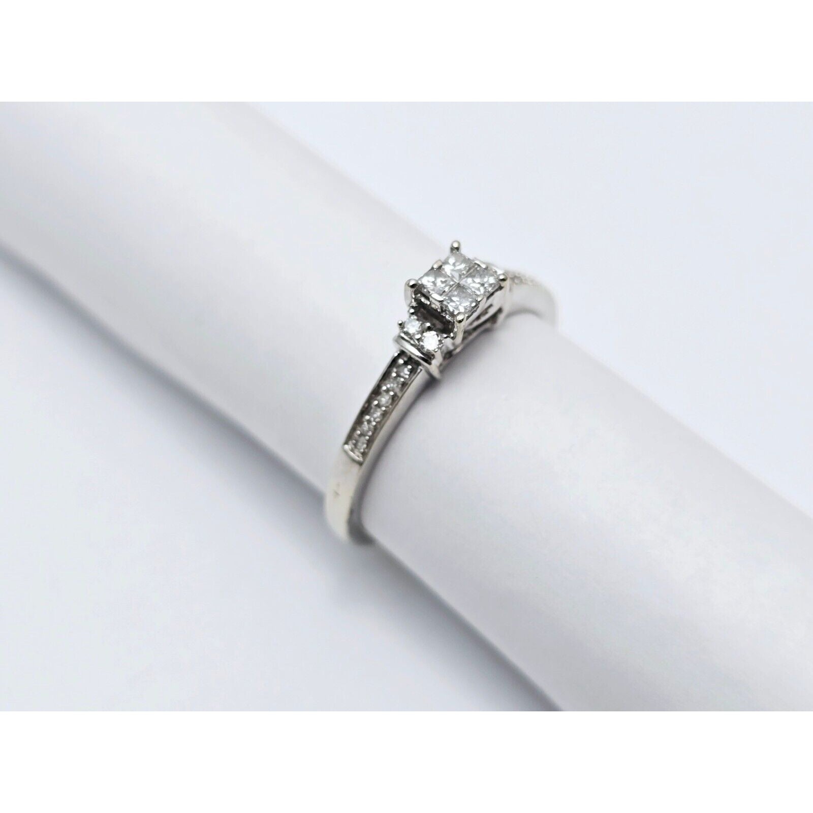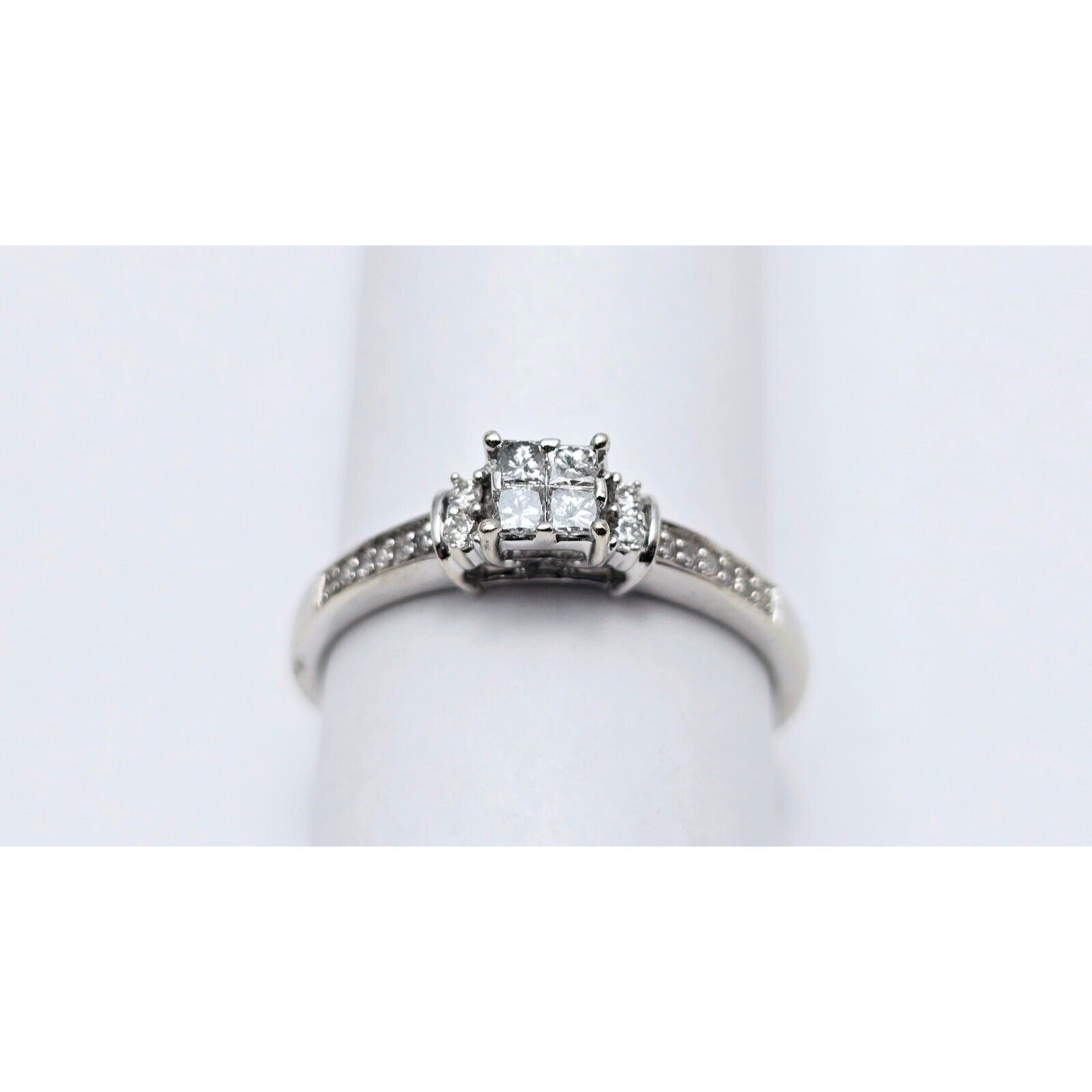 14K White Gold Ladies Princess Cut Diamond Engagement Ring
