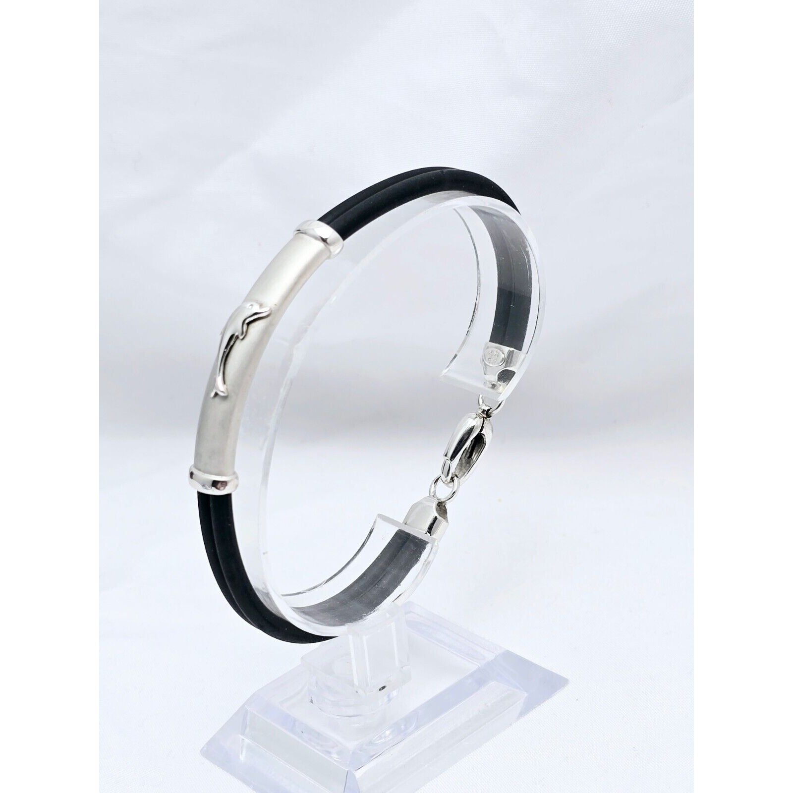14K White Gold Matte & Polished Finish Rubber Bracelet