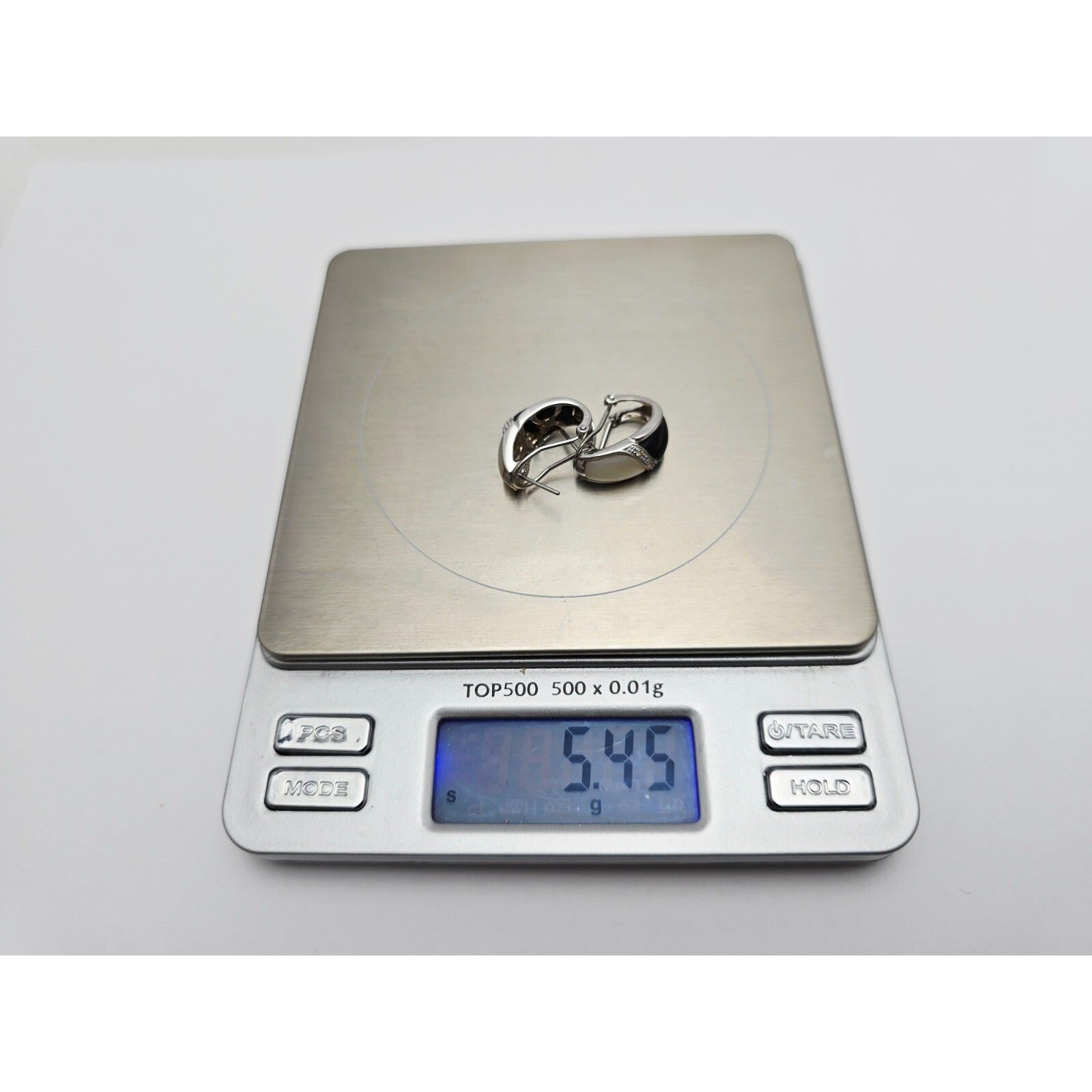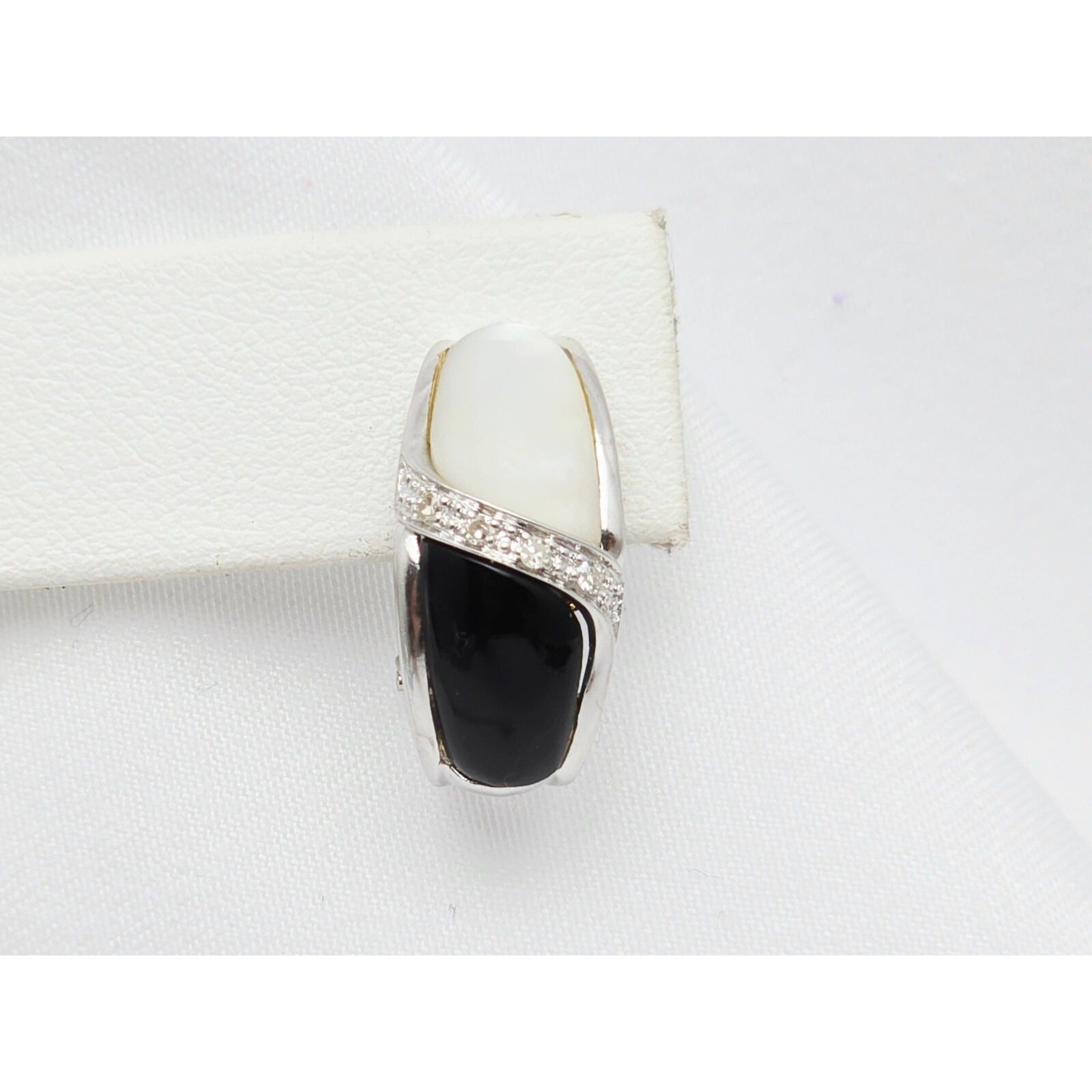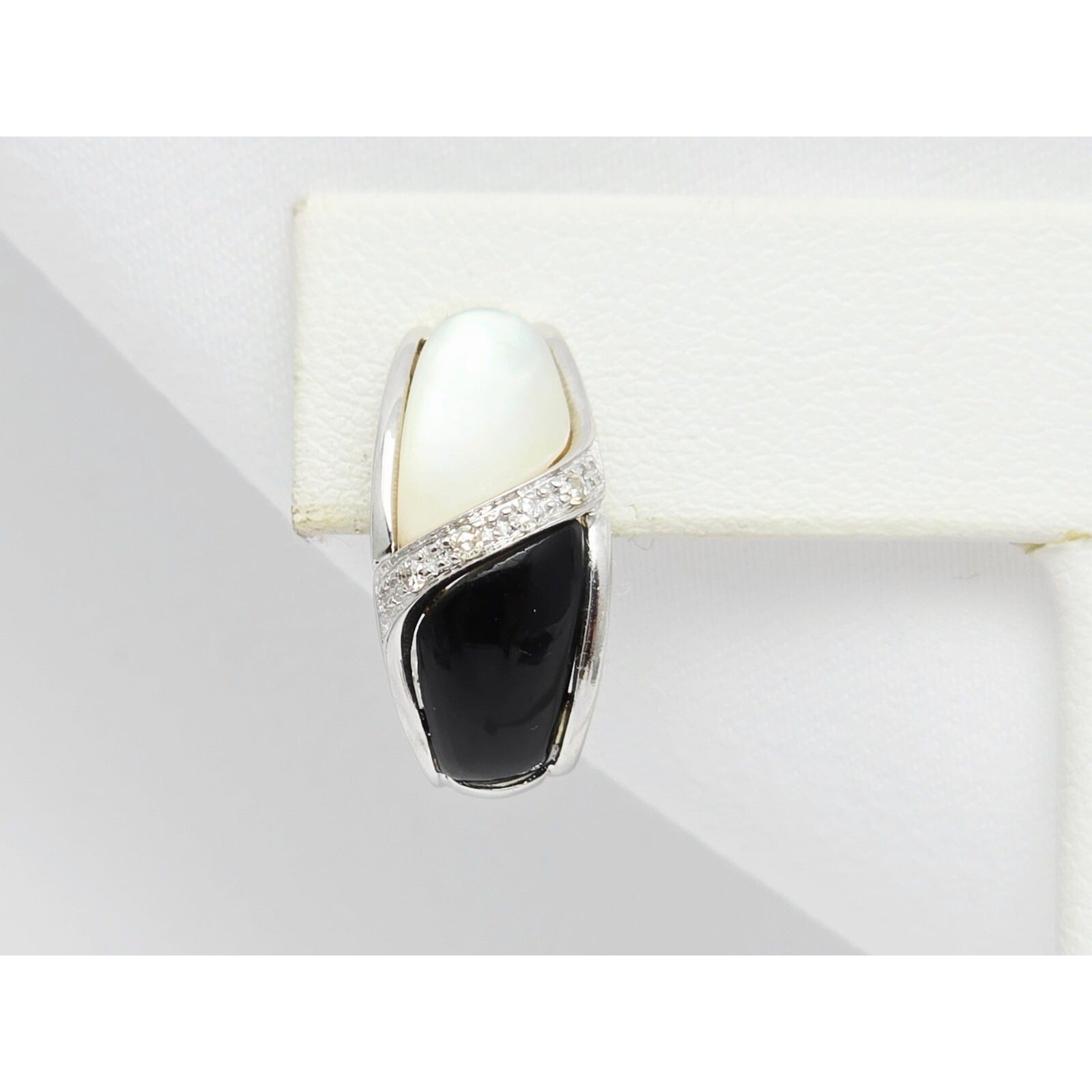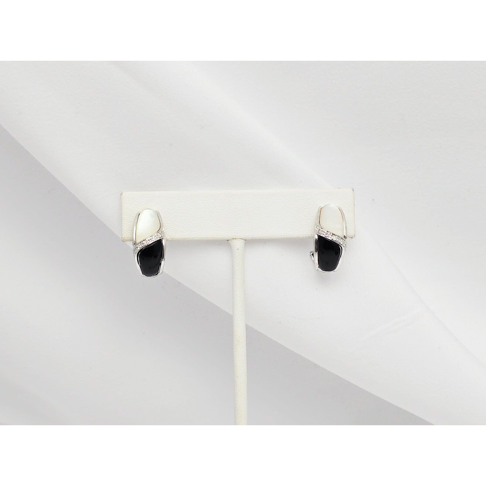14K White Gold Mother of Pearl, Onyx & Diamond French Clip Earrings