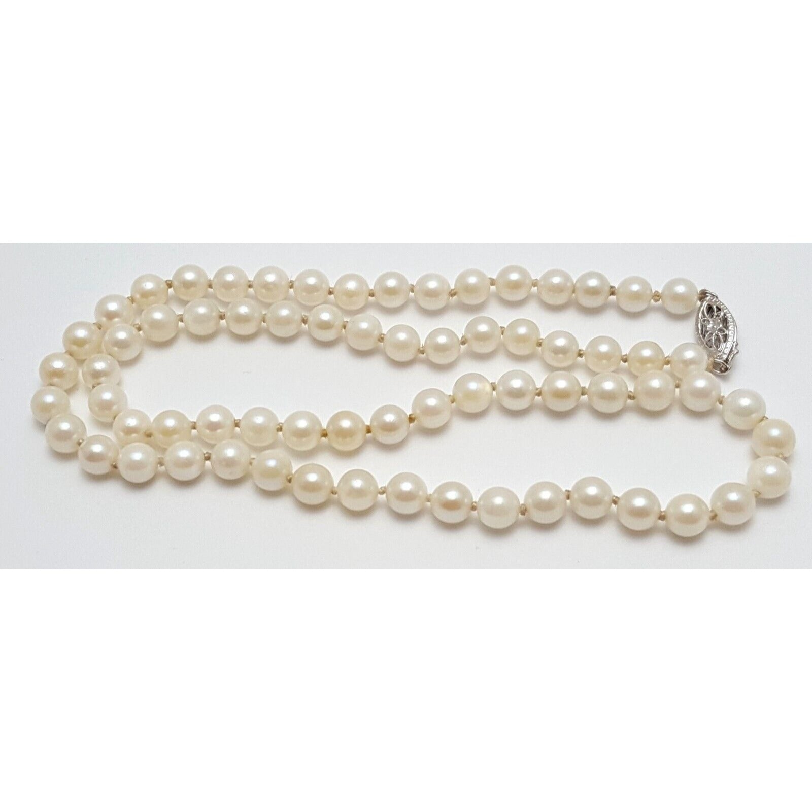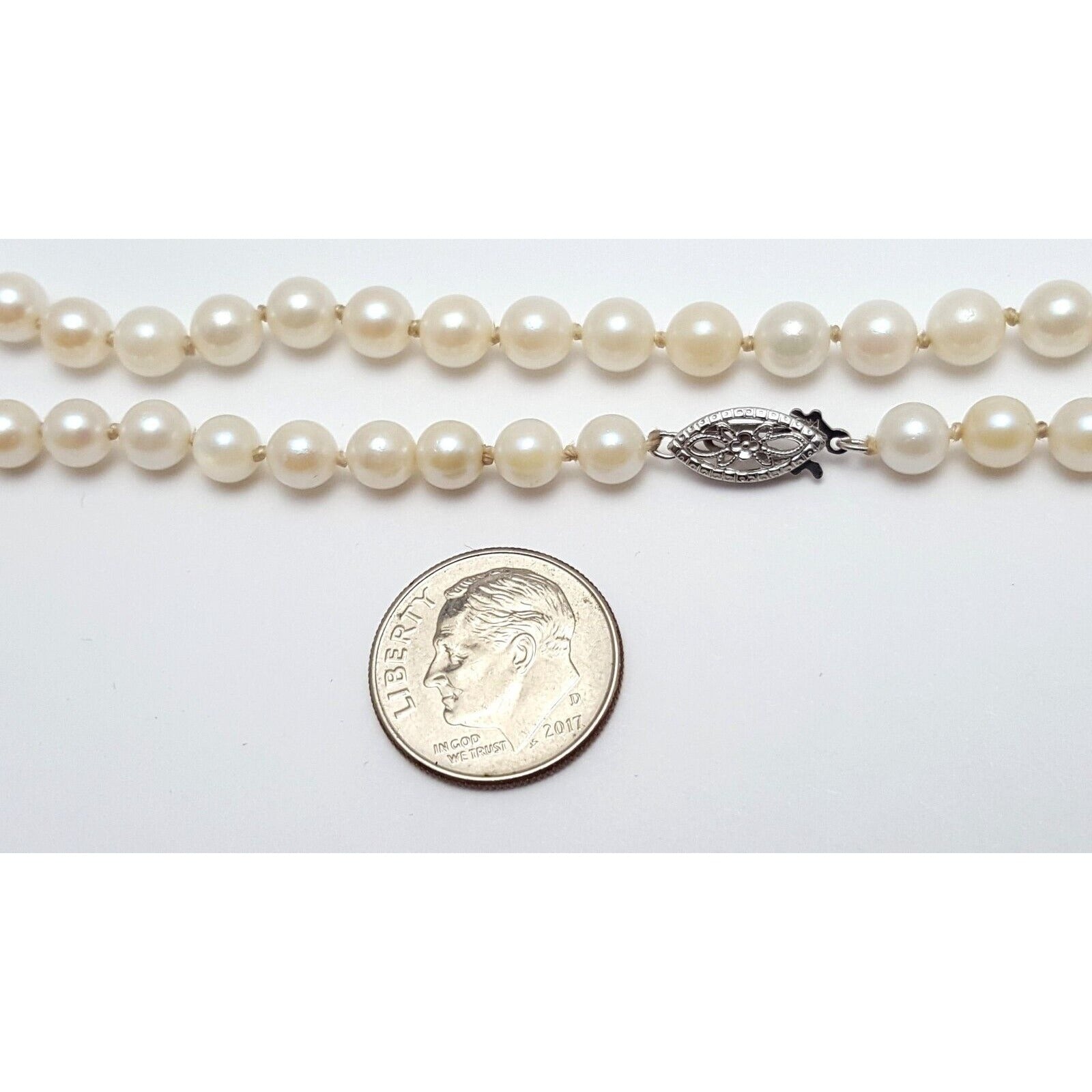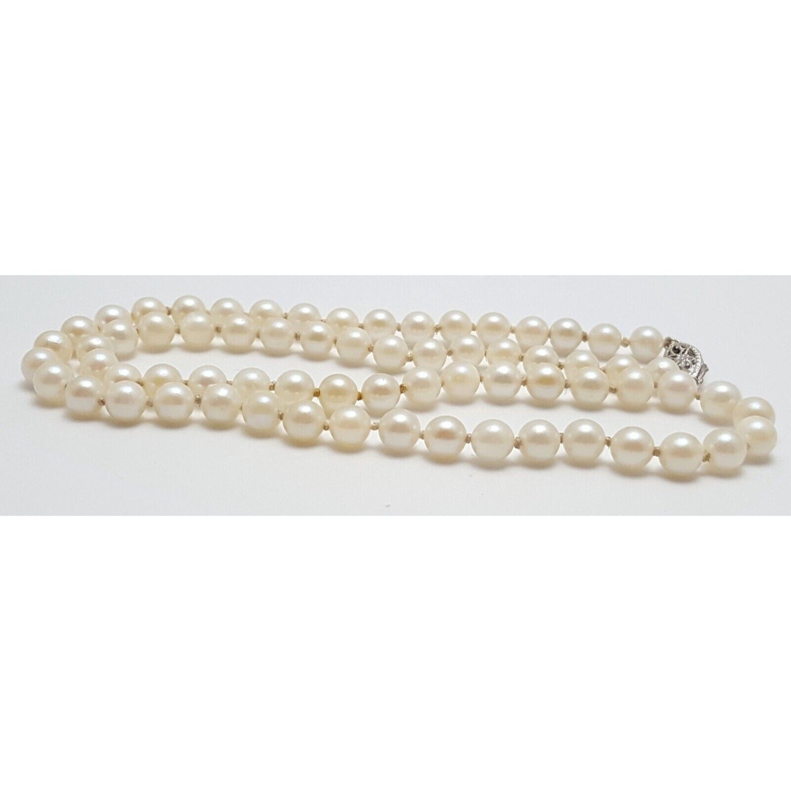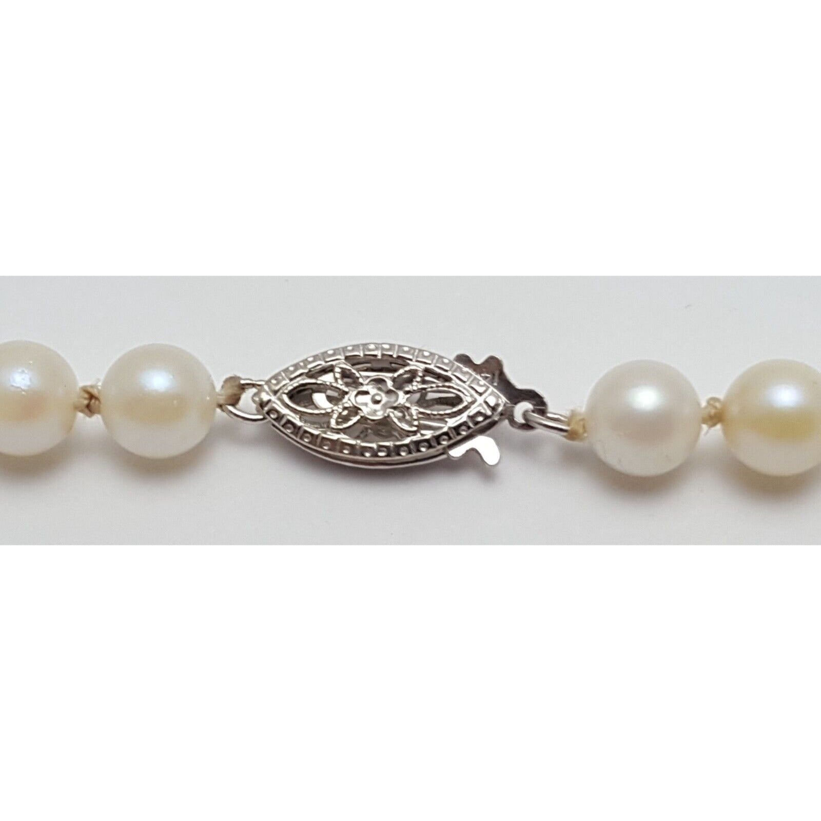 14K White Gold Pearl Choker Bead Ball Necklace