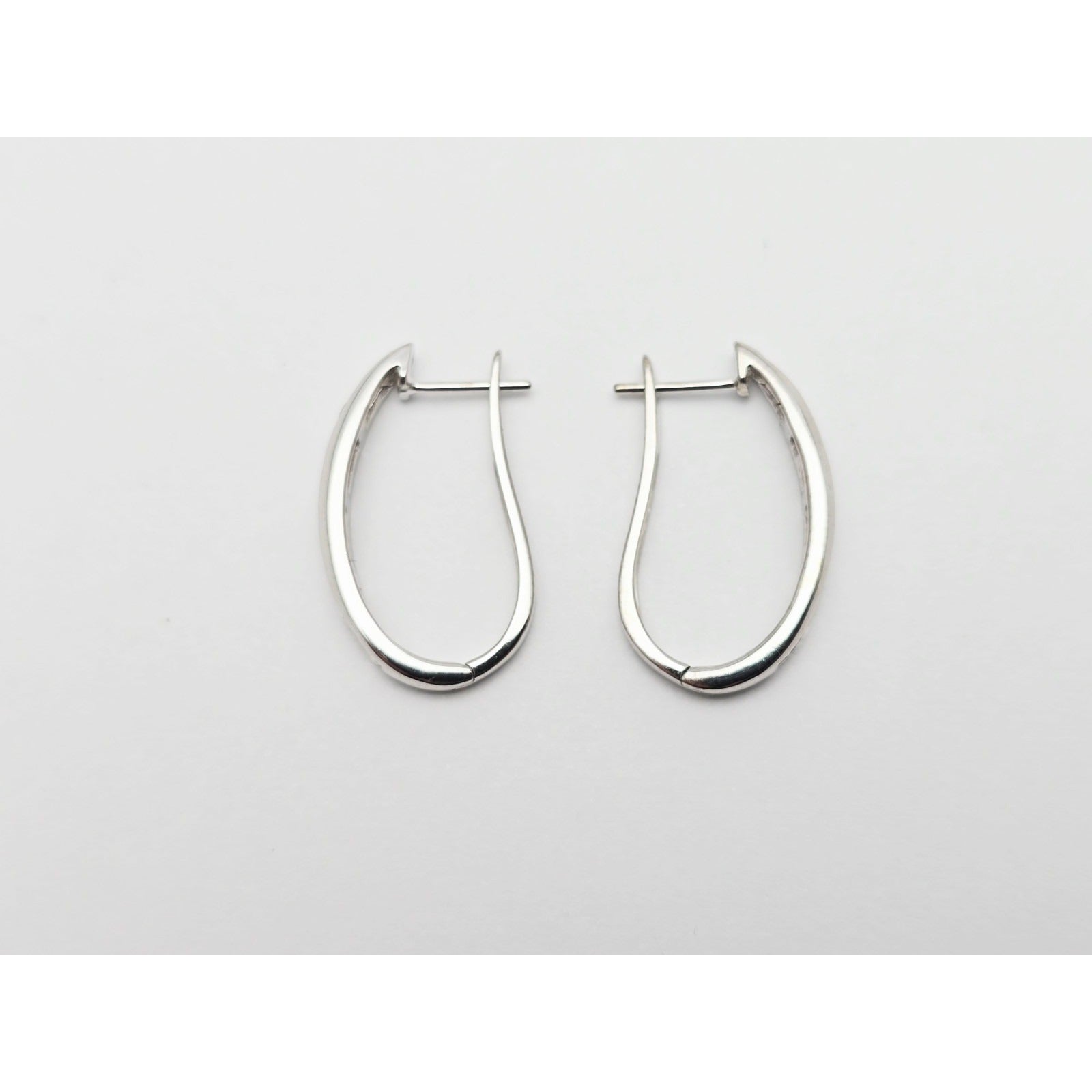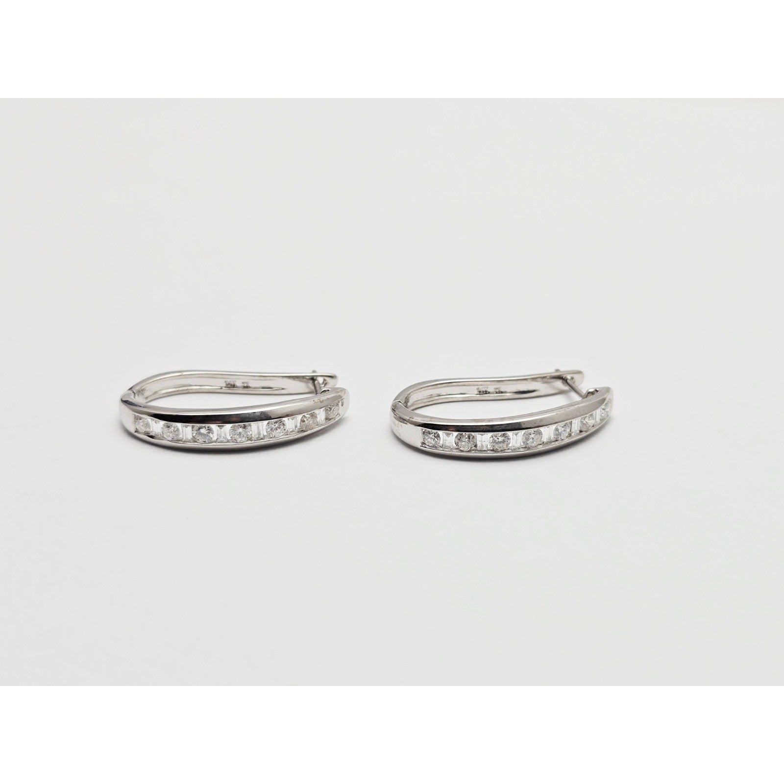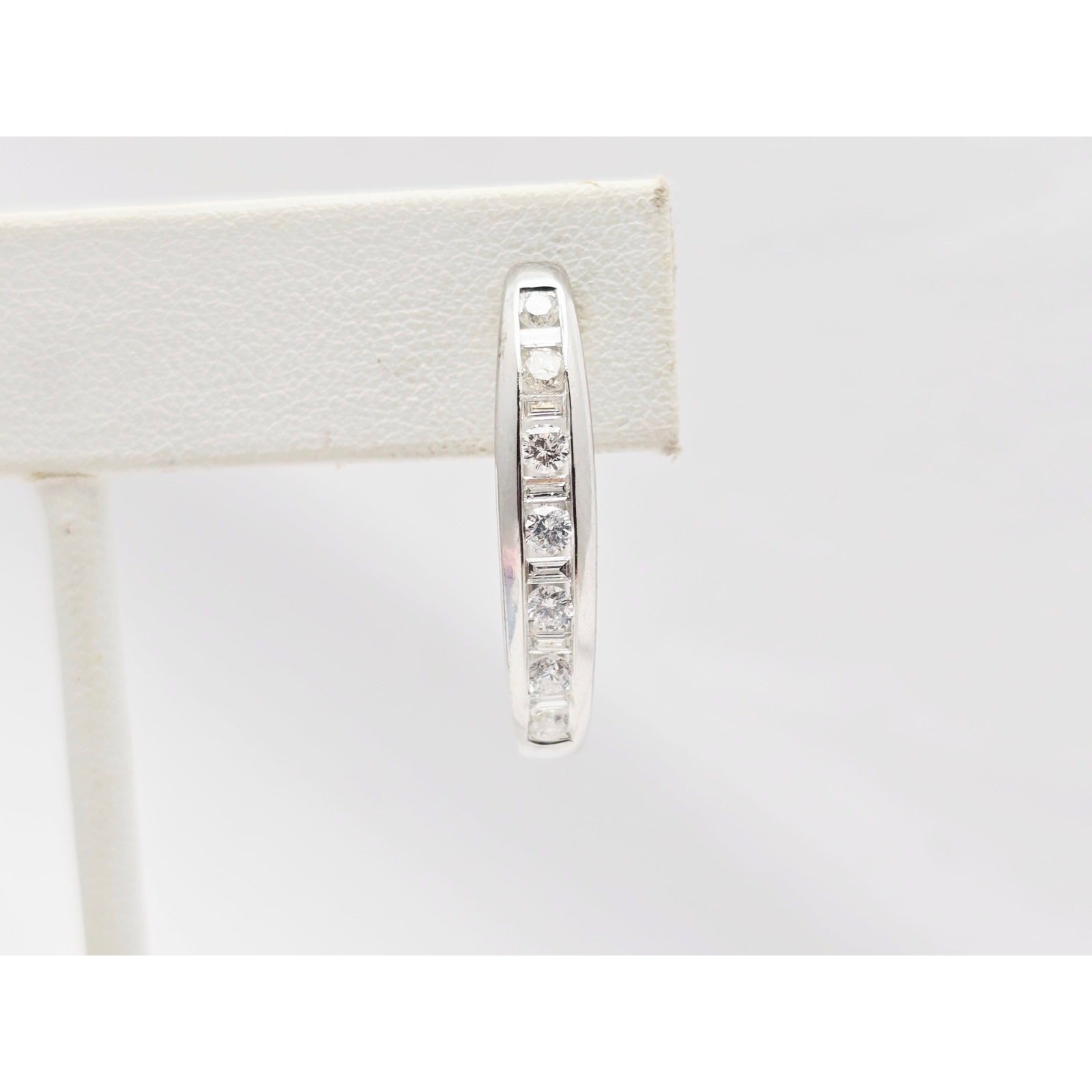 14K White Gold Round & Baguette Diamond Hinged Oval Hoop Earrings