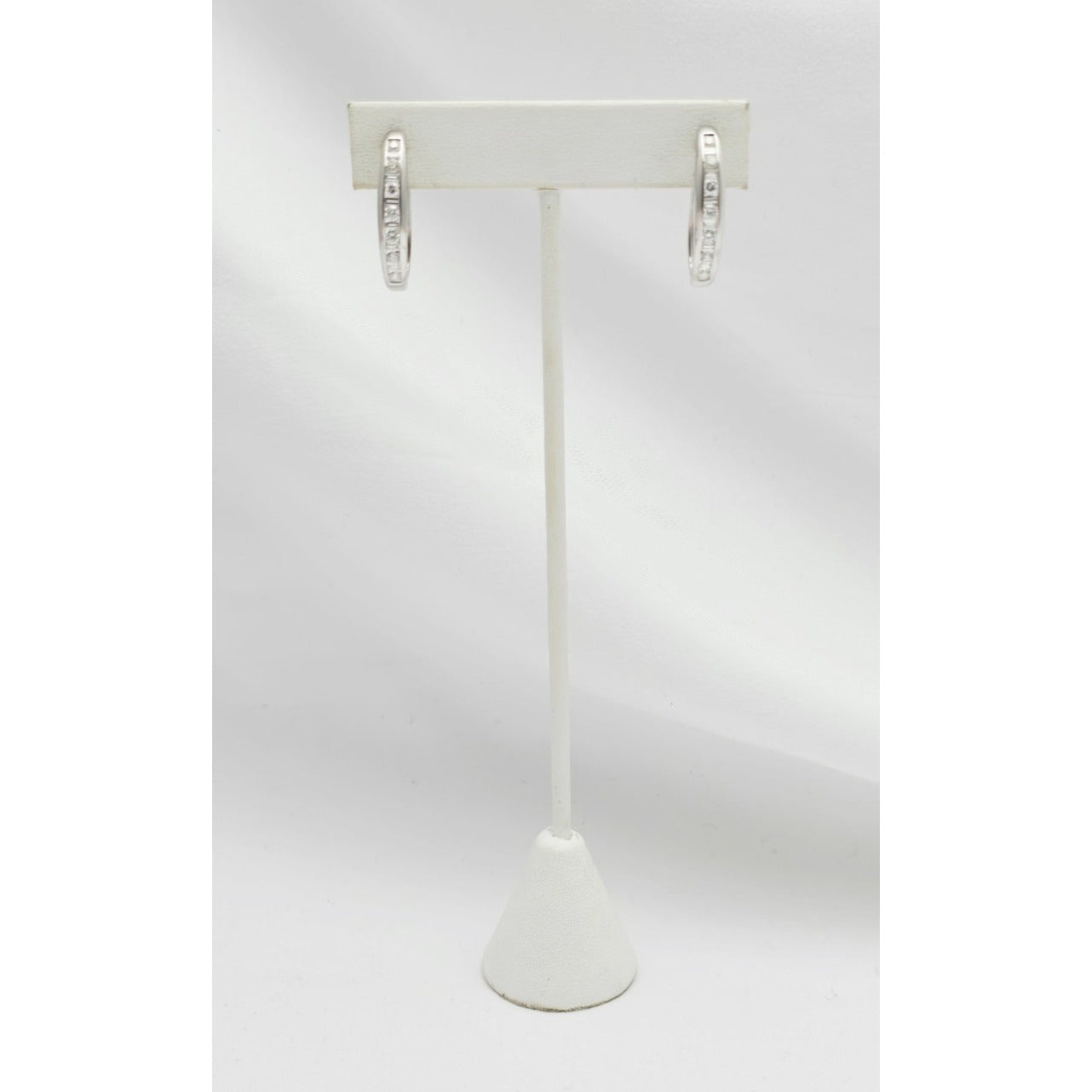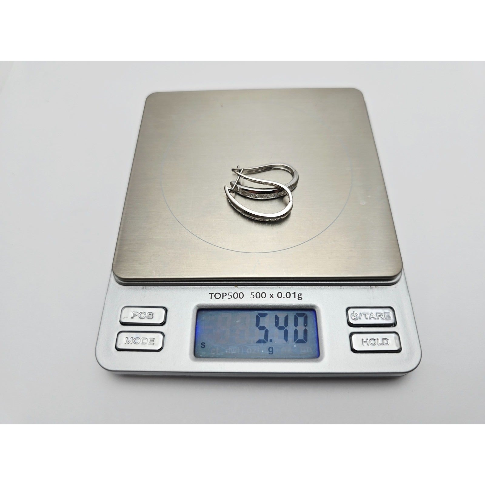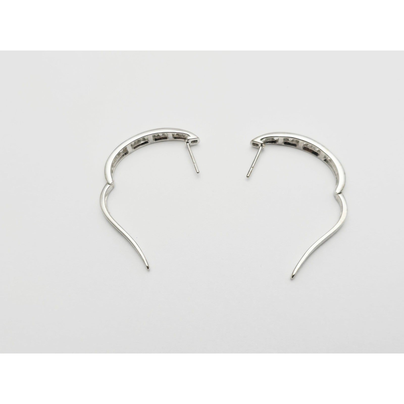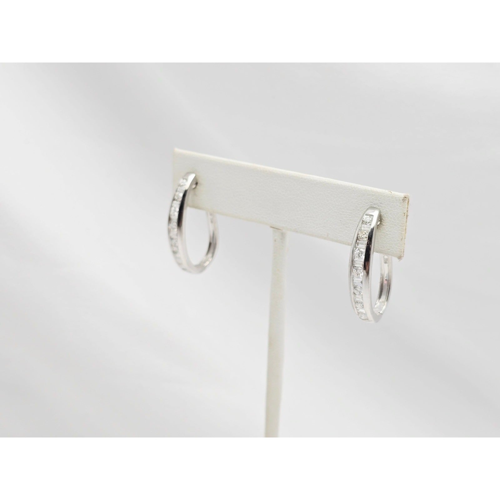 14K White Gold Round & Baguette Diamond Hinged Oval Hoop Earrings