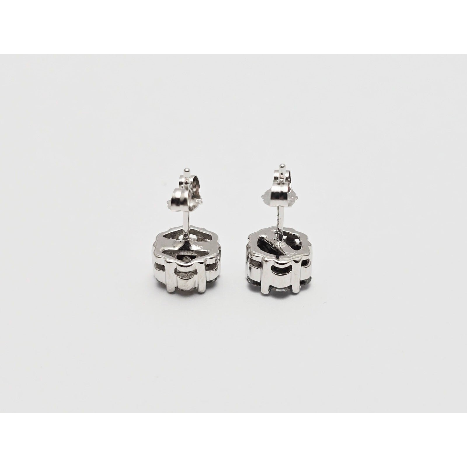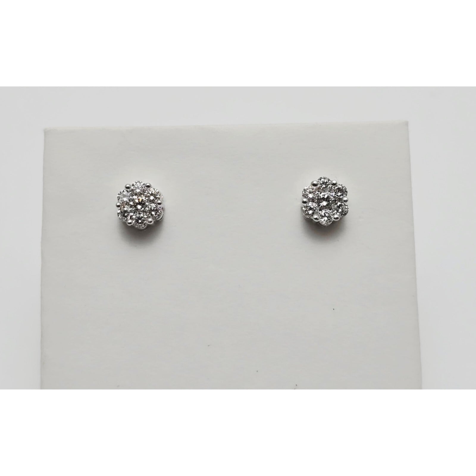 14K White Gold Round Cut Diamond Flower Stud Earrings