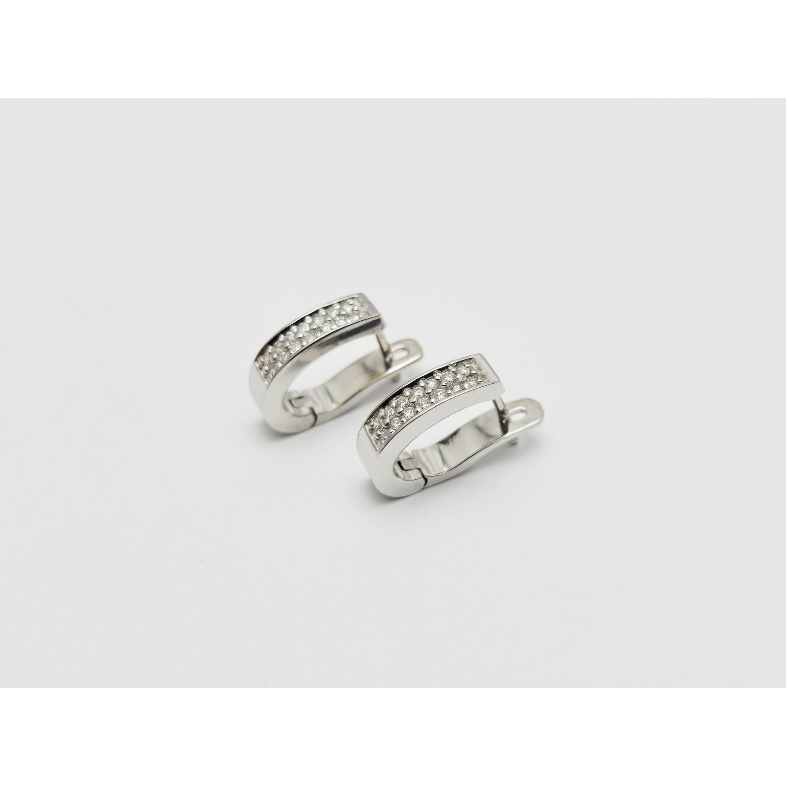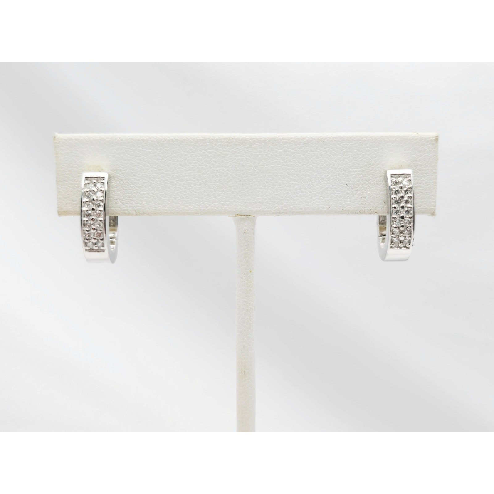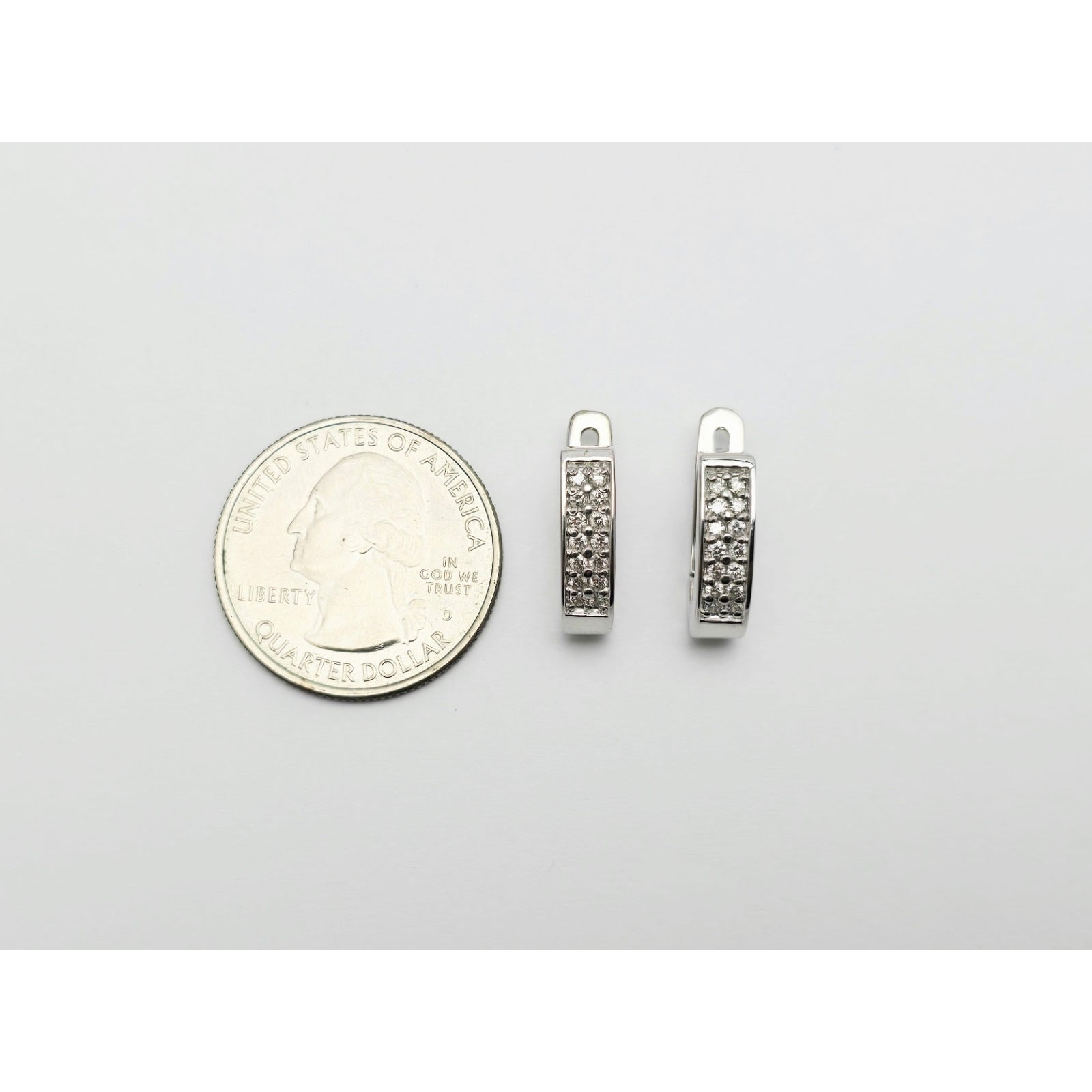 14K White Gold Round Diamond Hinged Half Hoop Earrings