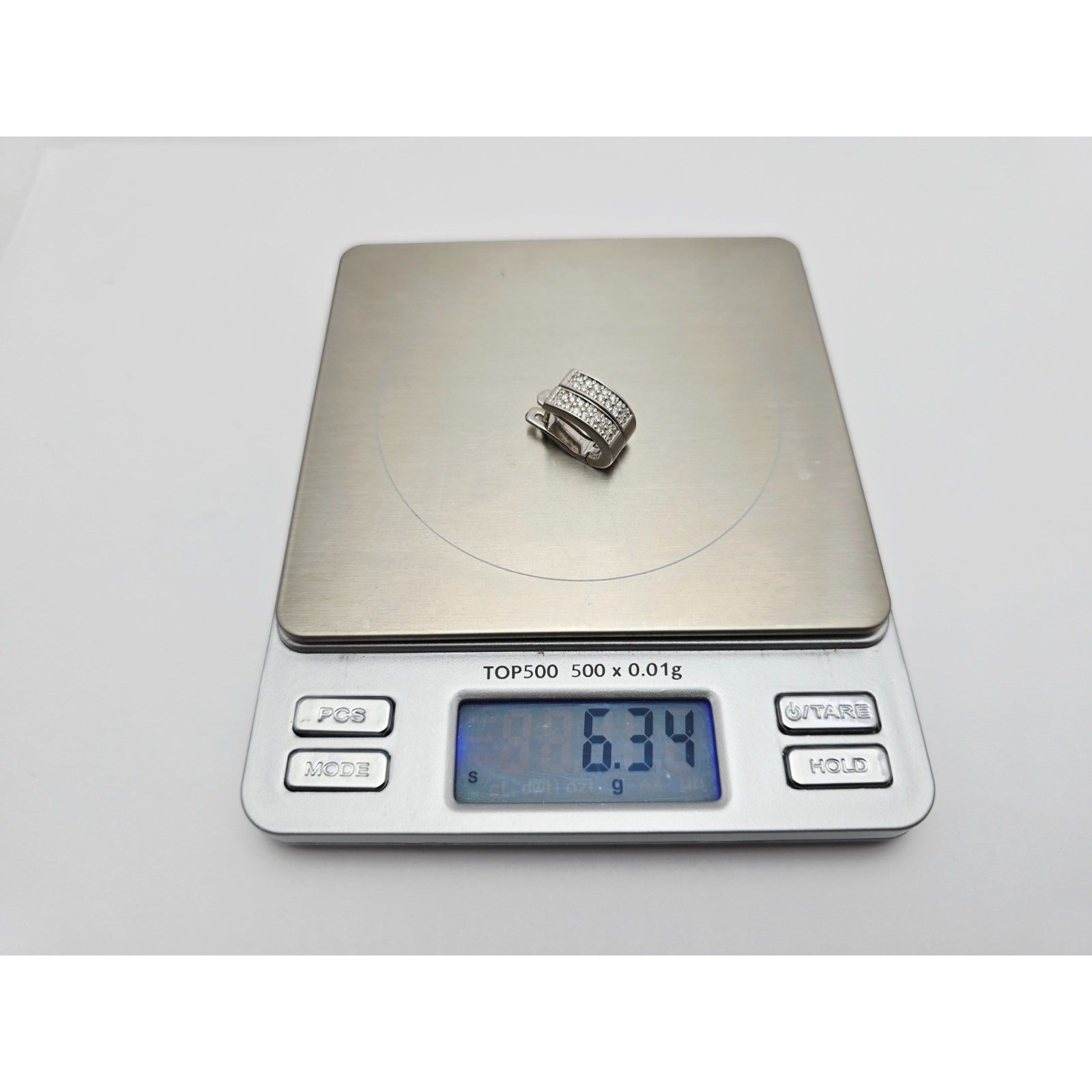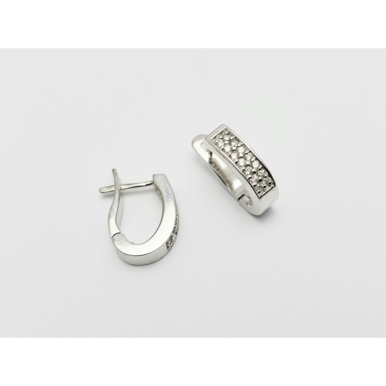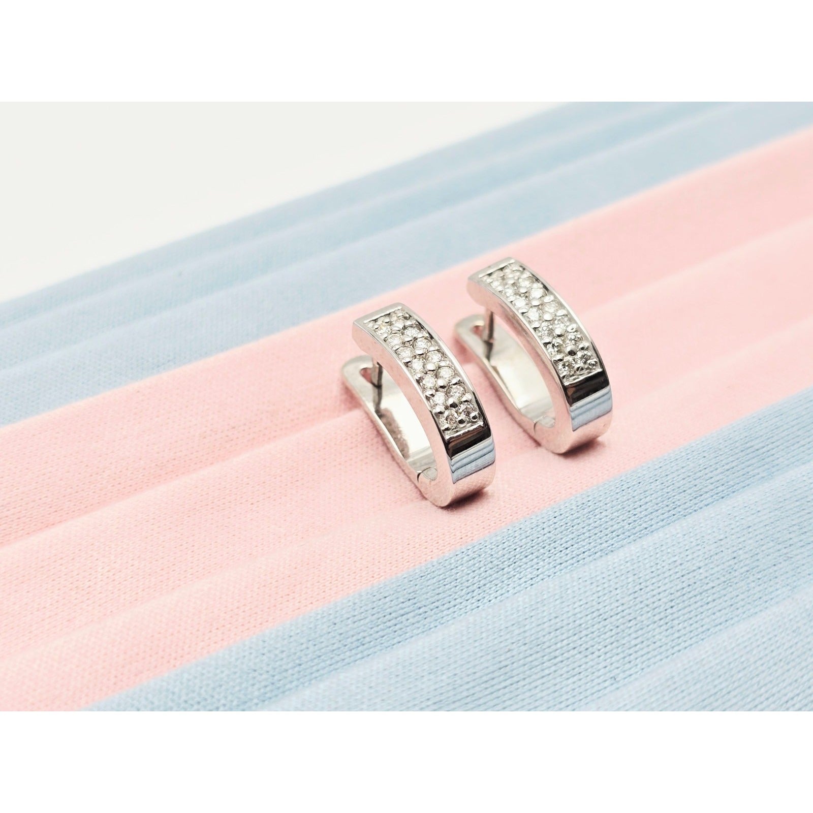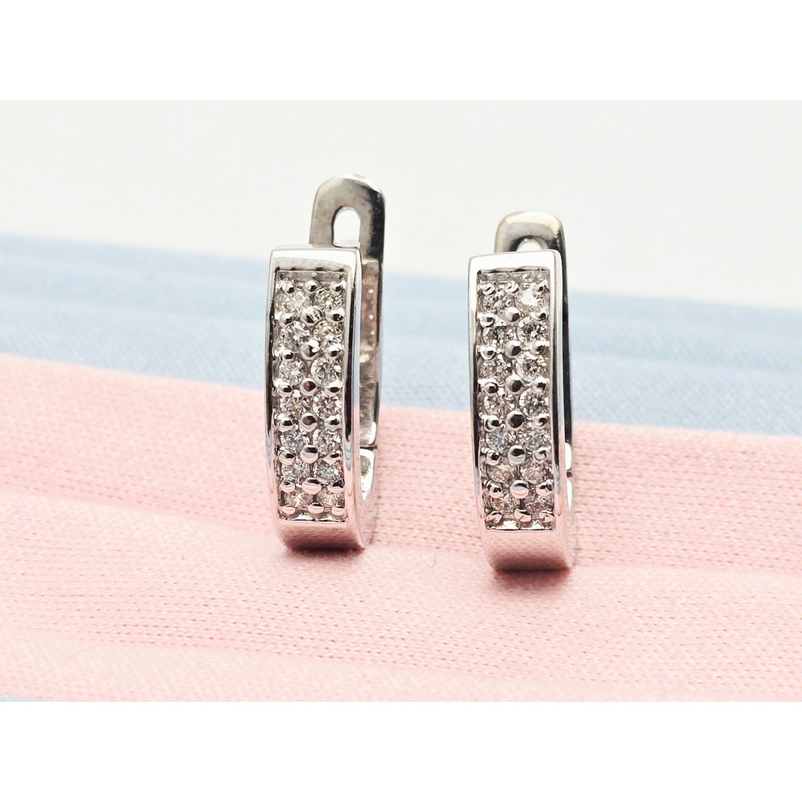 14K White Gold Round Diamond Hinged Half Hoop Earrings