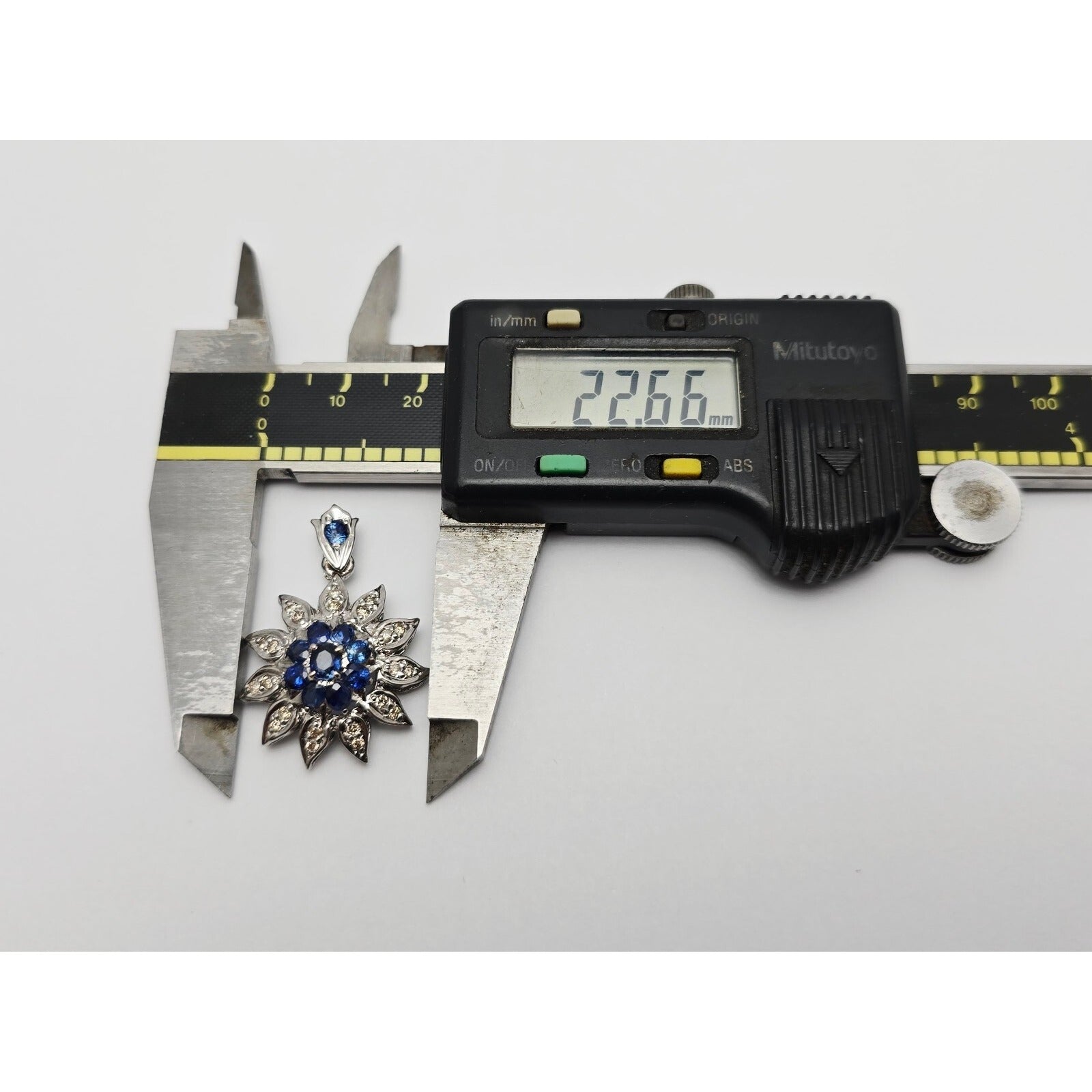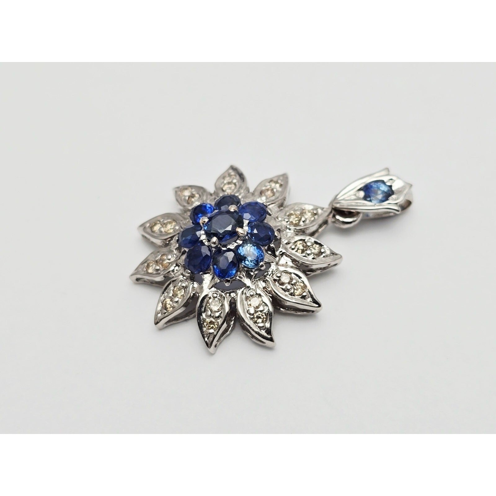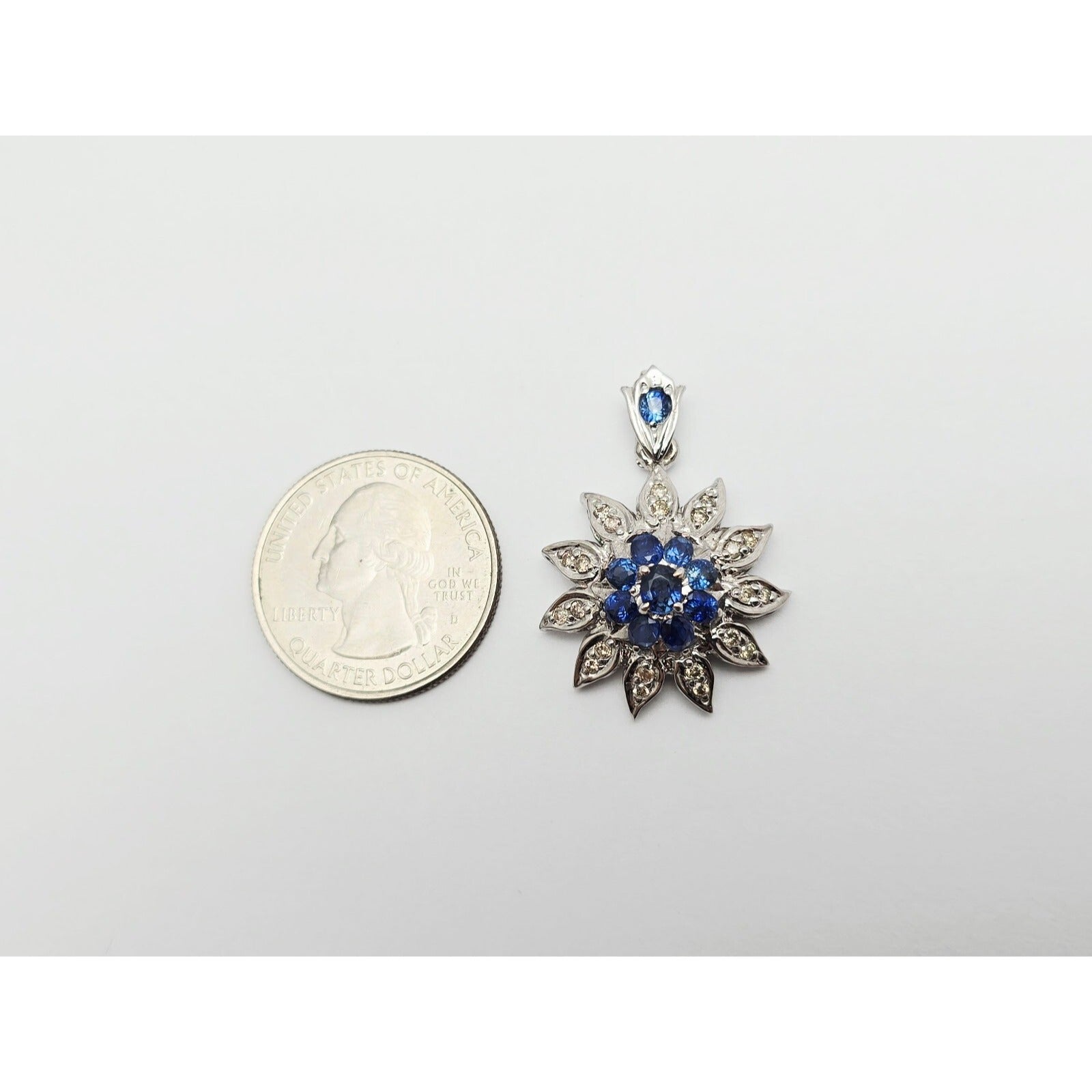 14K White Gold Sapphire & Diamond Flower Charm Pendant