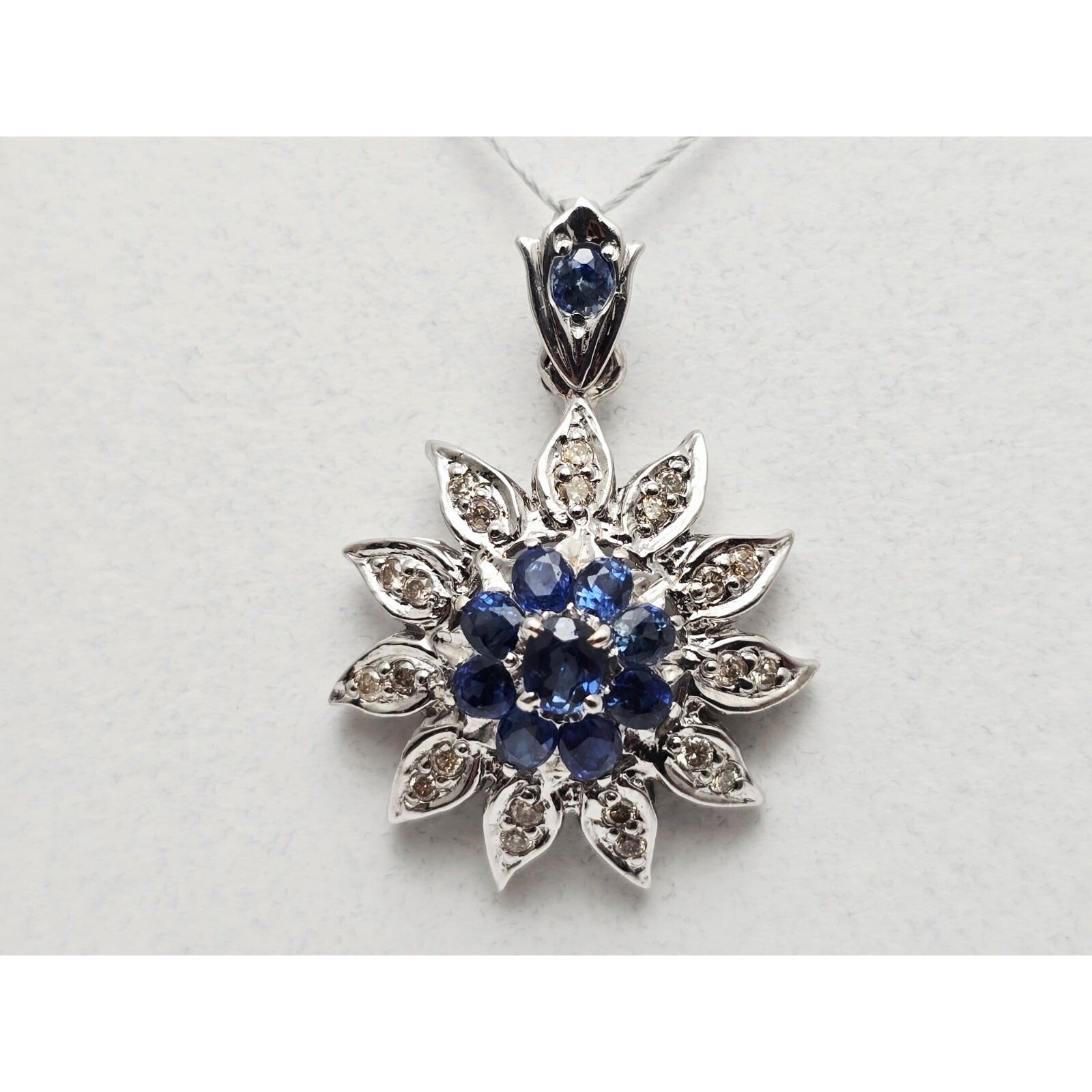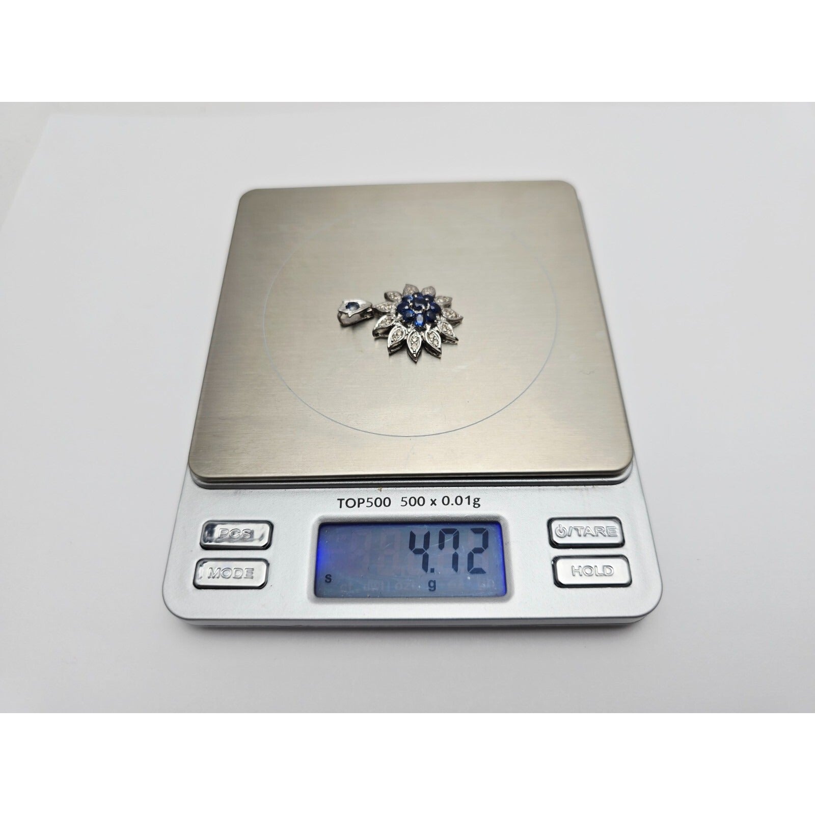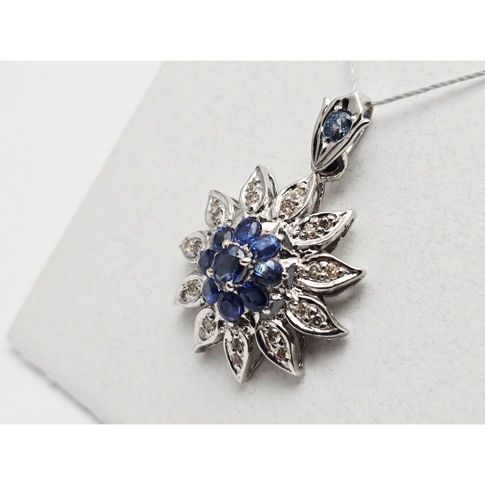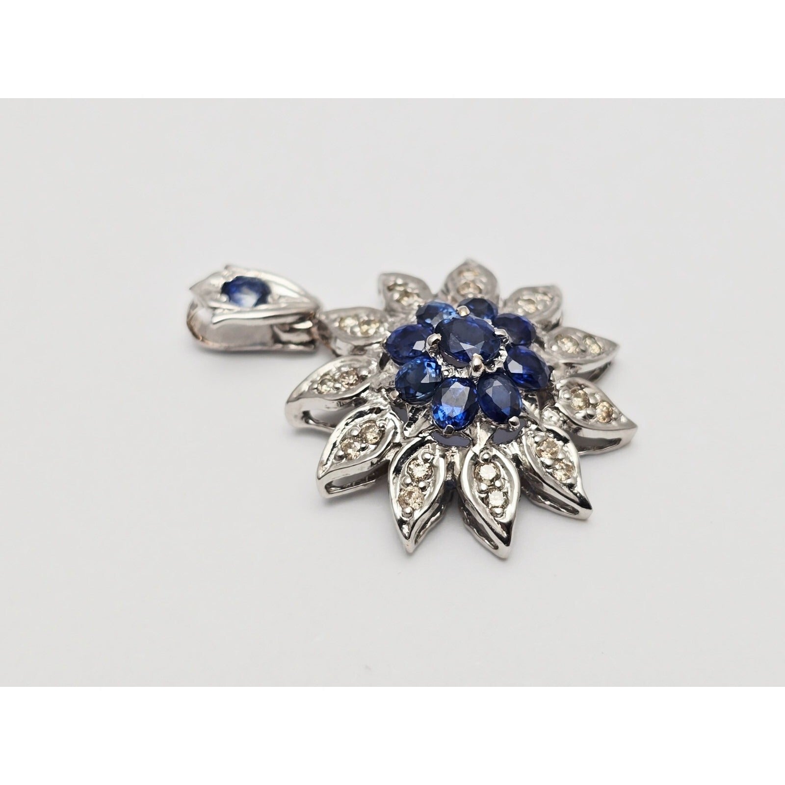 14K White Gold Sapphire & Diamond Flower Charm Pendant