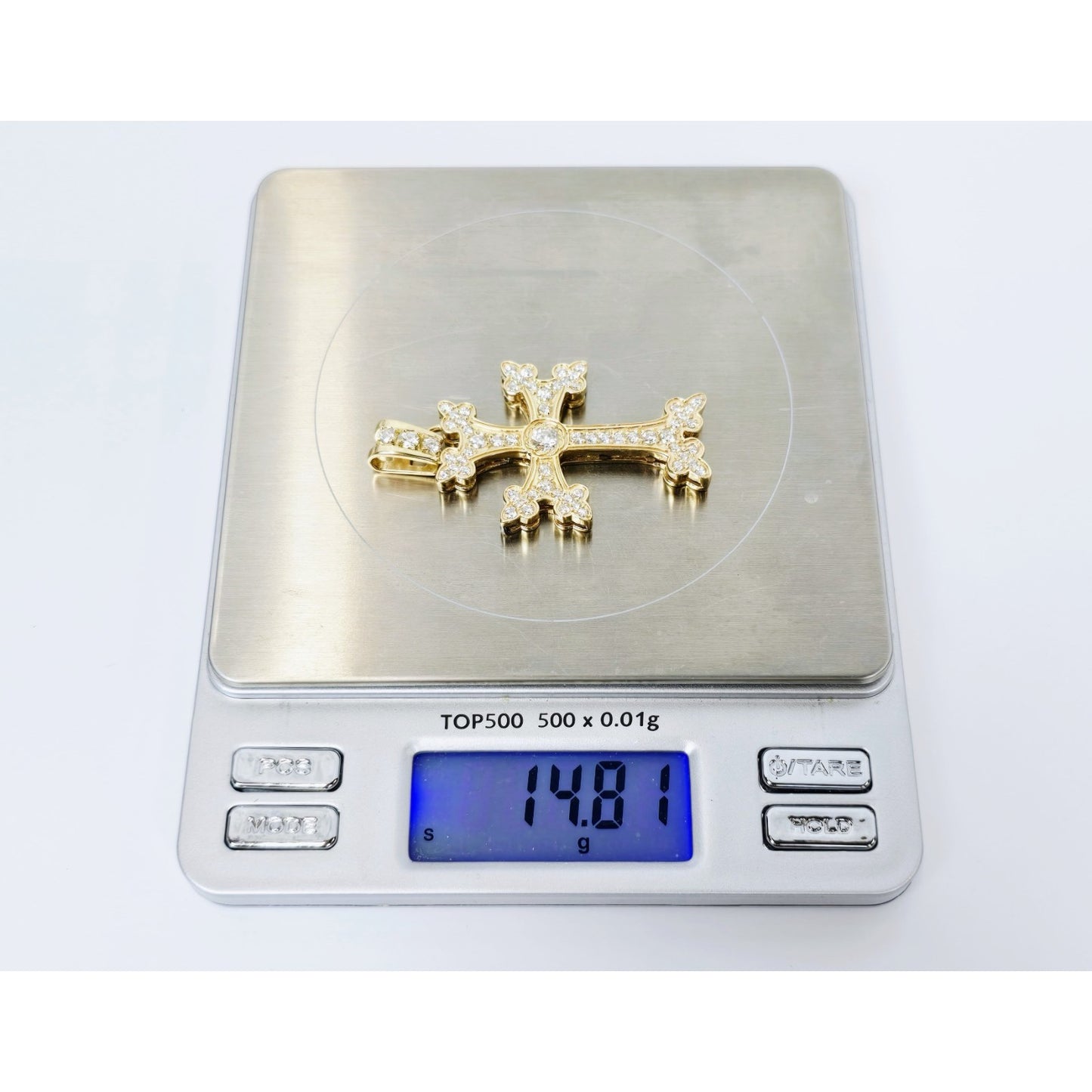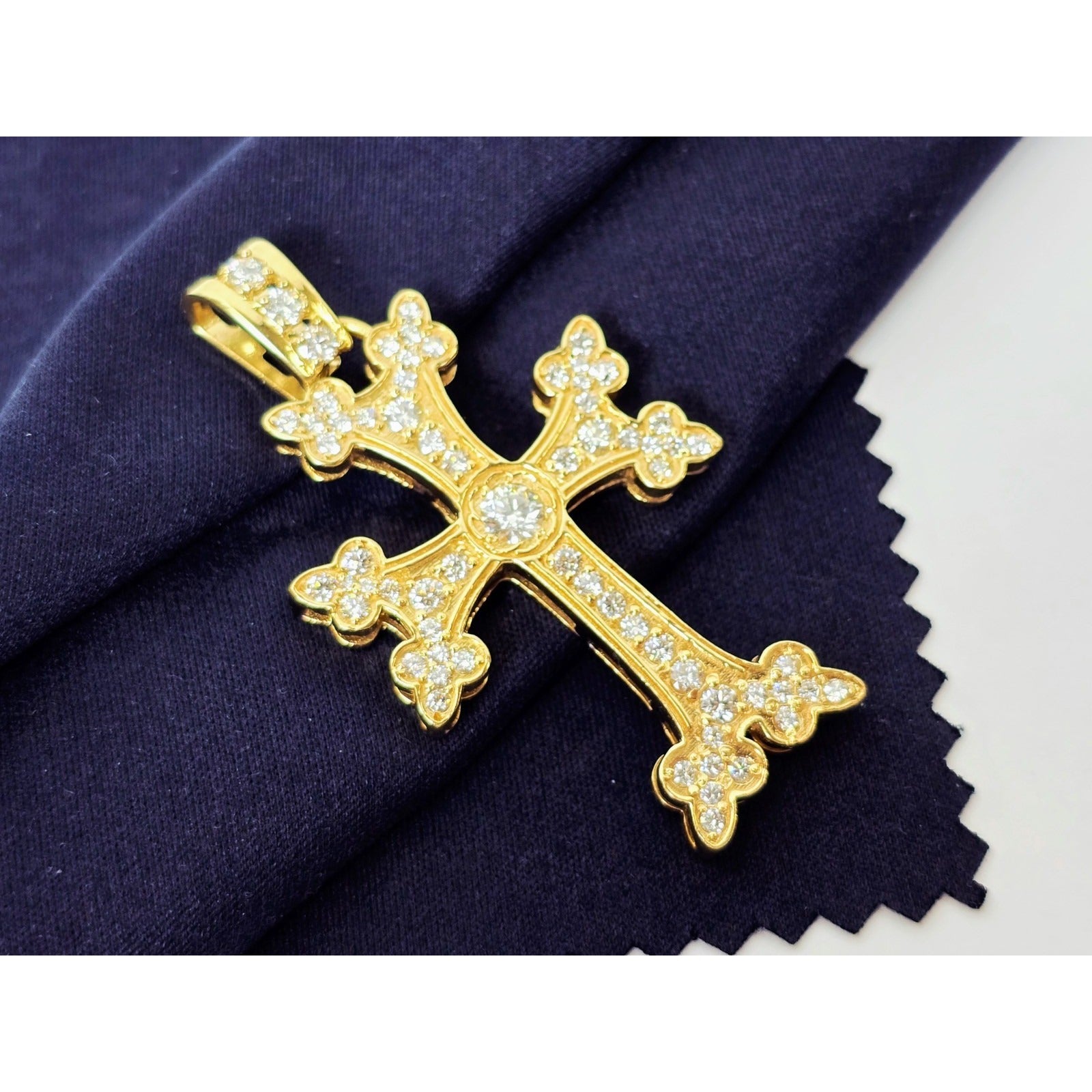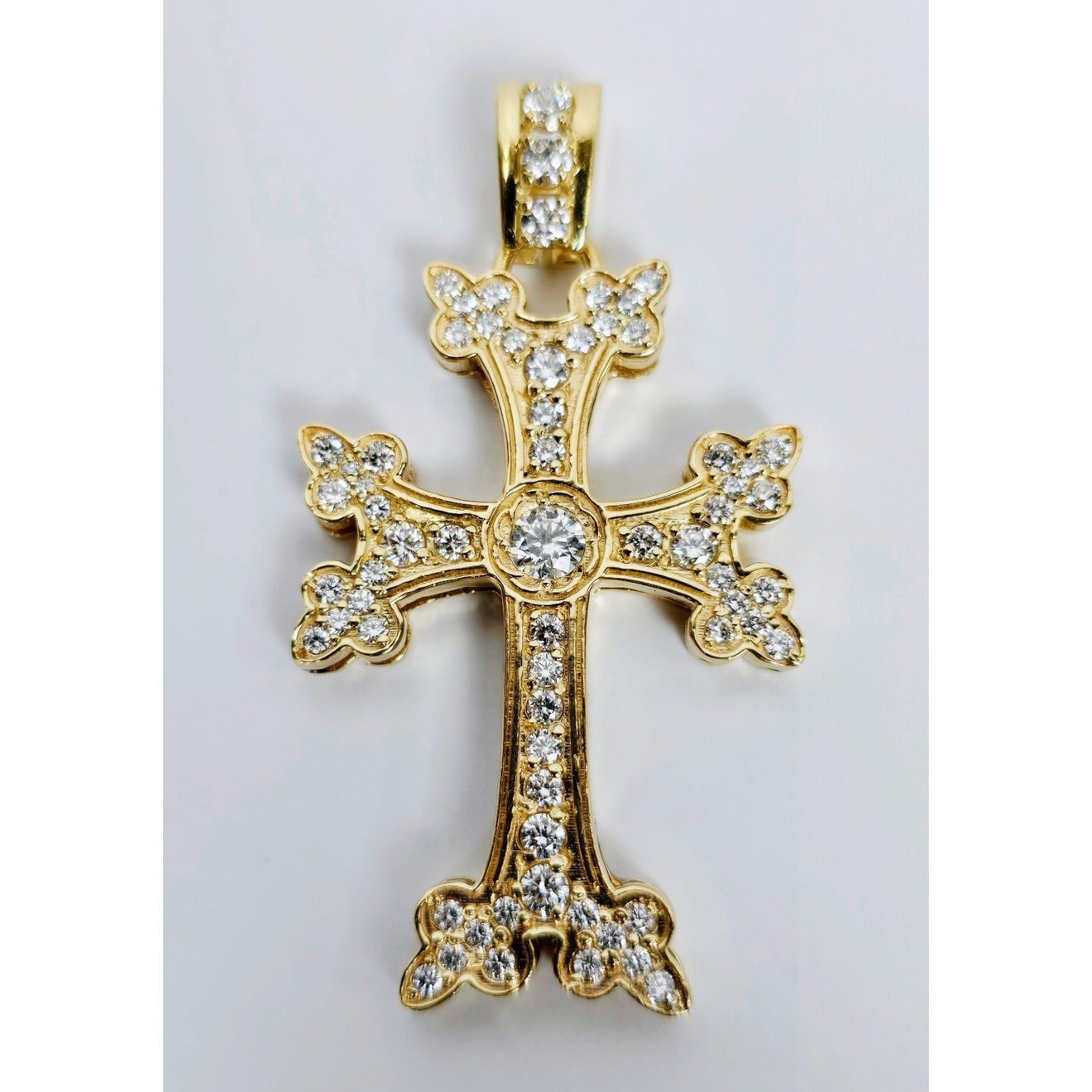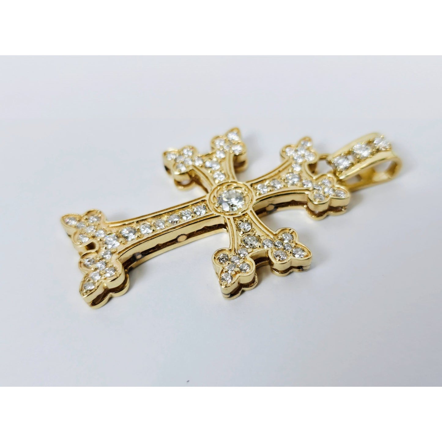 14K Yellow Gold Armenian Diamond Cross Pendant Charm