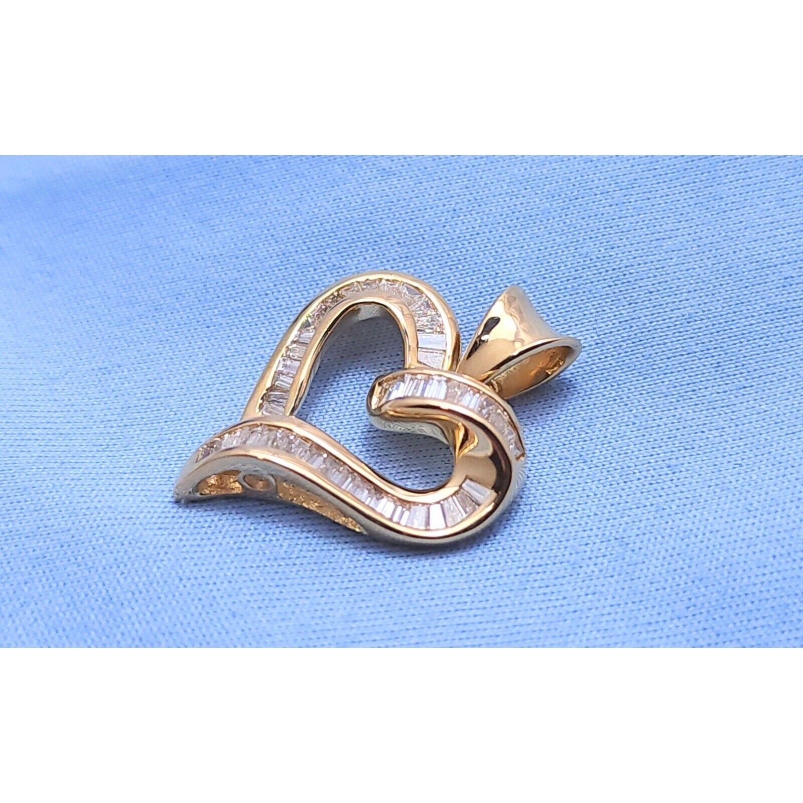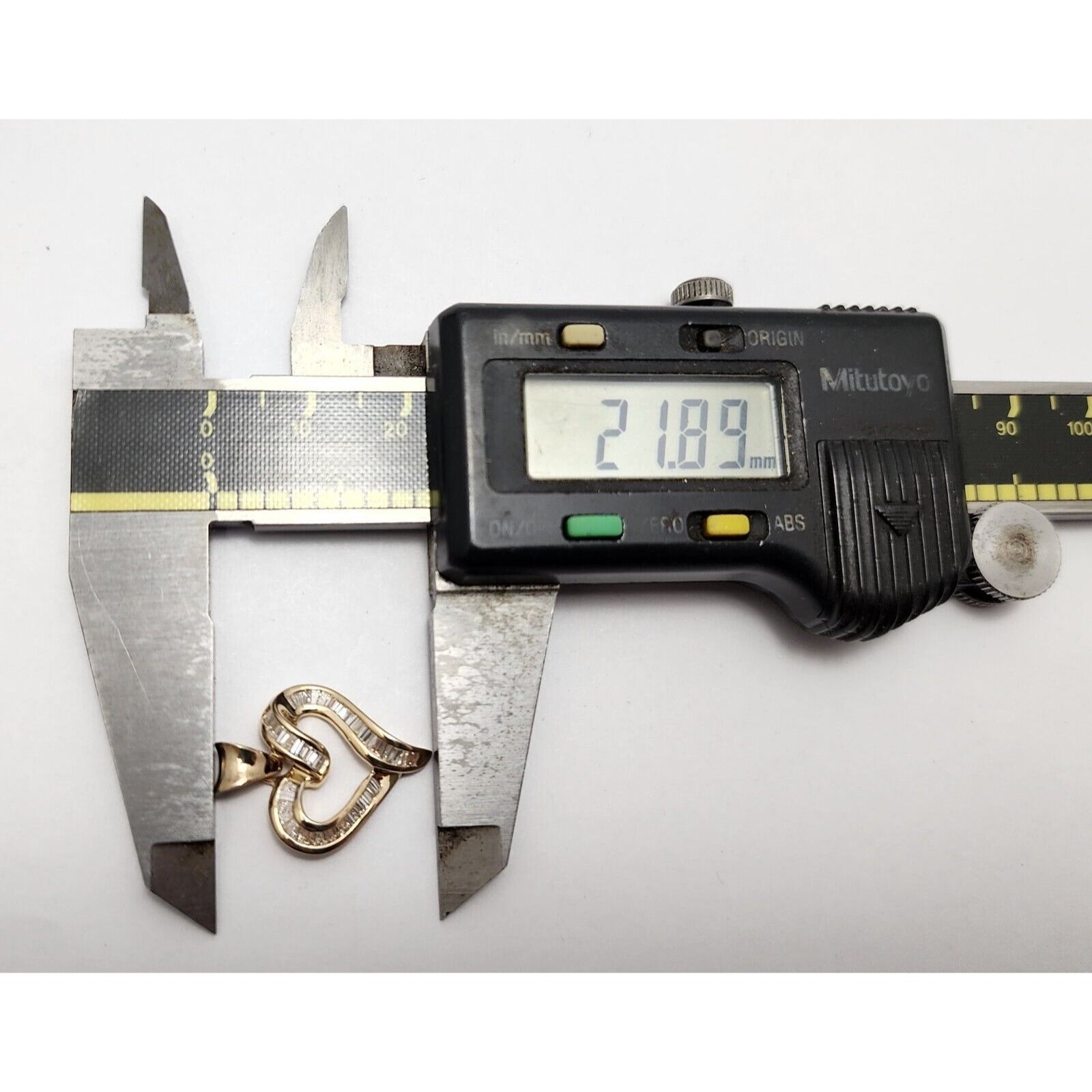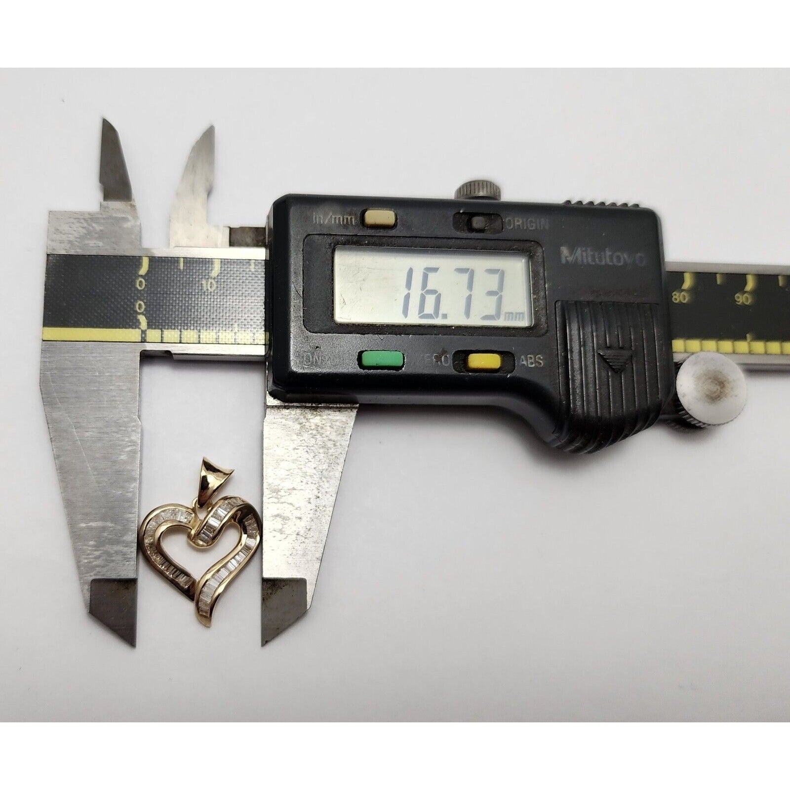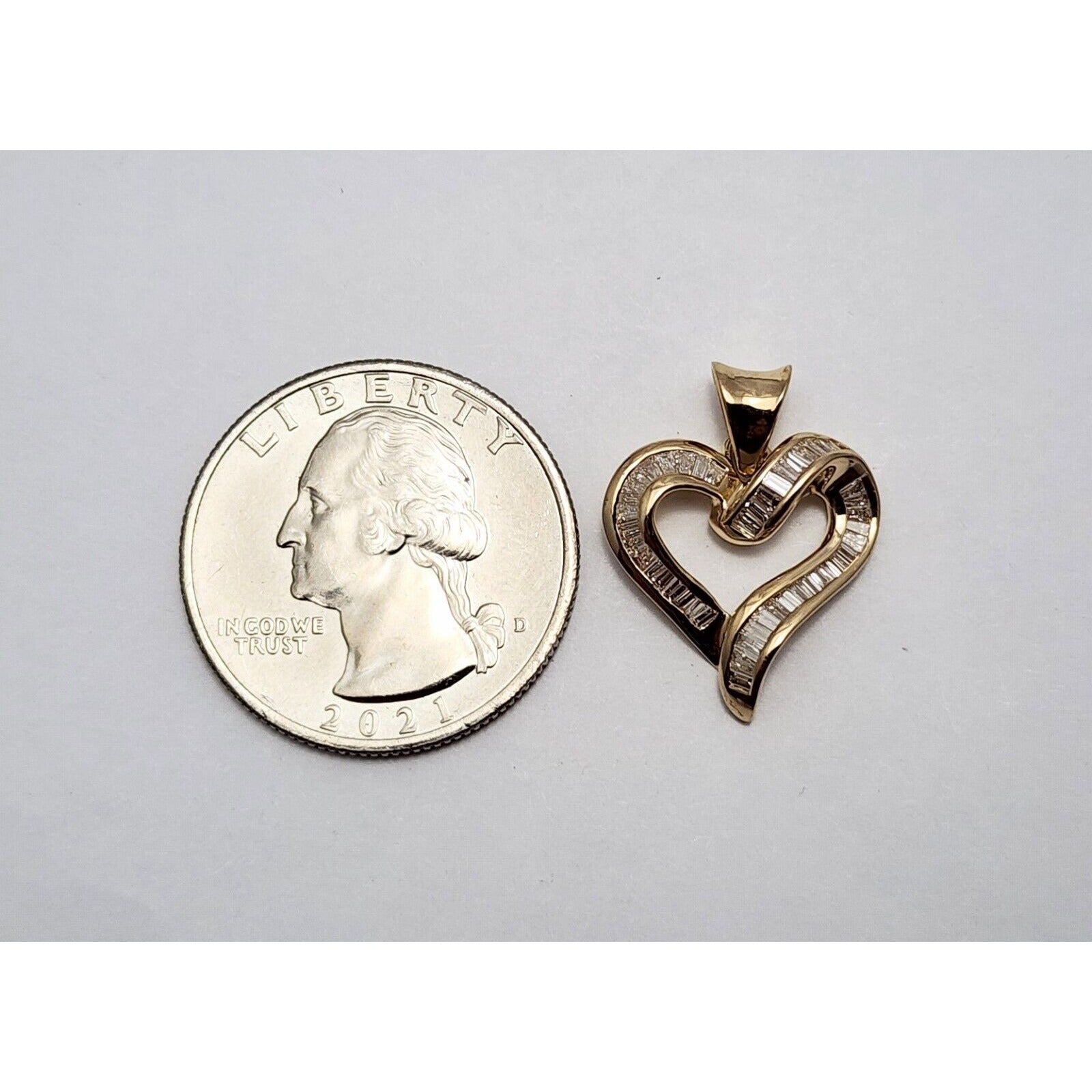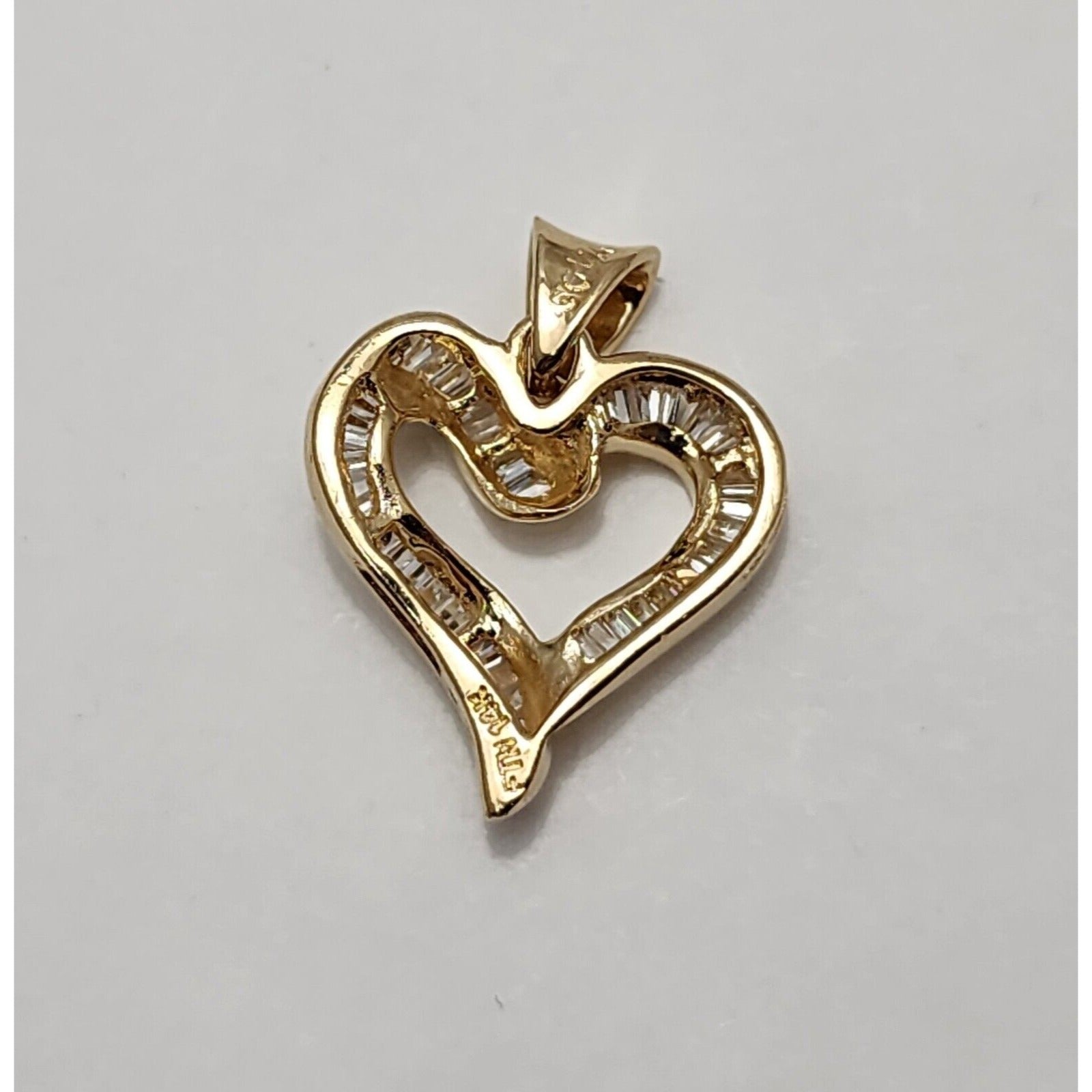 14K Yellow Gold Baguette Diamond Open Heart Charm Pendant