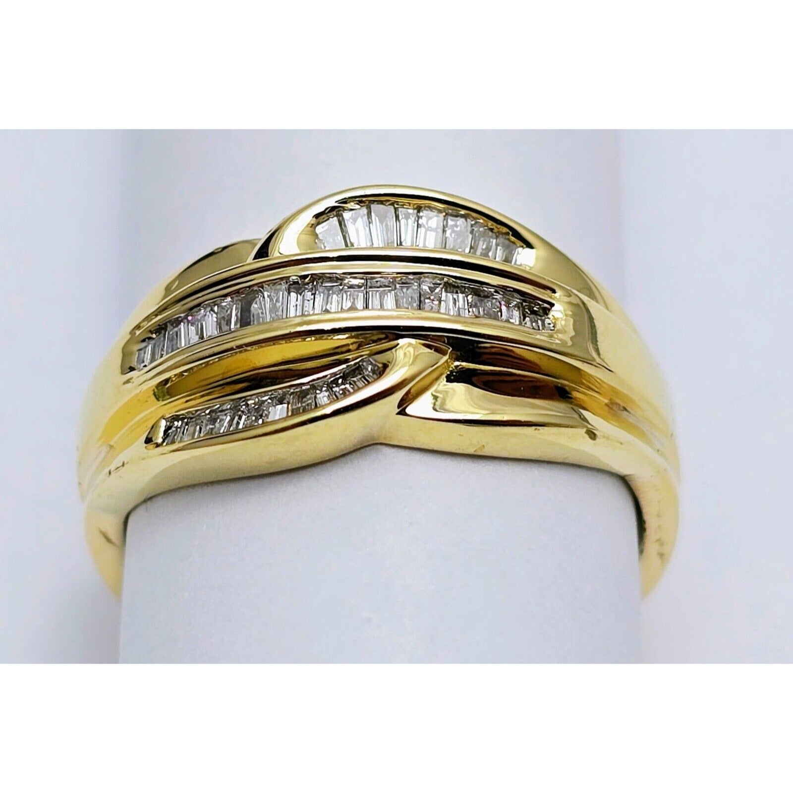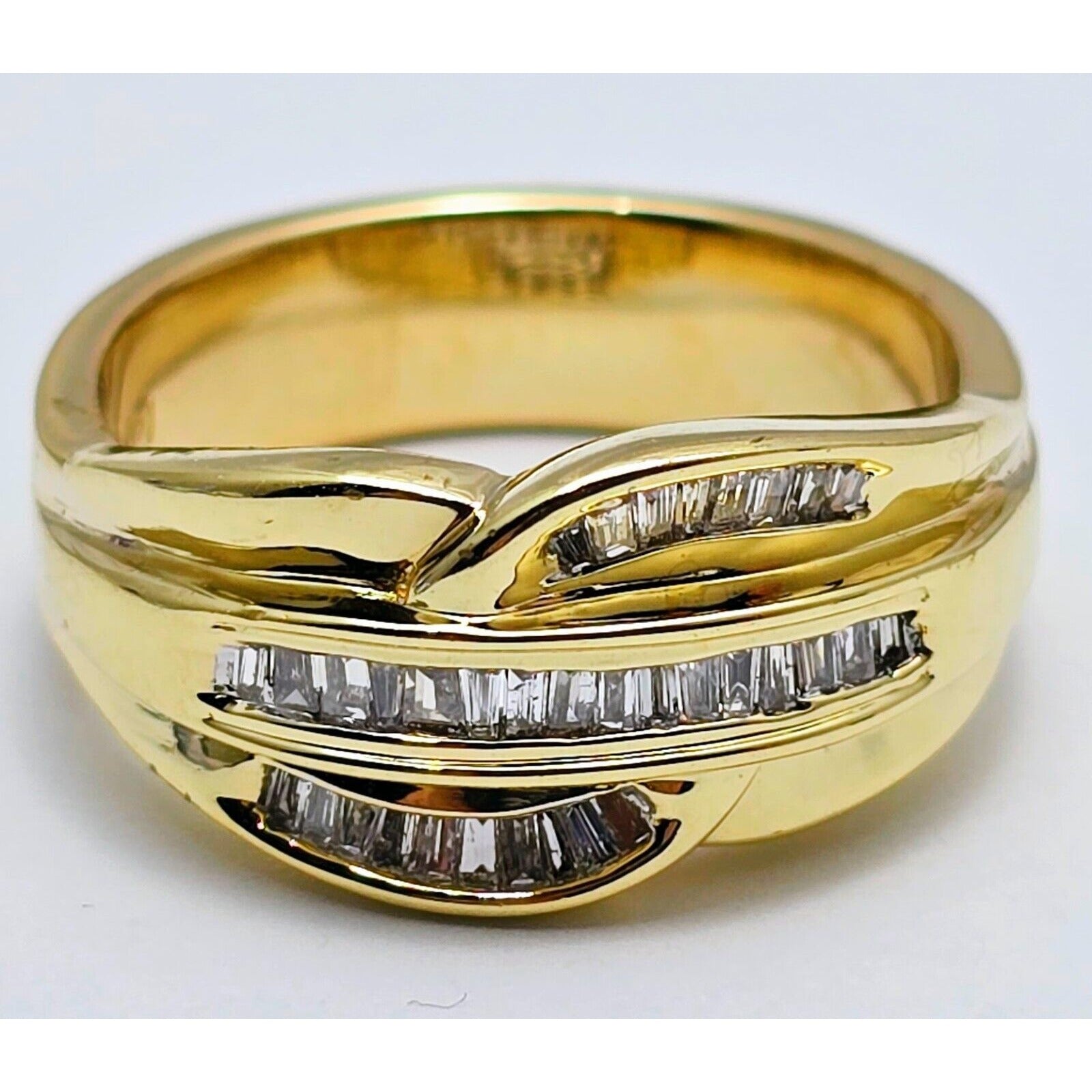 14K Yellow Gold Baguette Diamond Swirl Ring