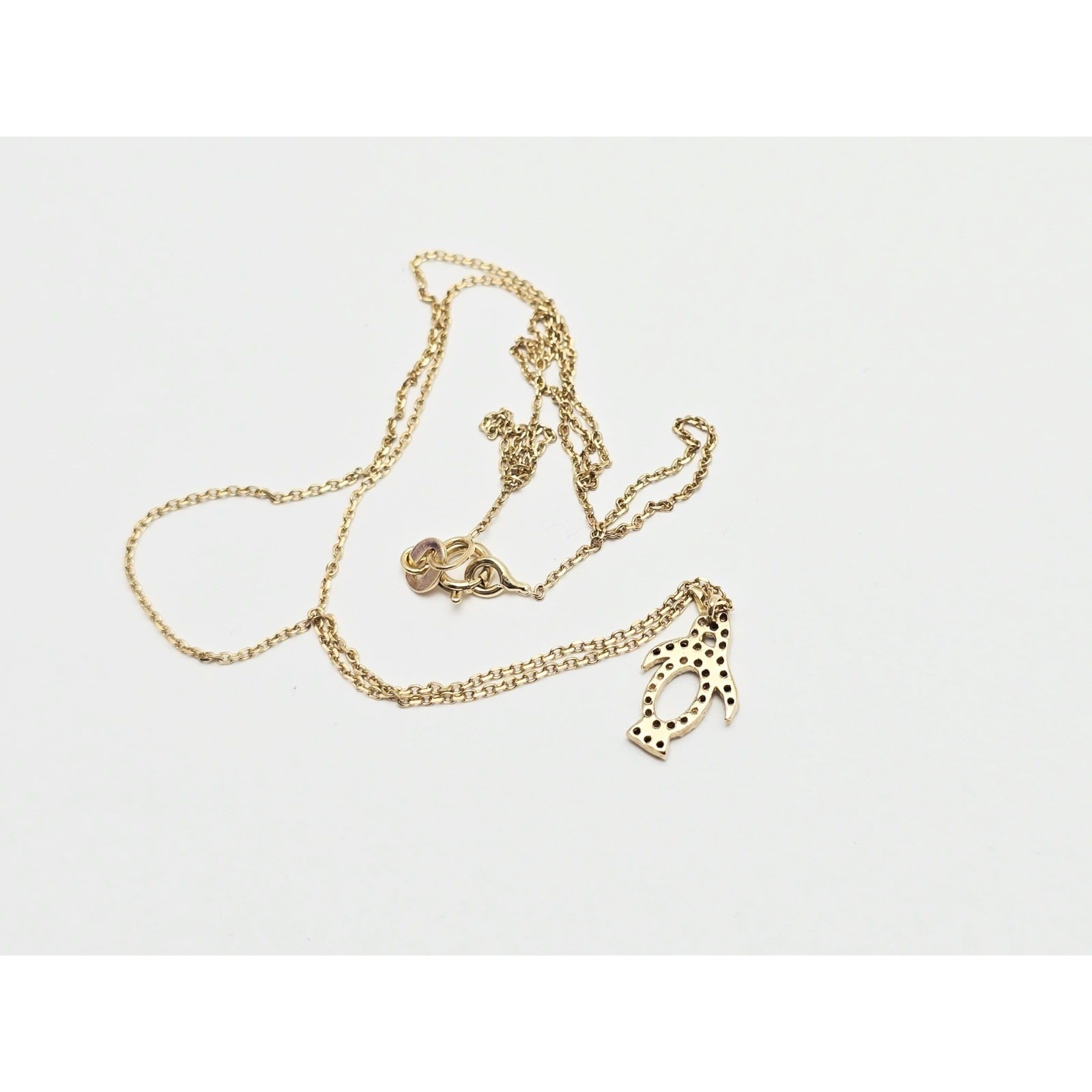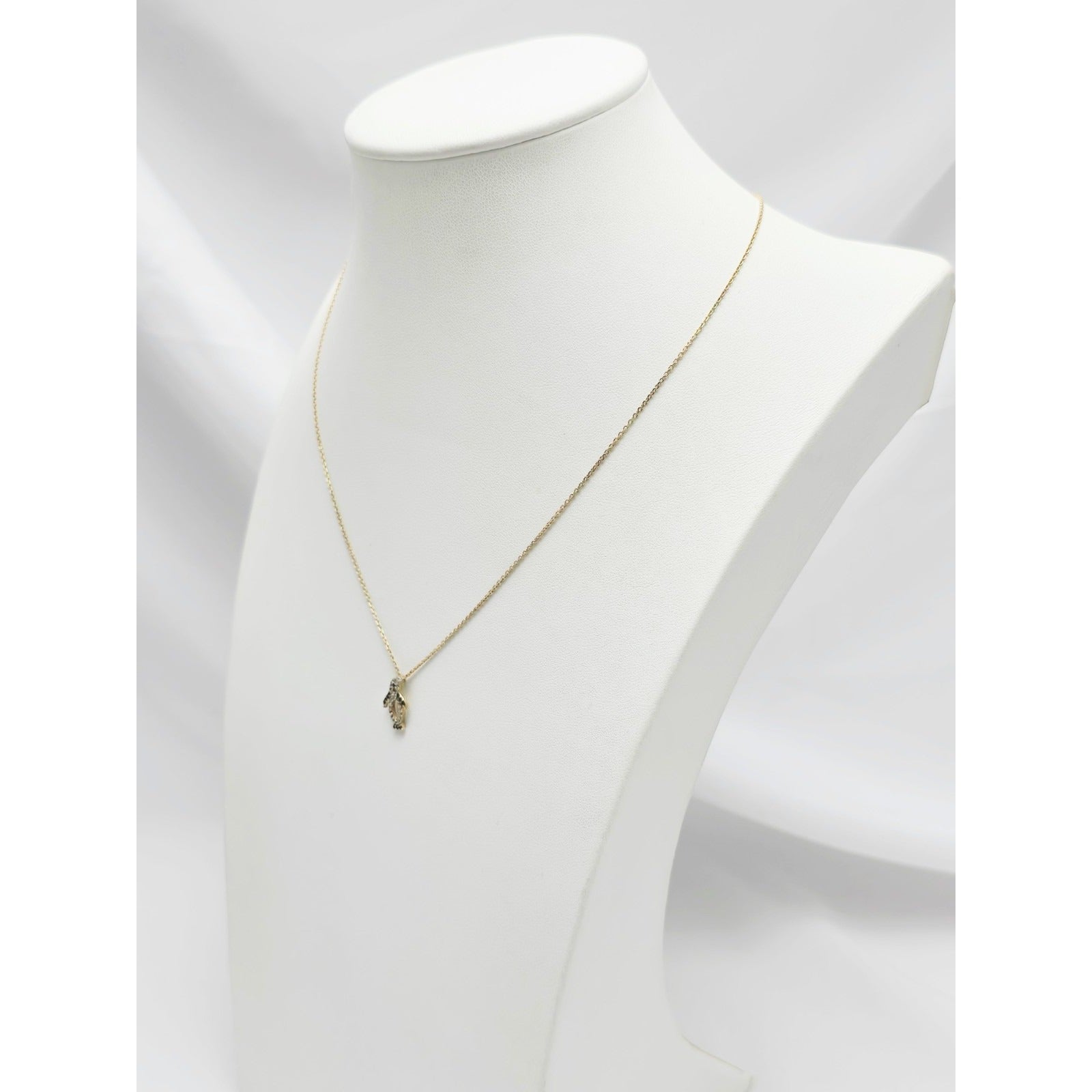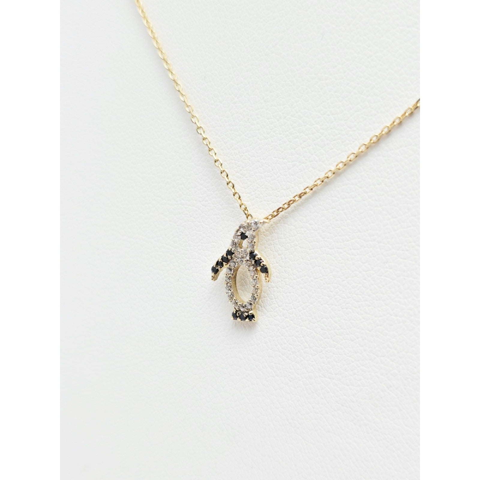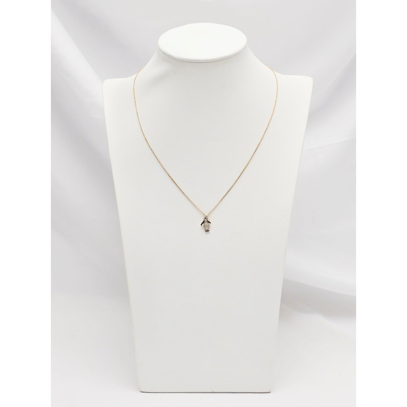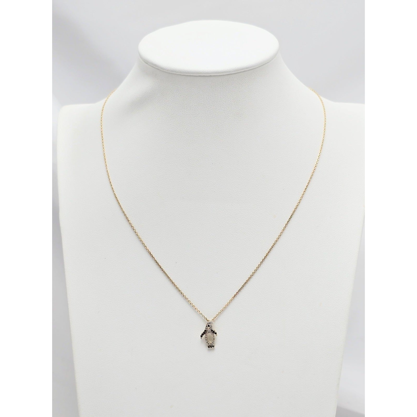 14K Yellow Gold Cable Link Chain Necklace & Penguin CZ & Onyx Charm Pendant