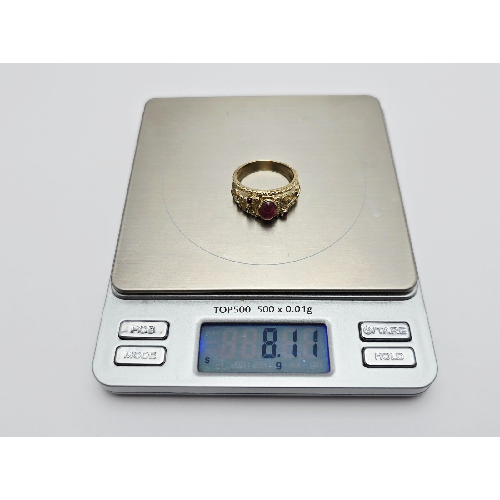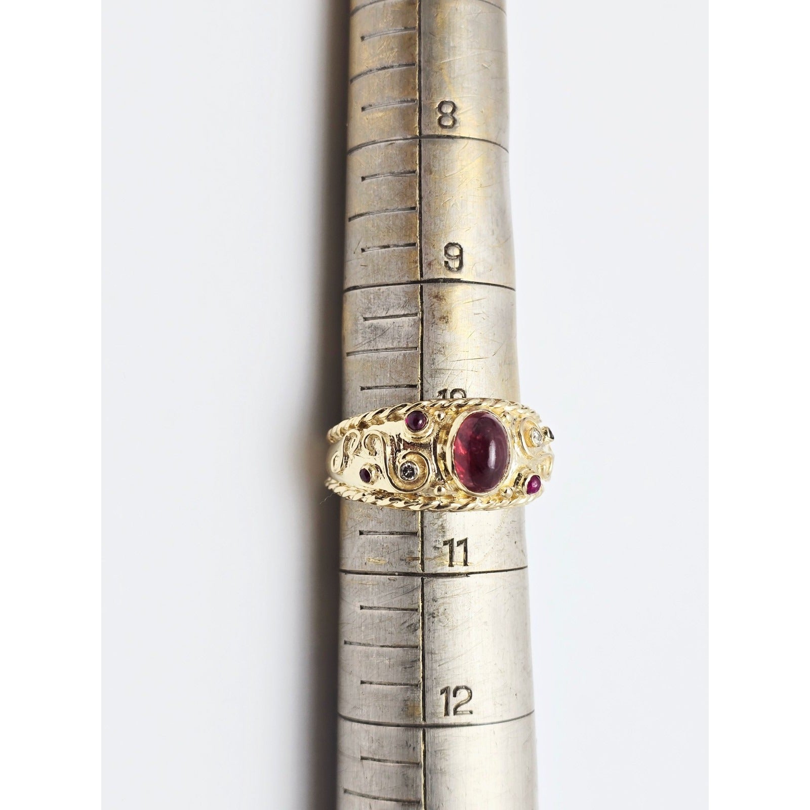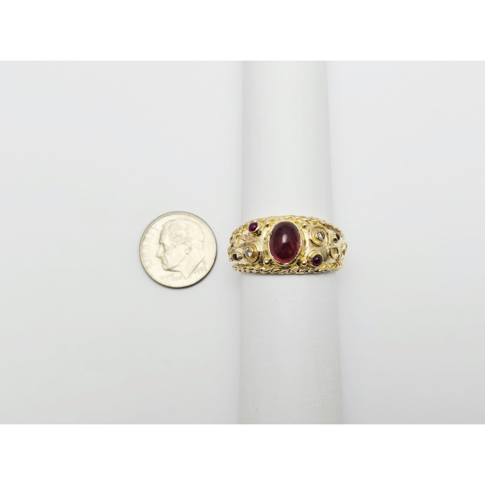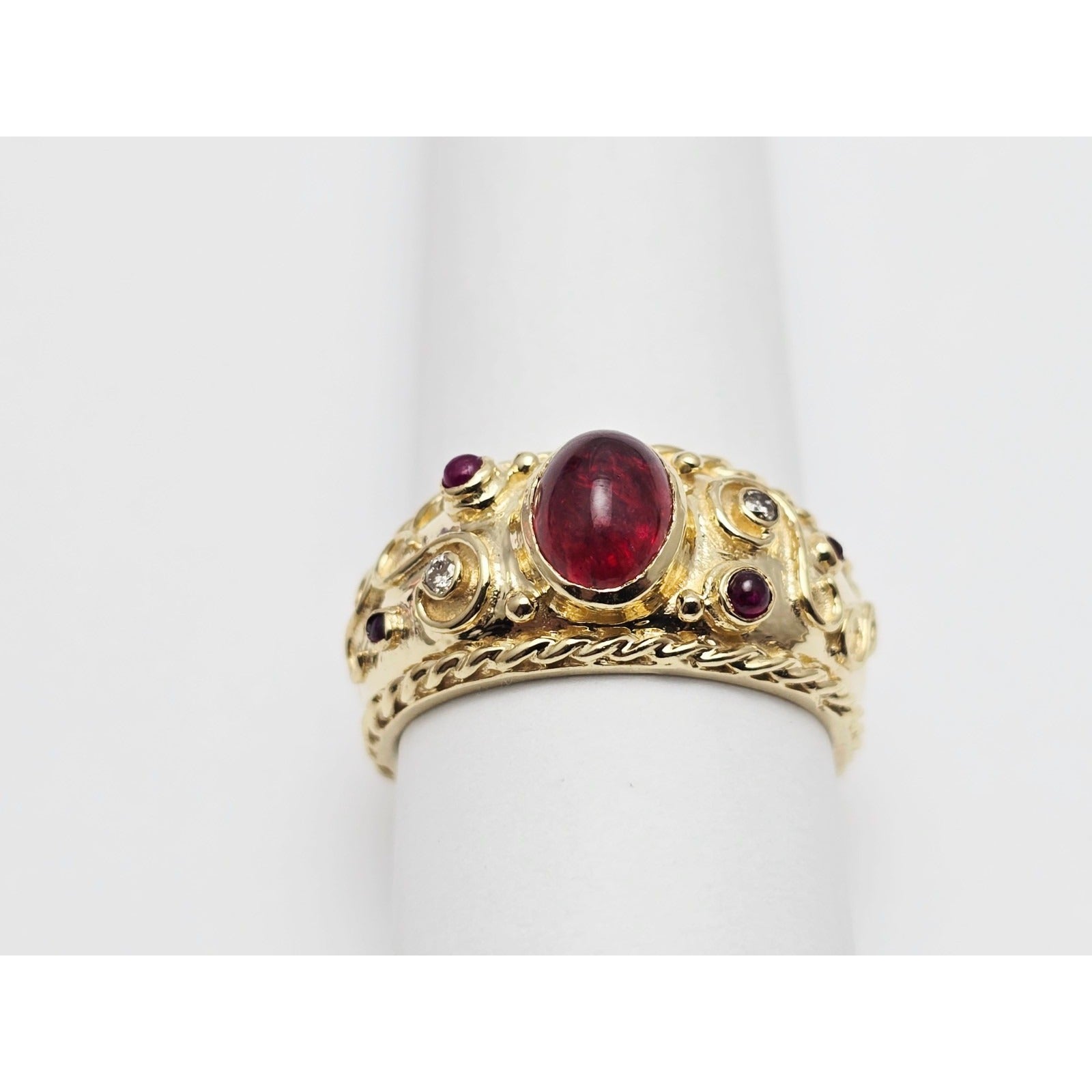 14K Yellow Gold Cabochon Ruby & Diamond Wide Band Ring