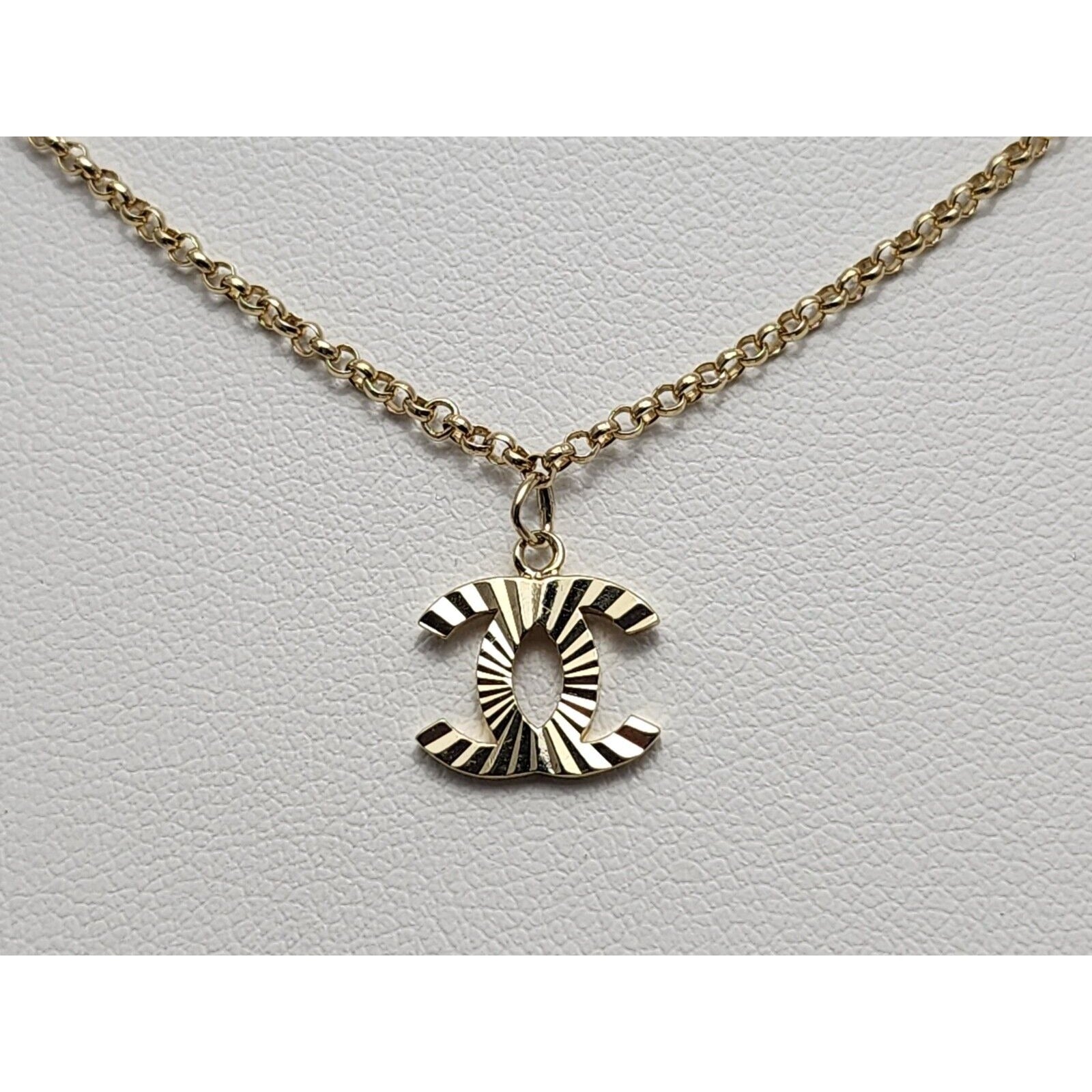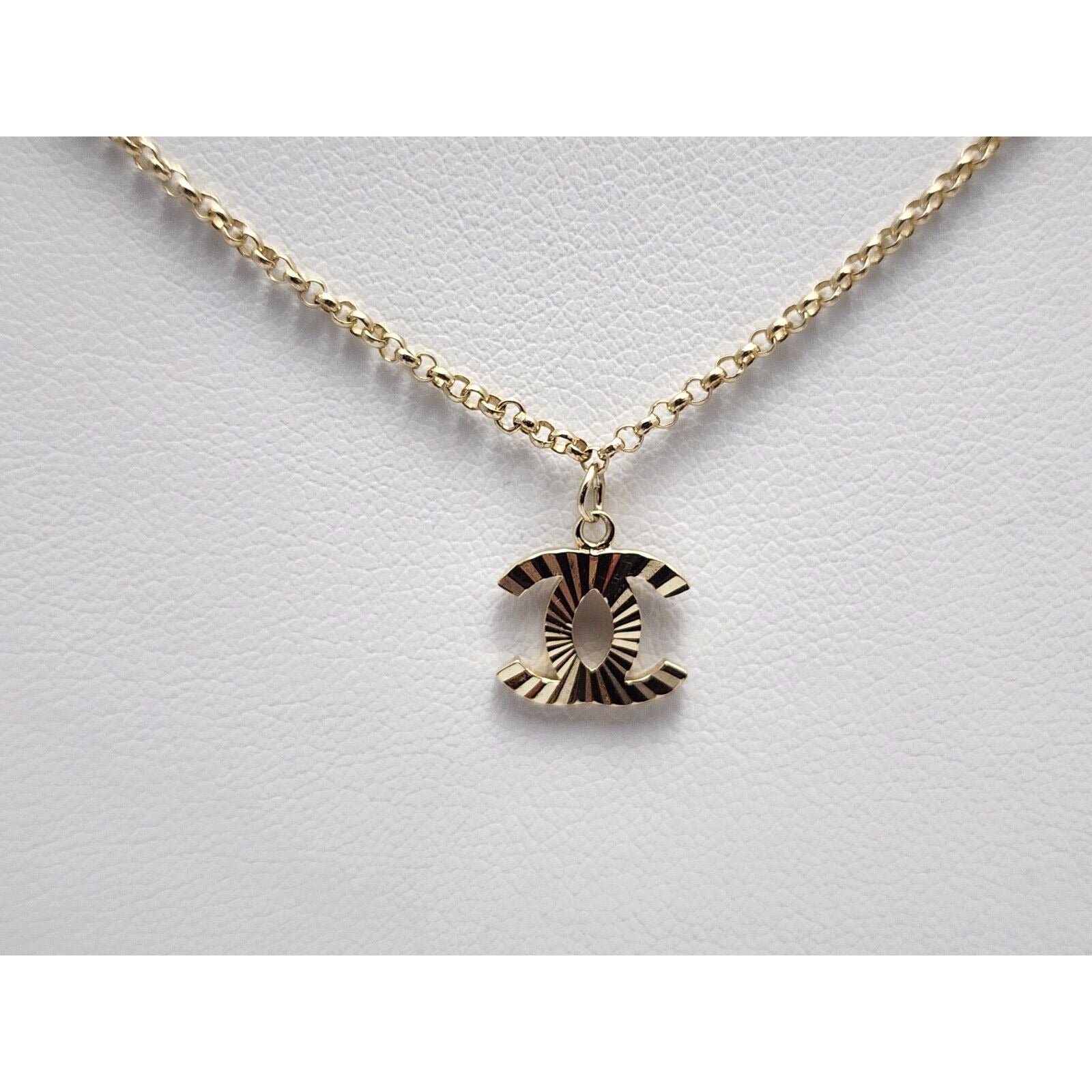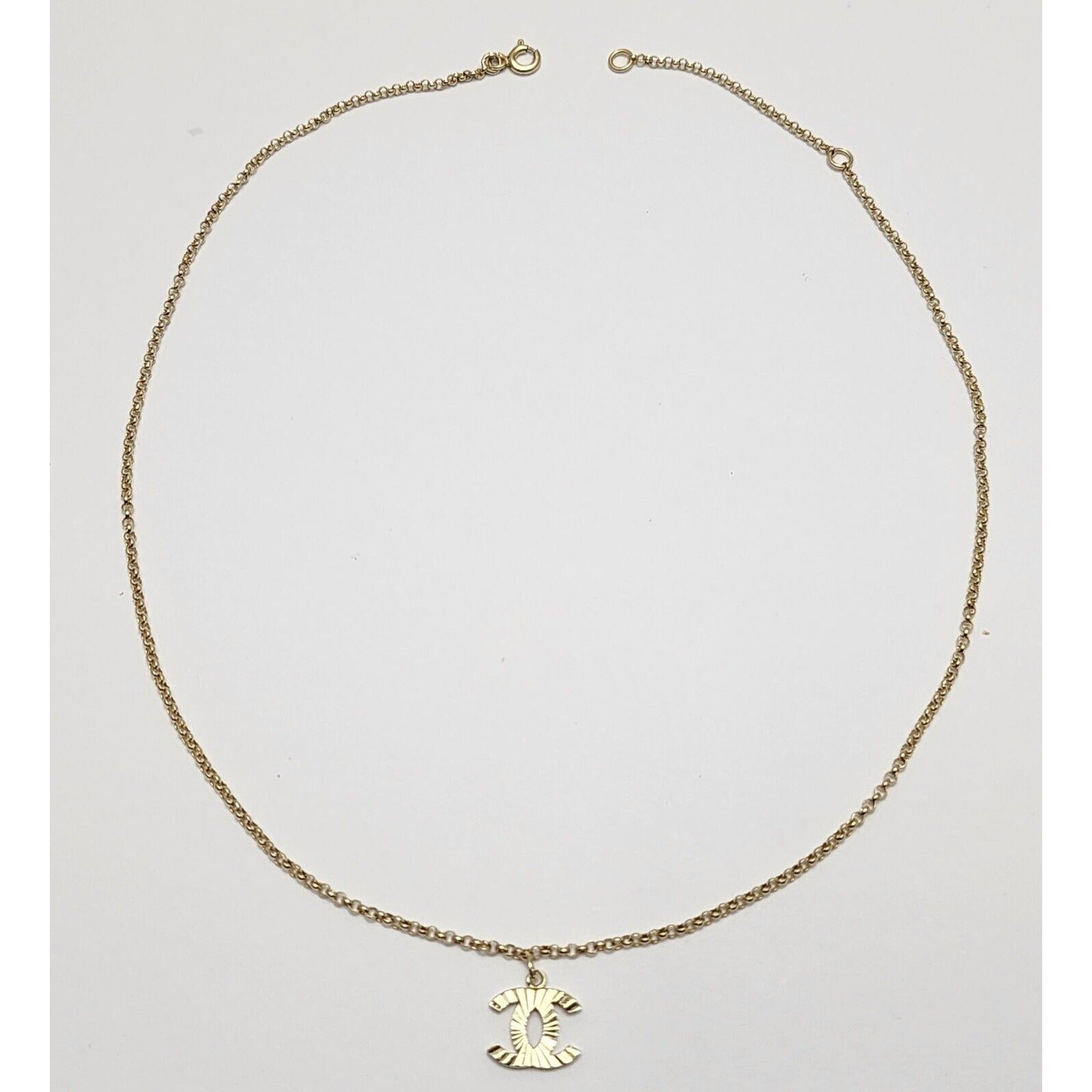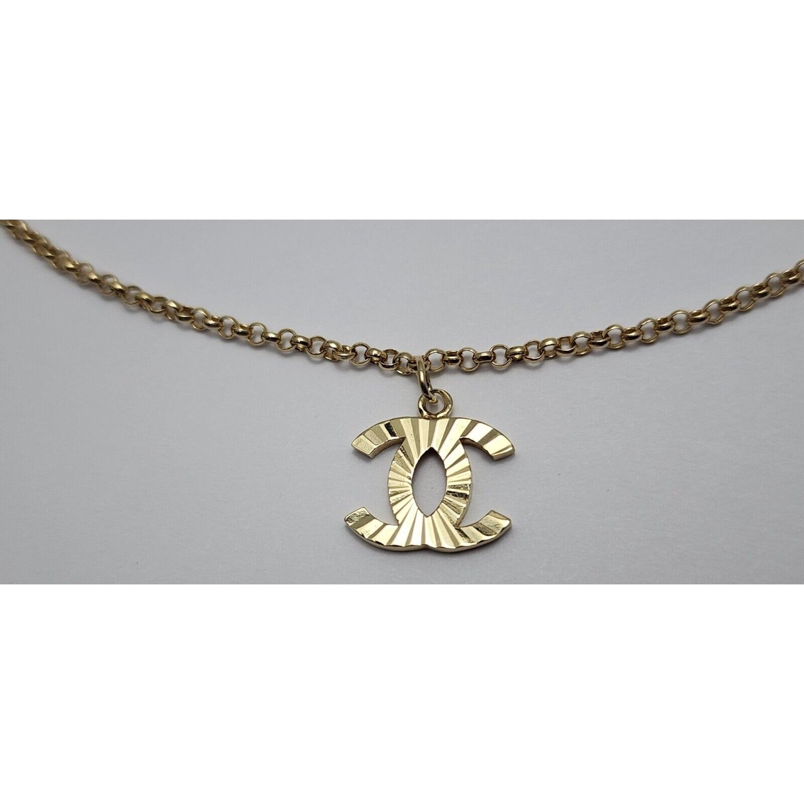 14K Yellow Gold Chanel Charm Pendant Resizable Link Chain Necklace
