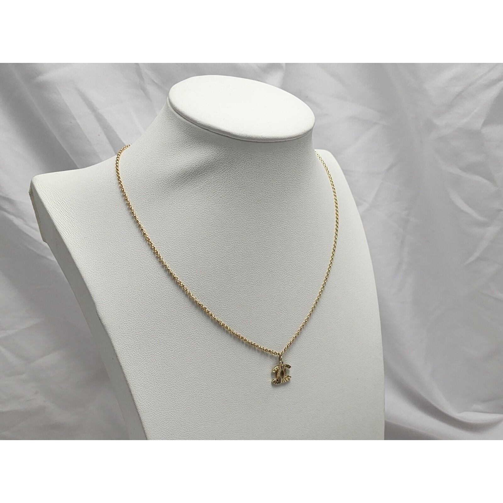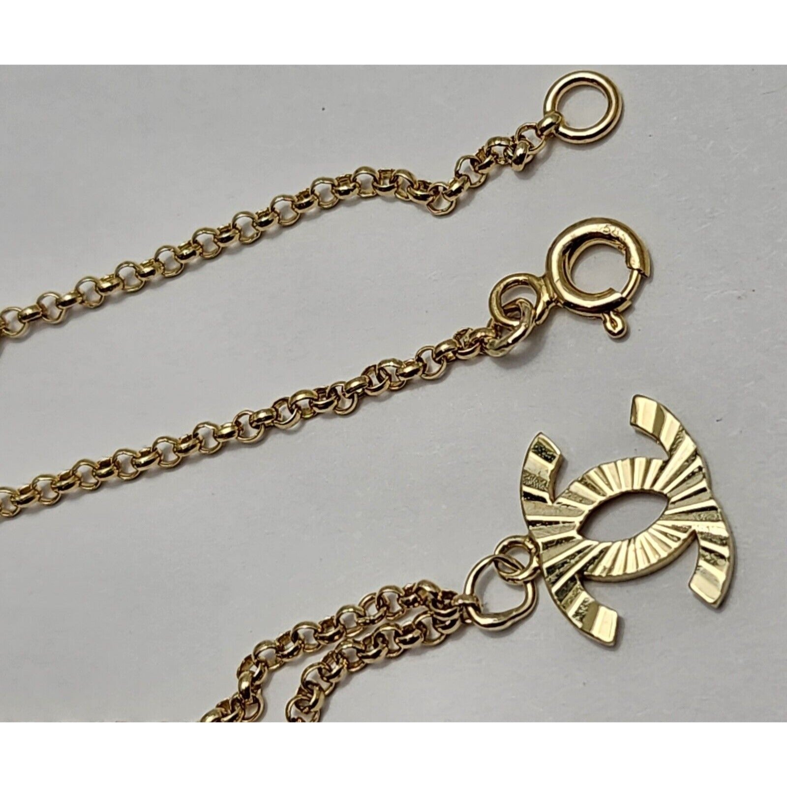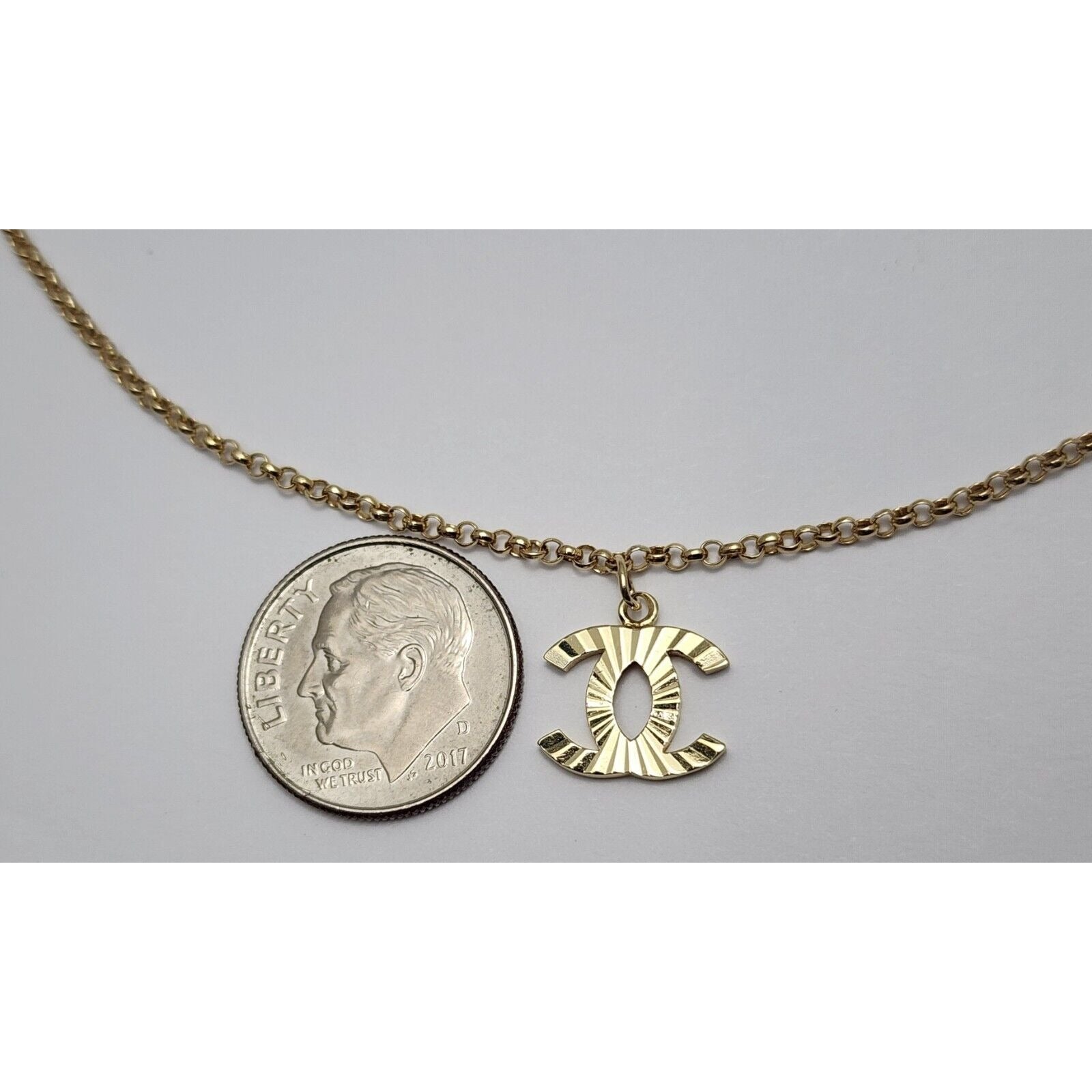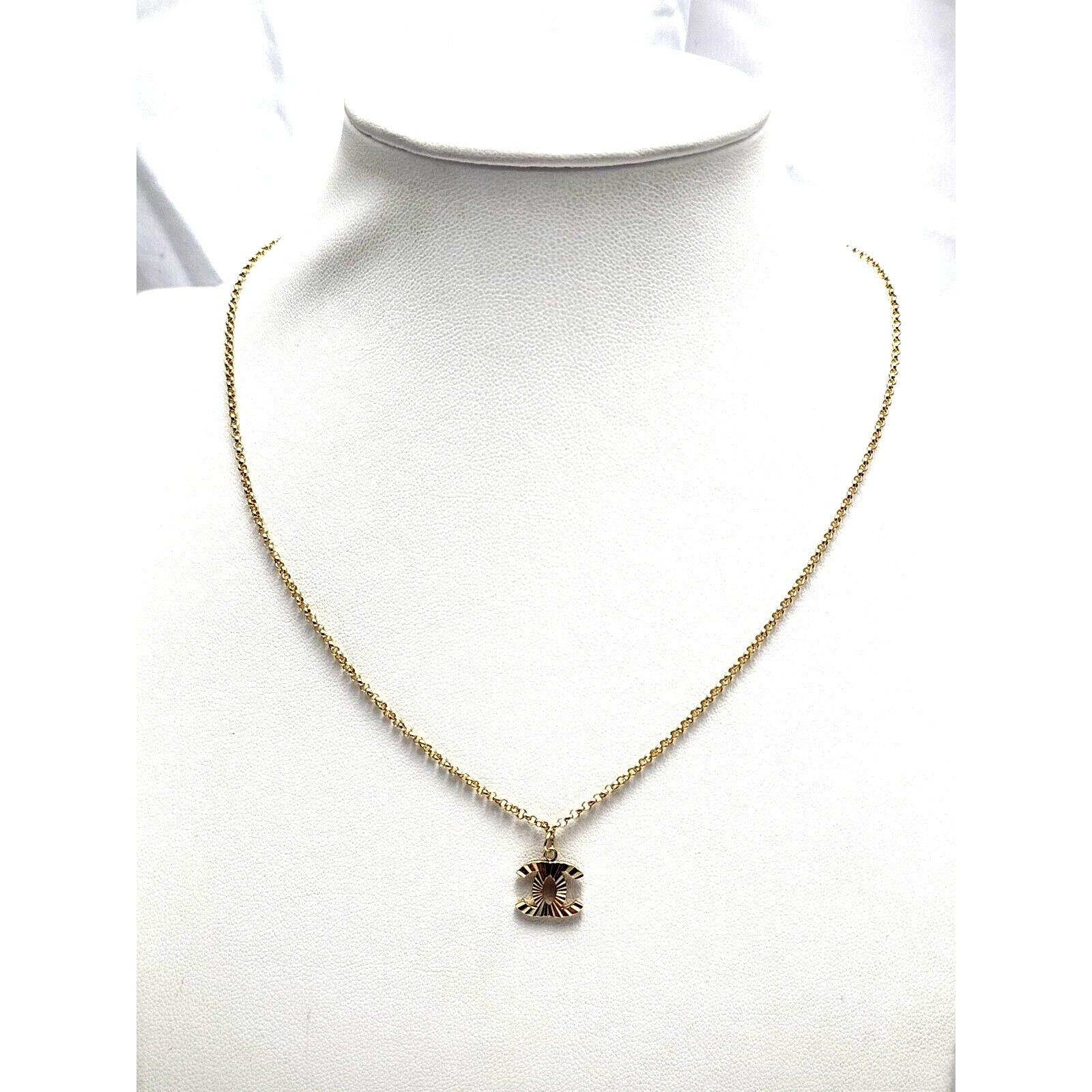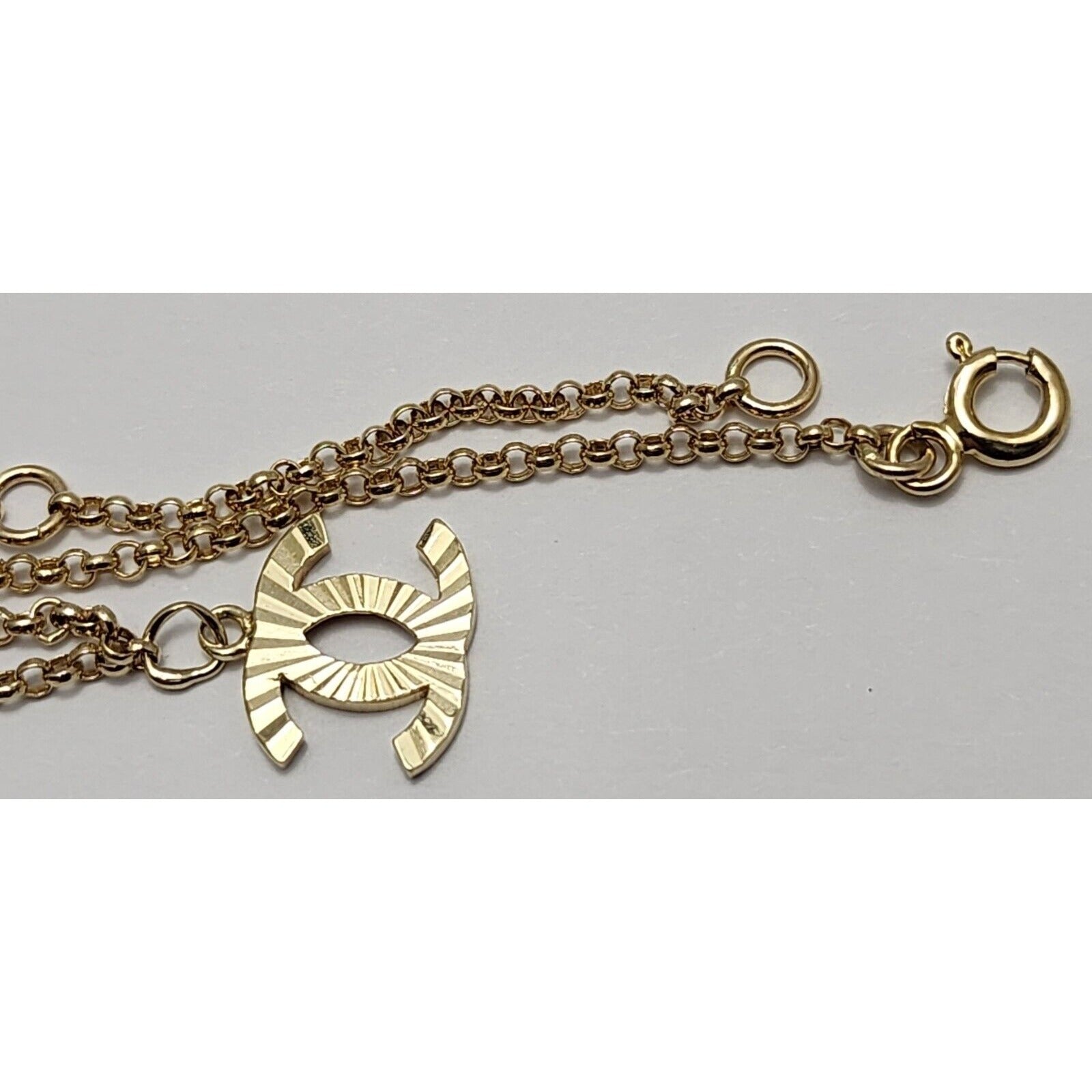 14K Yellow Gold Chanel Charm Pendant Resizable Link Chain Necklace