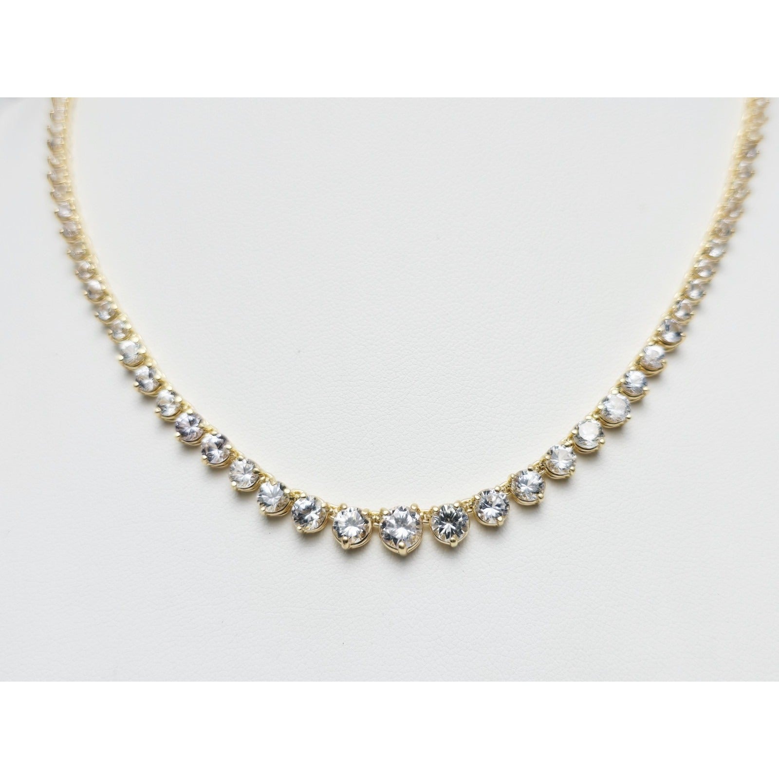 14K Yellow Gold CZ Graduated Link Chain Necklace