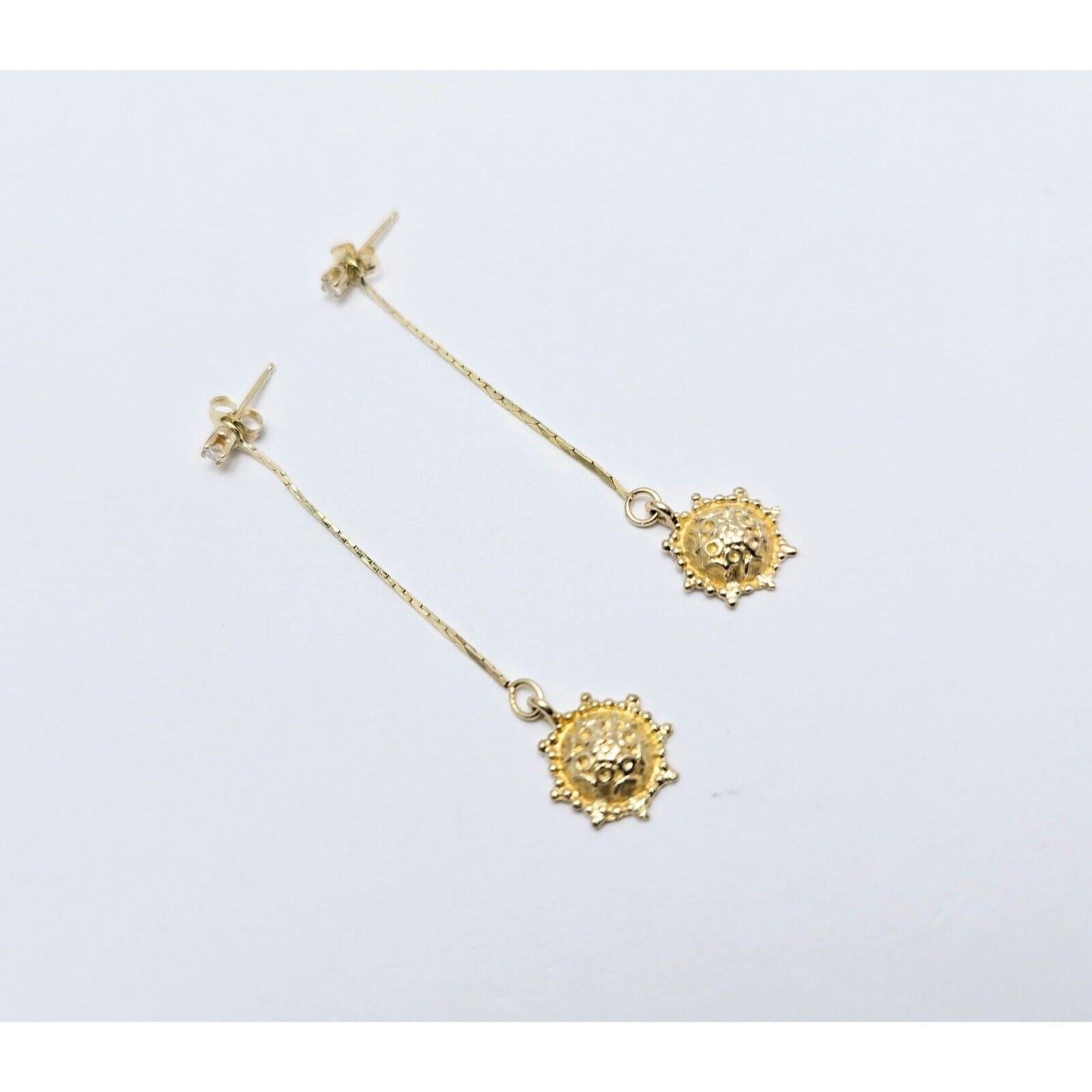 14K Yellow Gold Dangle Drop Sun Diamond Jacket Stud Earrings